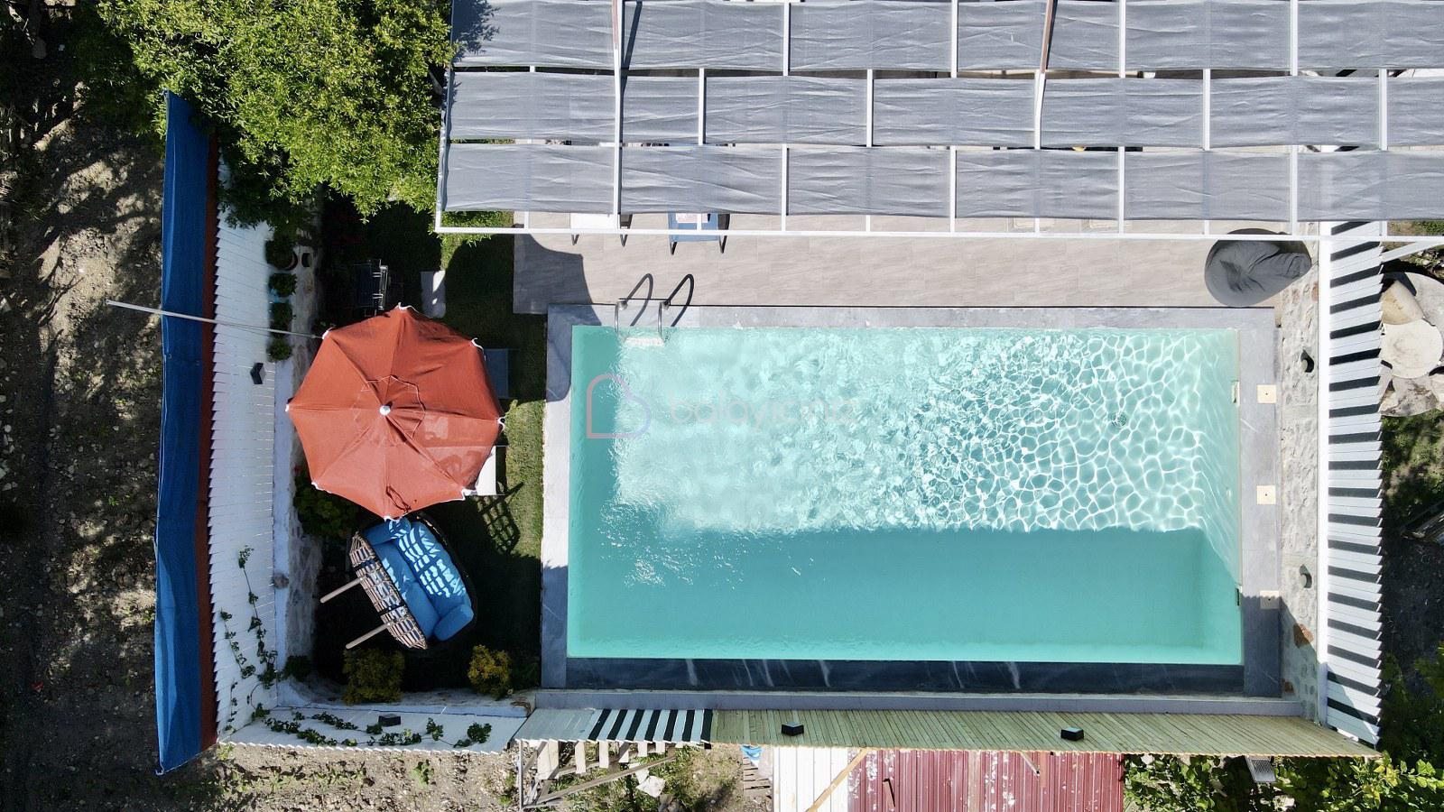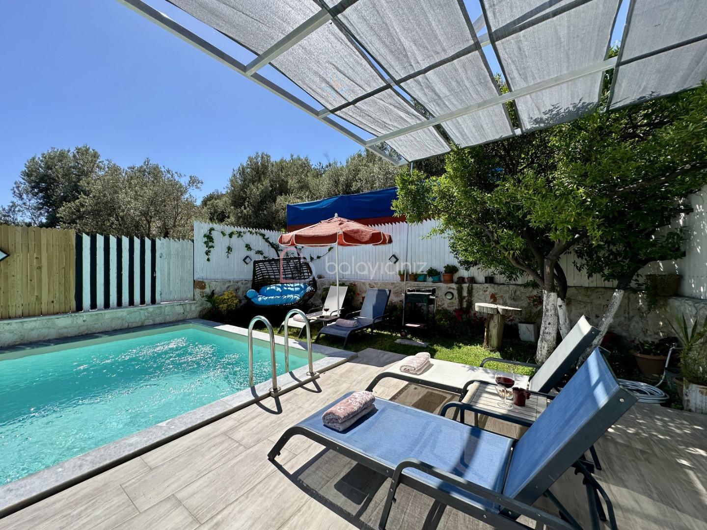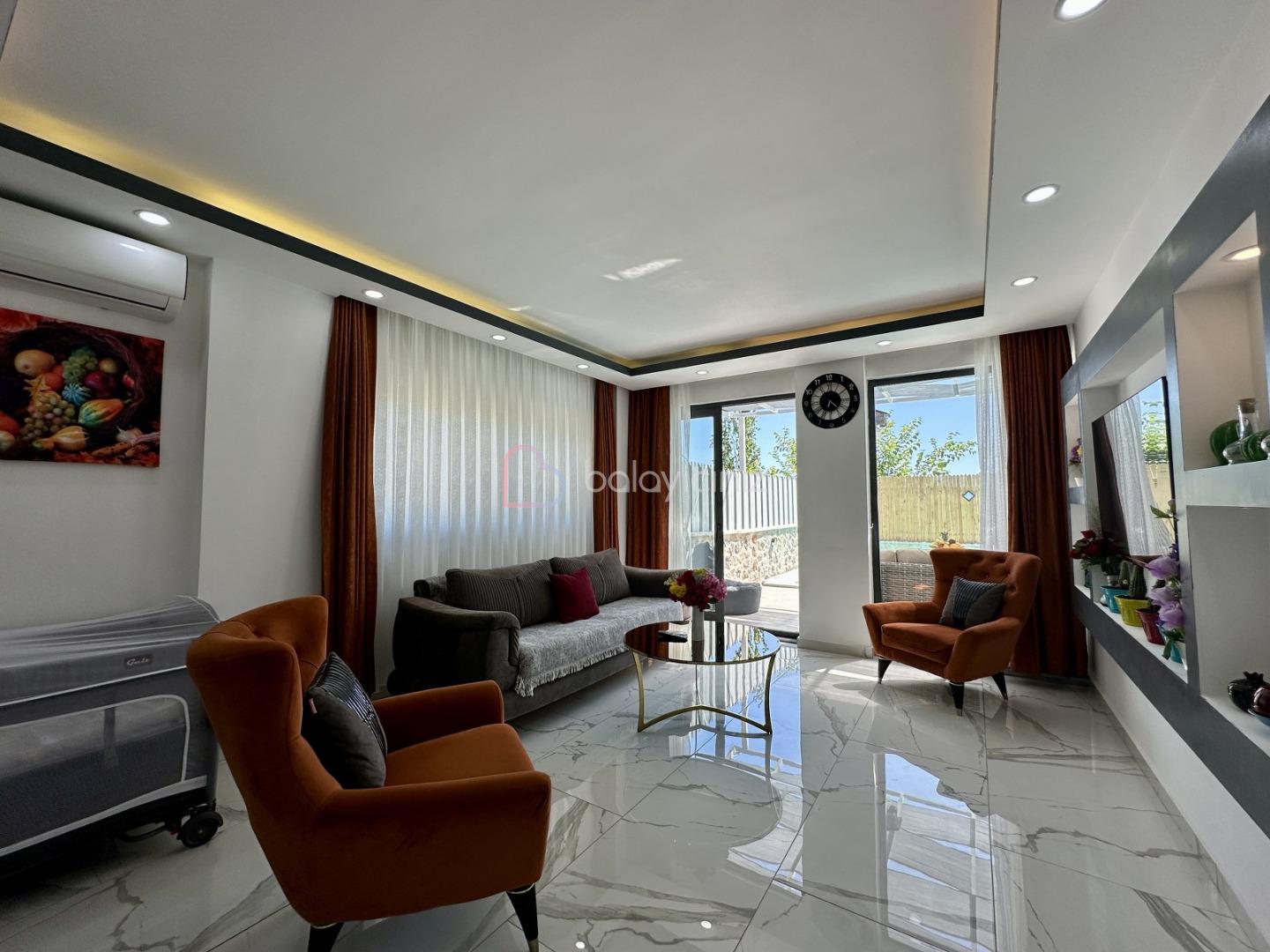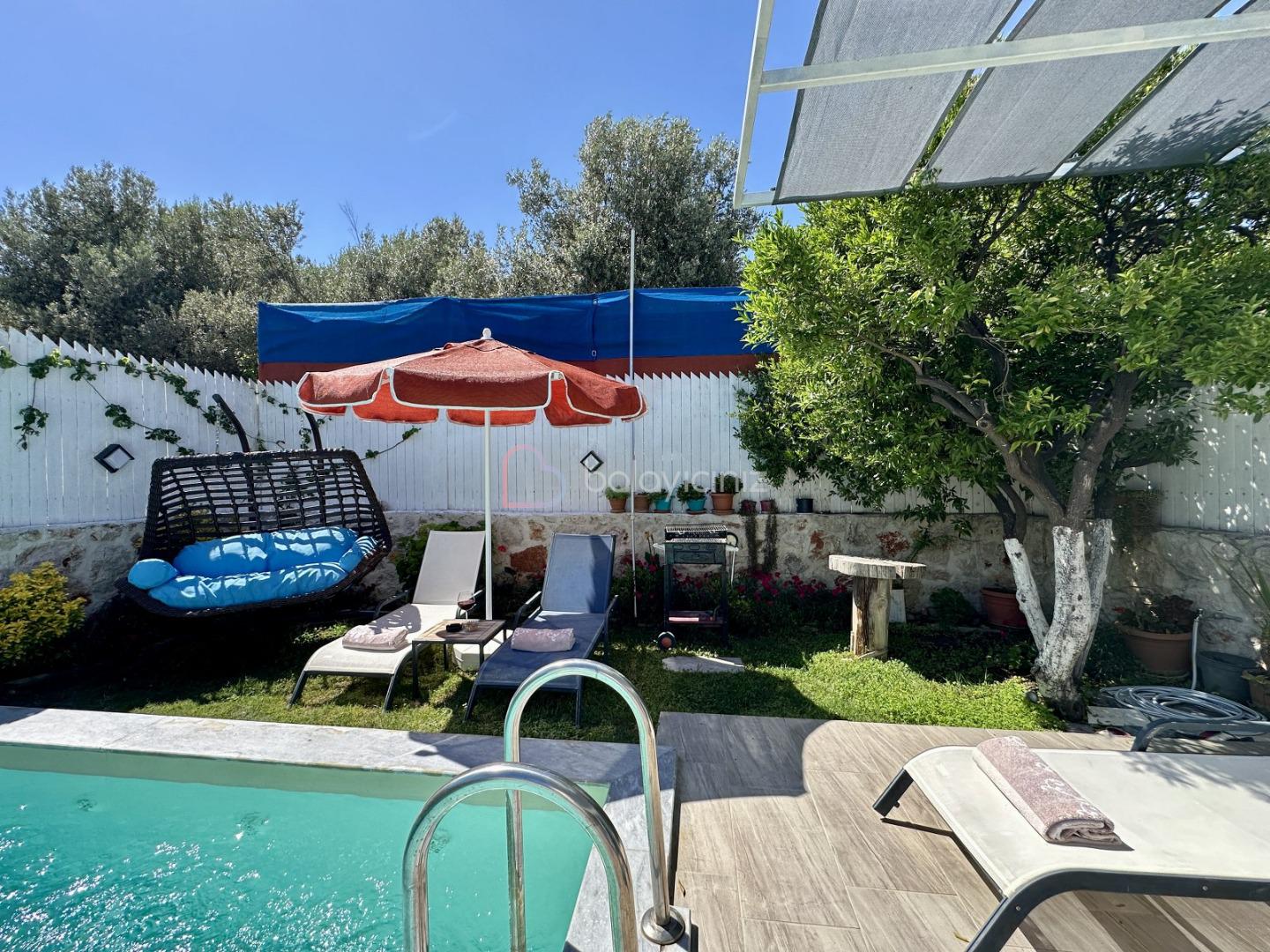 Özel yüzme Havuzu korunaklı olup dışarıdan gözükmemektedir. Bahçe içerisinde şezlonglar, güneş şemsiyeleri, masa ve sandalyeler, barbekü, salıncak, çardak ve oturama alanı bulunmaktadır.
