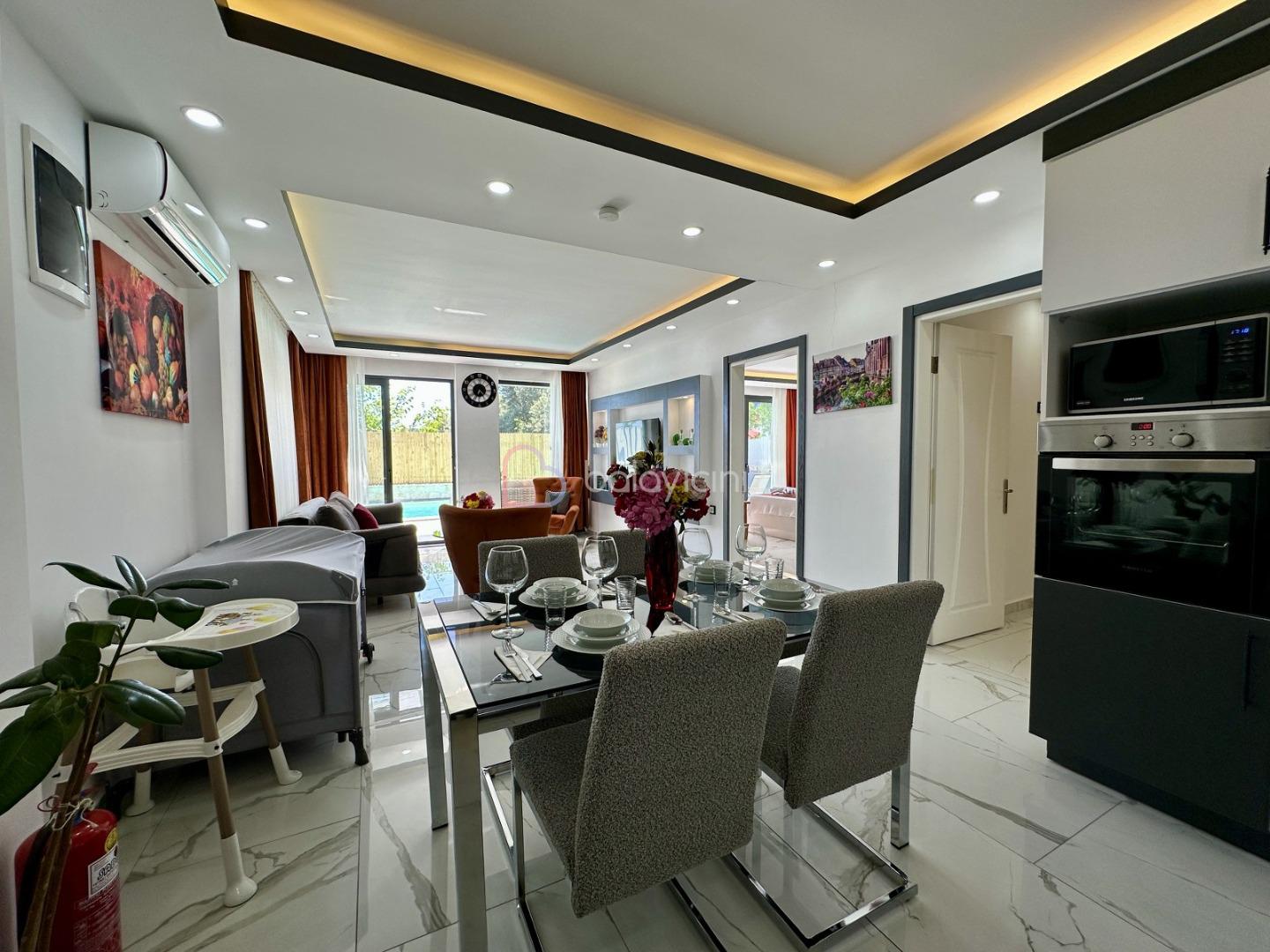 Not: Villanın güneşlenme terası ve havuzunun dış taraftan görünmemesi için gerekli önlemler alınmıştır fakat villanın diğer bölümlerinin görünürlüğü kesin olarak garanti edilememektedir.