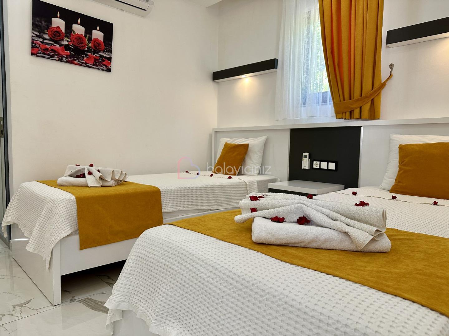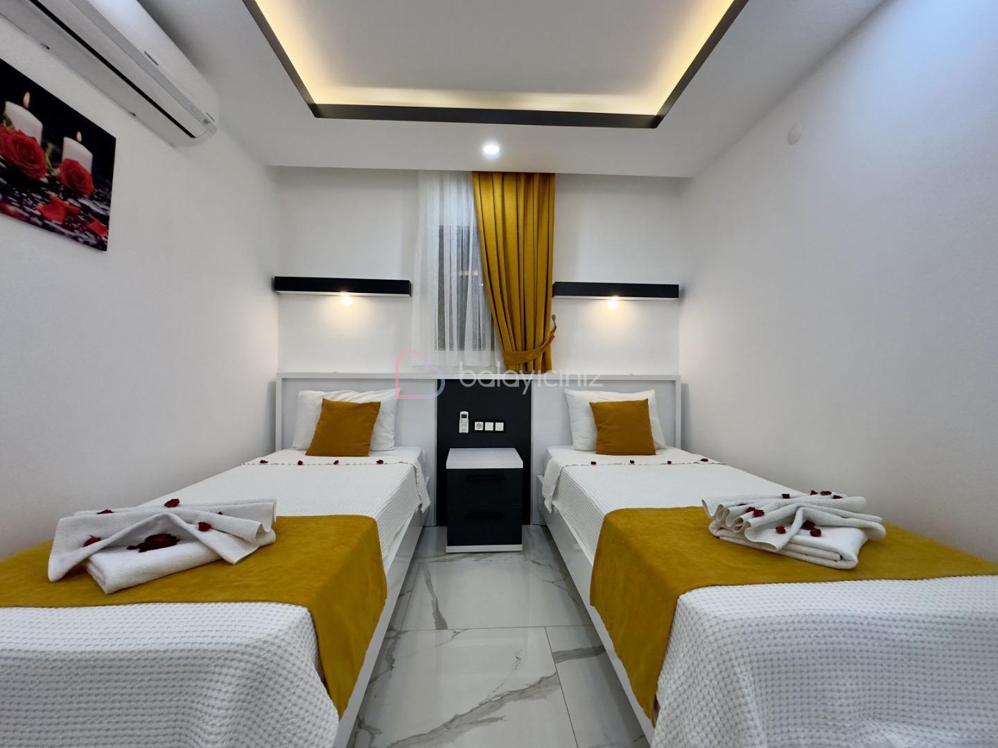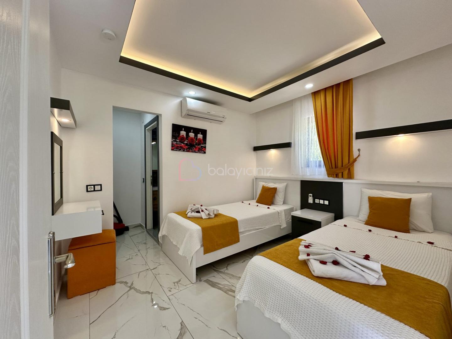 2. Yatak Odası: 2 adet tek kişilik yatak, klima, komodin, elbise dolabı, makyaj masası, banyo ve tuvalet bulunmaktadır.