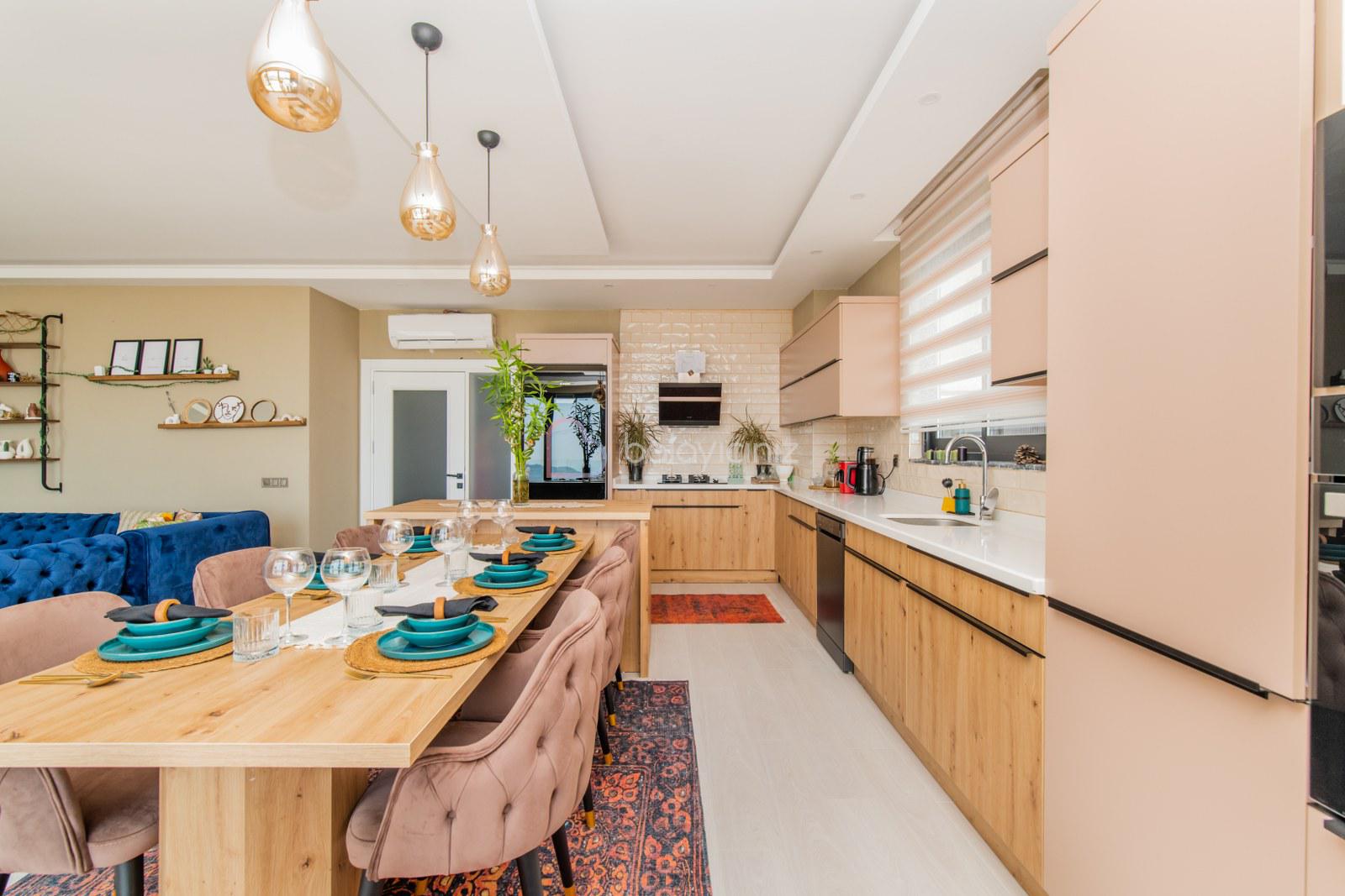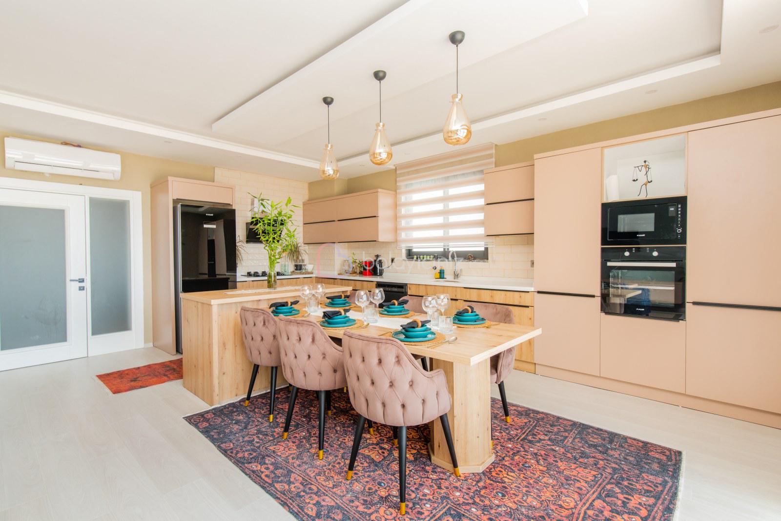 Buzdolabı, bulaşık makinesi, çamaşır makinesi, fırın, ocak, kettle, kahve makinesi, mikrodalga fırın, yemek masası, tencere, tabak, çatak-bıçak takımı vb. ekipmanlar mevcuttur.