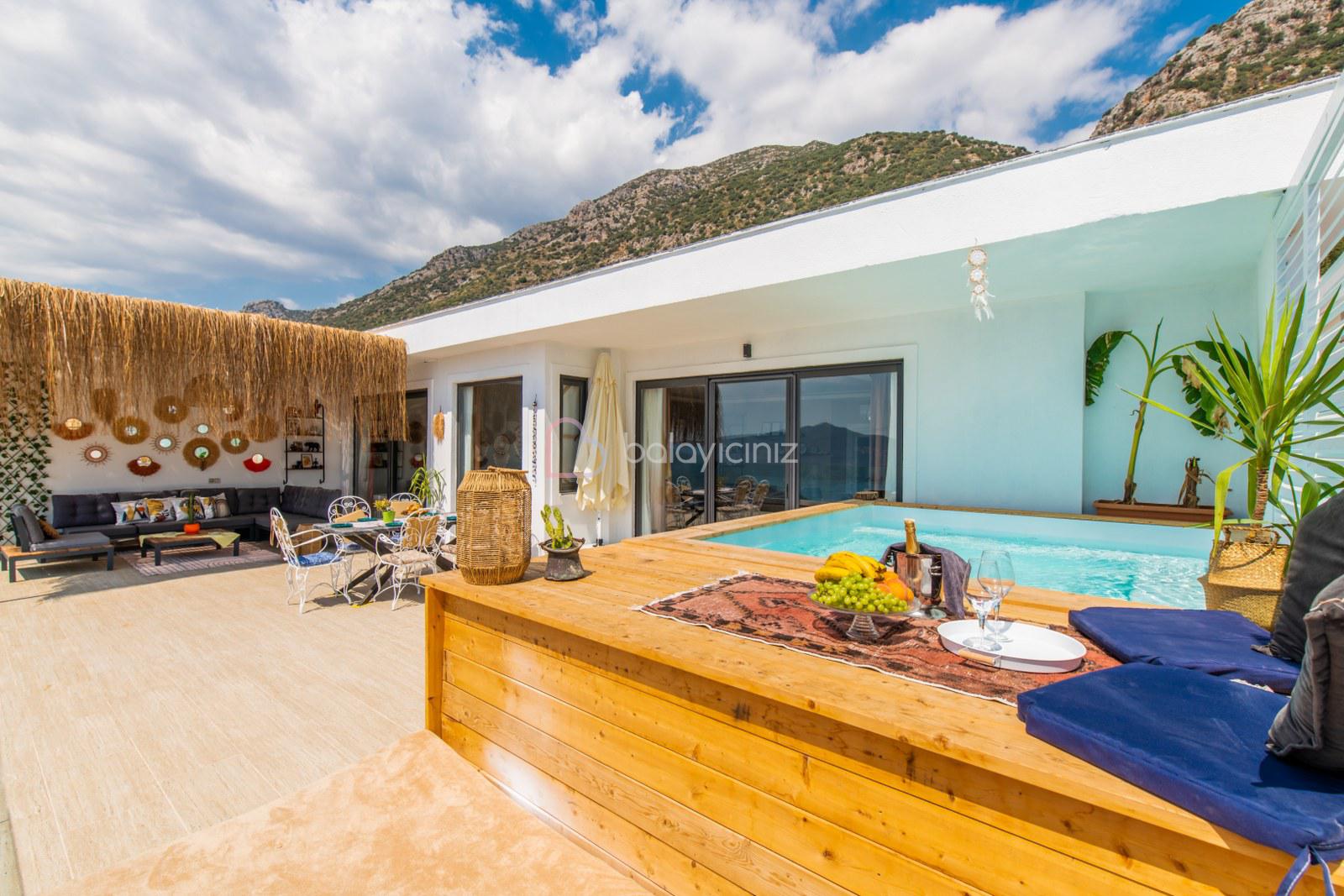 Özel jakuzi havuzu, güneşlenme alanı, barbekü alanı, oturma alanı, yemek masası bulunmaktadır.