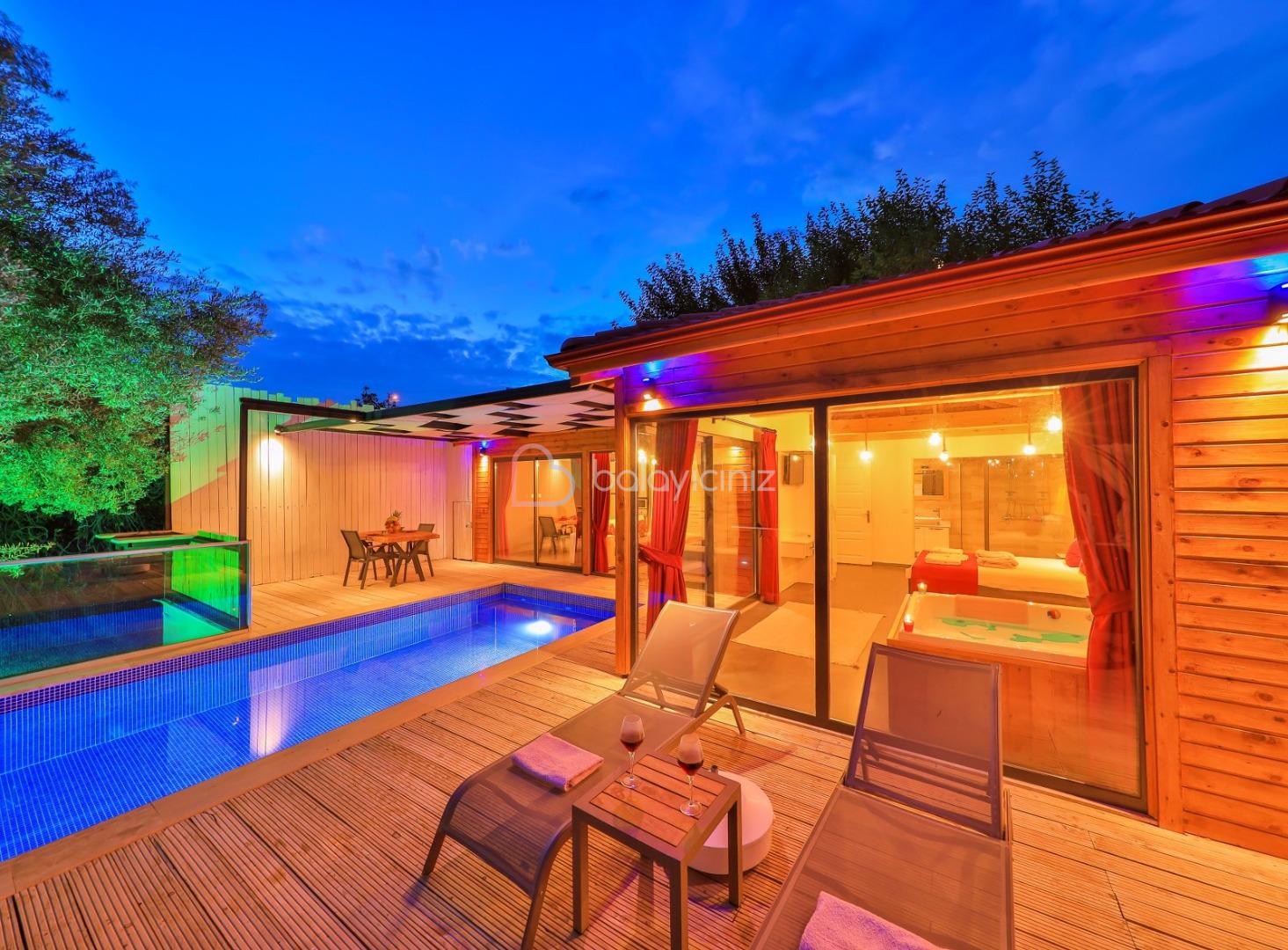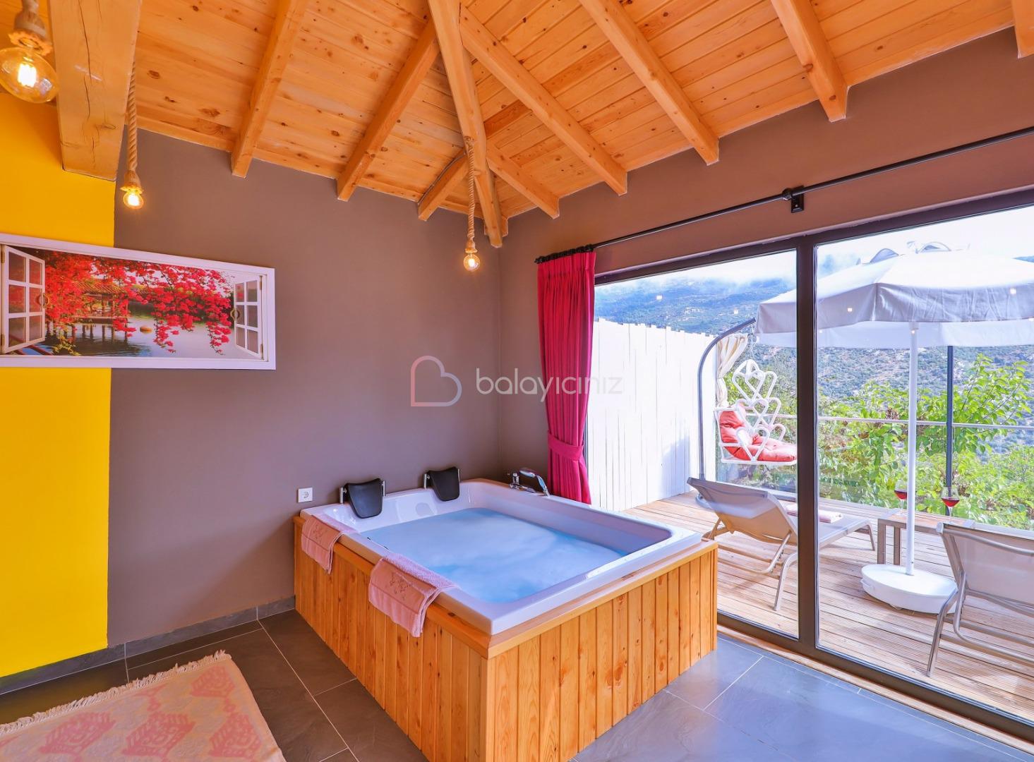 Kalkan İslamlar mevkisinde doğa ile iç içe konumlandırılmış 1 yatak odalı ve 2 kişi kapasiteli muhafazakar balayı seçeneğimizdir. Villa Abanoz, Sessizliğin, huzurun hâkim olduğu bir villada tatil isteyen çiftlerimiz için oldukça uygun bir seçenektir. Muhafazakâr villalar ve balayı villaları kategorisinde yer alan villamız, mahremiyete önem veren çiftlerimiz için huzur dolu bir tatil fırsatı sunuyor. Ayrıca yatak odasında misafirlerimizin rahatlaması için 2 kişilik jakuzi konforu da sağlamaktadır.