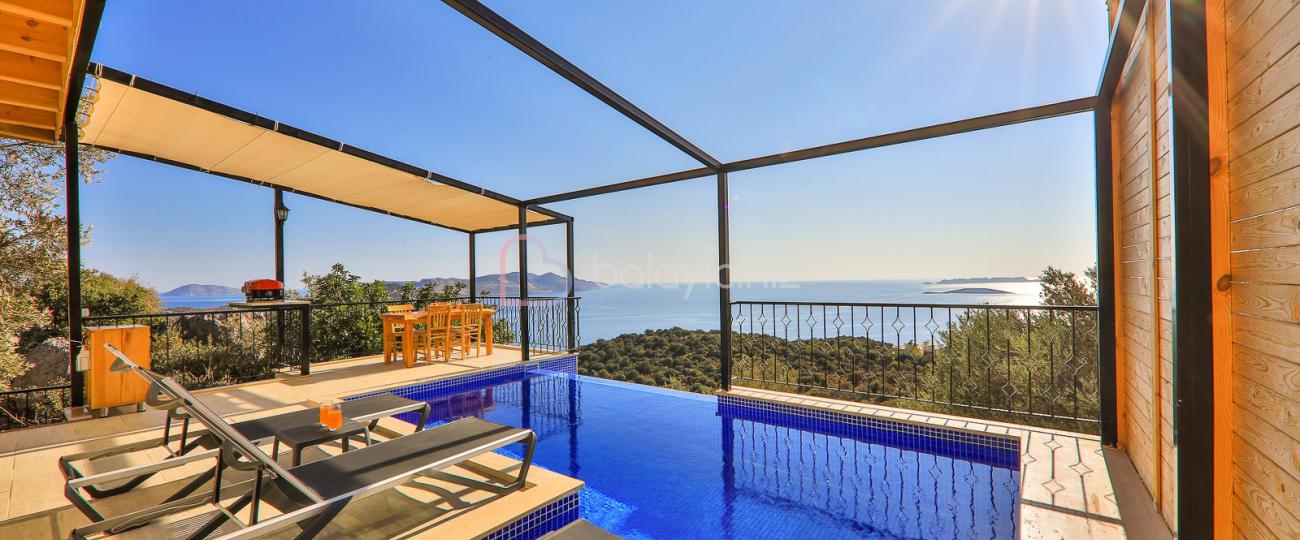 Yemek HizmetiVilla Abosa Kas merkeze yalnızca 5 km uzaklıkta bulunan, Kas Gökseki mevkiinde sakin, otantik, deniz ve doğa manzaralı terastan adalar Yunan adalarını seyretmenin keyfini çıkarabileceğiniz doğa içerisinde bir ortam. Yapımı yeni tamamlanan korunaklı, Jakuzili balayı villasıdır. Tas ve ahşap kullanılarak dekore edilmiştir. Villanın suite yatak odasında, jakuzi bulunmaktadır. Son derece zevkli döşenmiş Villa Abosa, muhafazakar, aile ve çiftler için ideal bir seçimdir. Jakuzili bu villamız romantik keyifli bir tatil isteyen, balayı çiftleri için ideal bir seçim olacaktır.