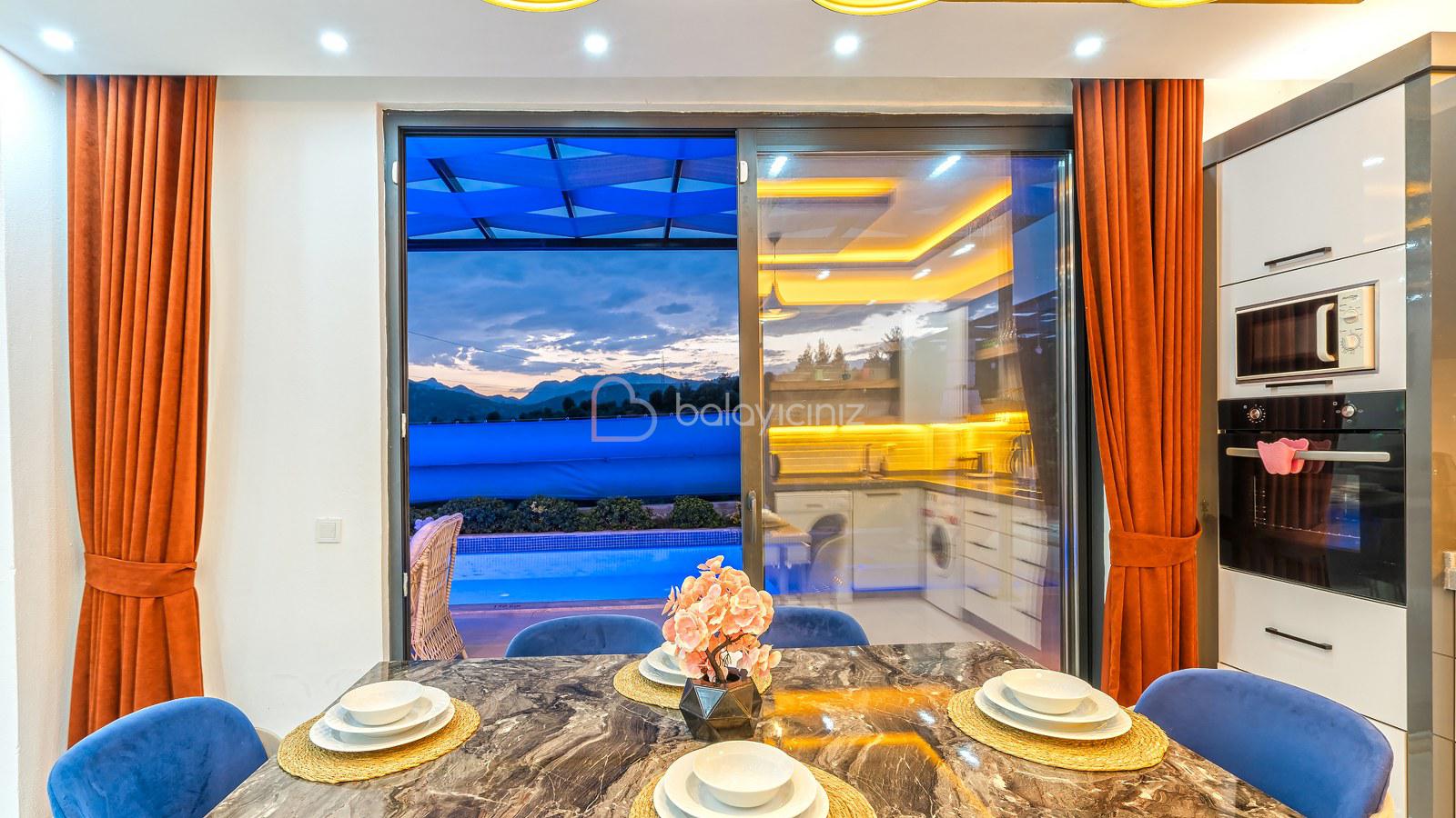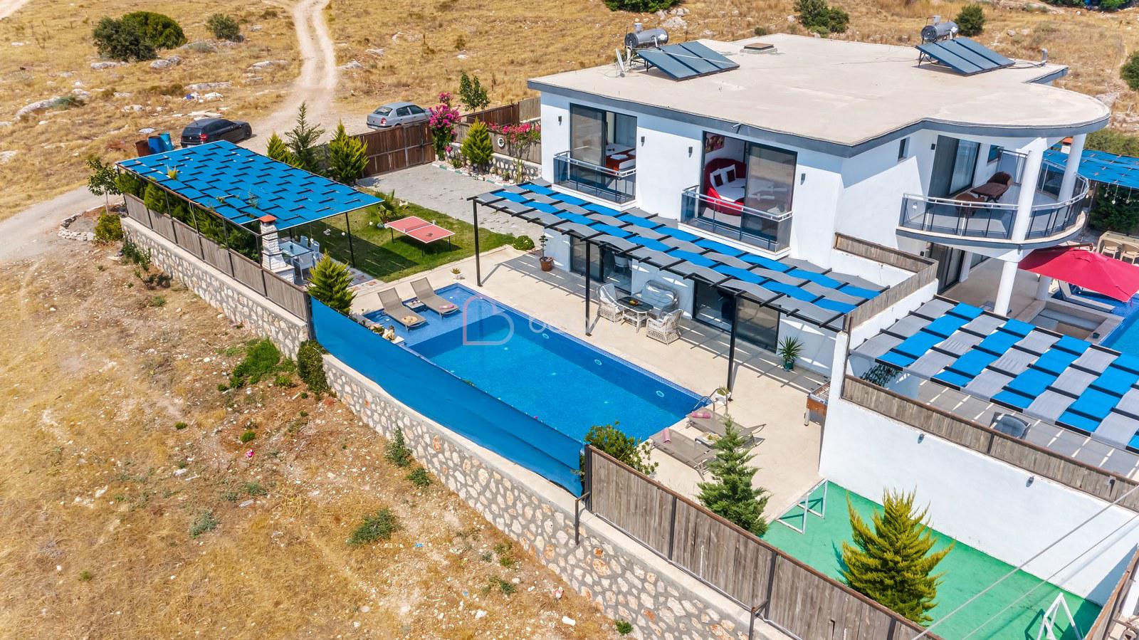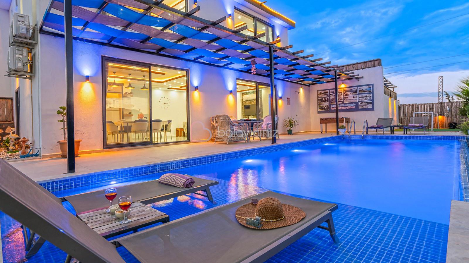 Villa Aksoy Kınık 2 Kalkan Kınık bölgesinde konumlanmış 2 yatak odalı muhteşem doğa manzaralı korunaklı özel havuzlu ve geniş bahçe alanına sahip tatil villasıdır. Oldukça modern ve şık dekore edilmiş olan villamızda eğlenceli vakitler geçirebileceğiniz masa tenisi, langırt bulunmaktadır. Ayrıca çocuklar içinde oyun parkı ve mini kale bulunmaktadır. Havuz terasında bulunan perdeleme sistemi ile korunaklı hale gelen villamız, muhafazakar çekirdek aileler ve balayı çiftlerimiz için uygun bir seçenektir. Ebeveyn yatak odasında bulunan jakuzisi ile bütün yılın stresini, yorgunluğunu üzerinizden atabilirsiniz. Villamız dünyaca ünlü Saklıkent Kanyonuna 15 km mesafede olup Patara Plajına 10 km mesafededir. Villamızda siz değerli misafirlerimizin ihtiyacı olan her şey düşünülerek dekore edilmiştir.