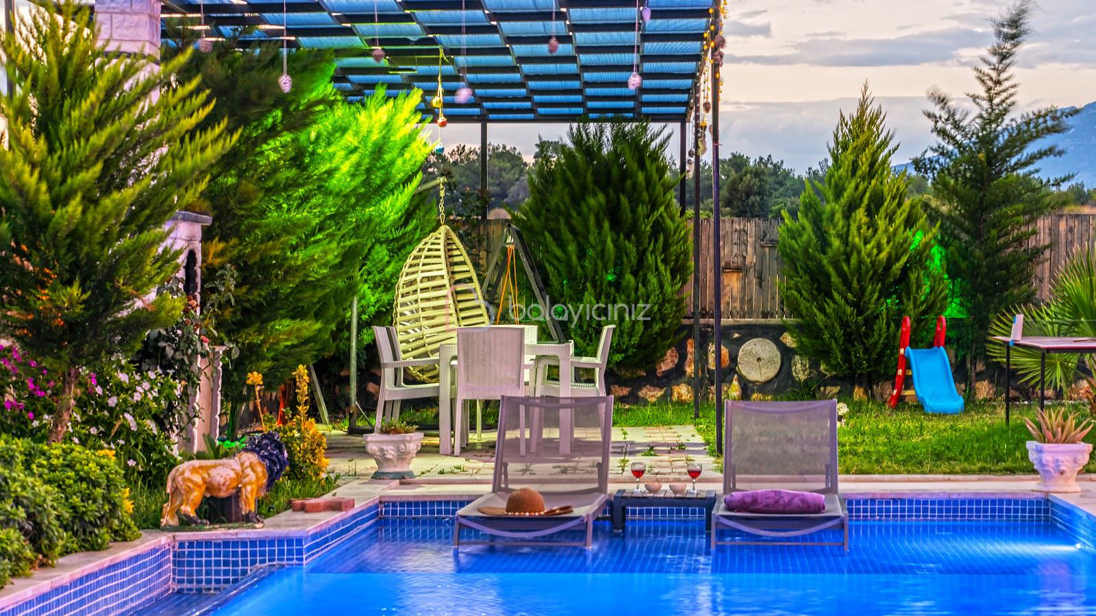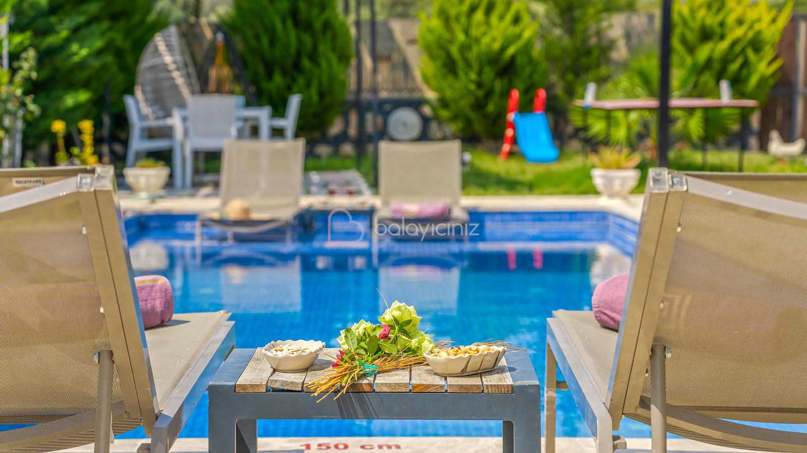 Yemek HizmetiKorunaklı, lüks, geniş bahçeli, Oyun Alanlı, jakuzili, kiralık tatil villası