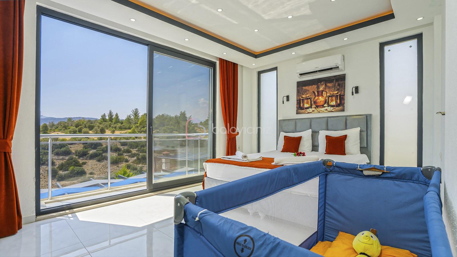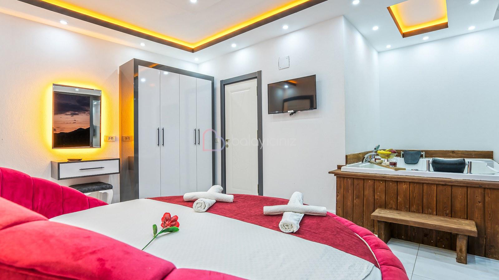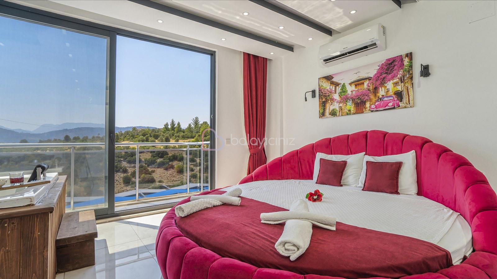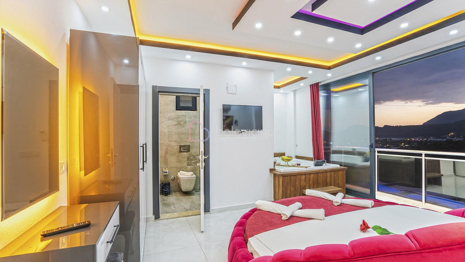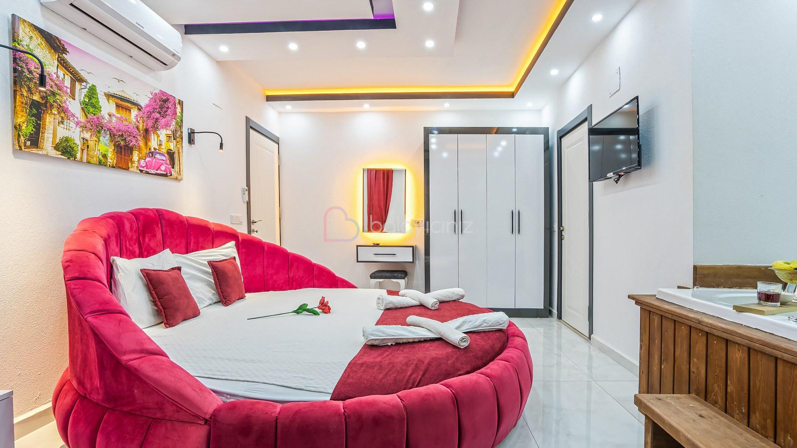 1. Yatak Odası: 1 adet çift kişilik yatak, jakuzi, klima, bebek yatağı, elbise dolabı, komodin, makyaj masası, banyo ve tuvalet bulunmaktadır.