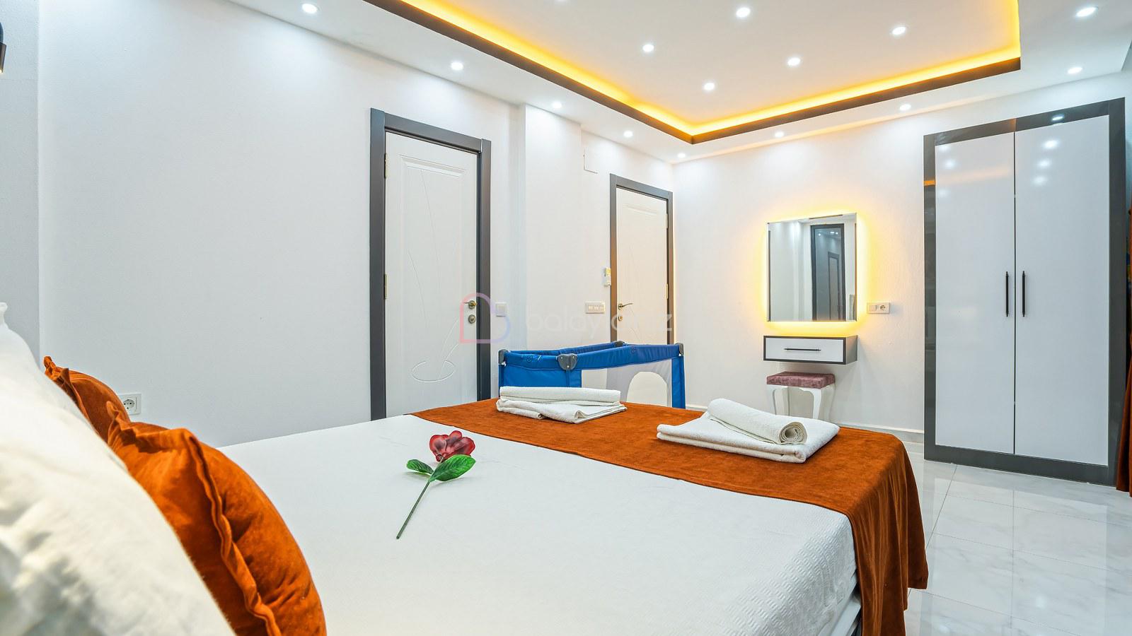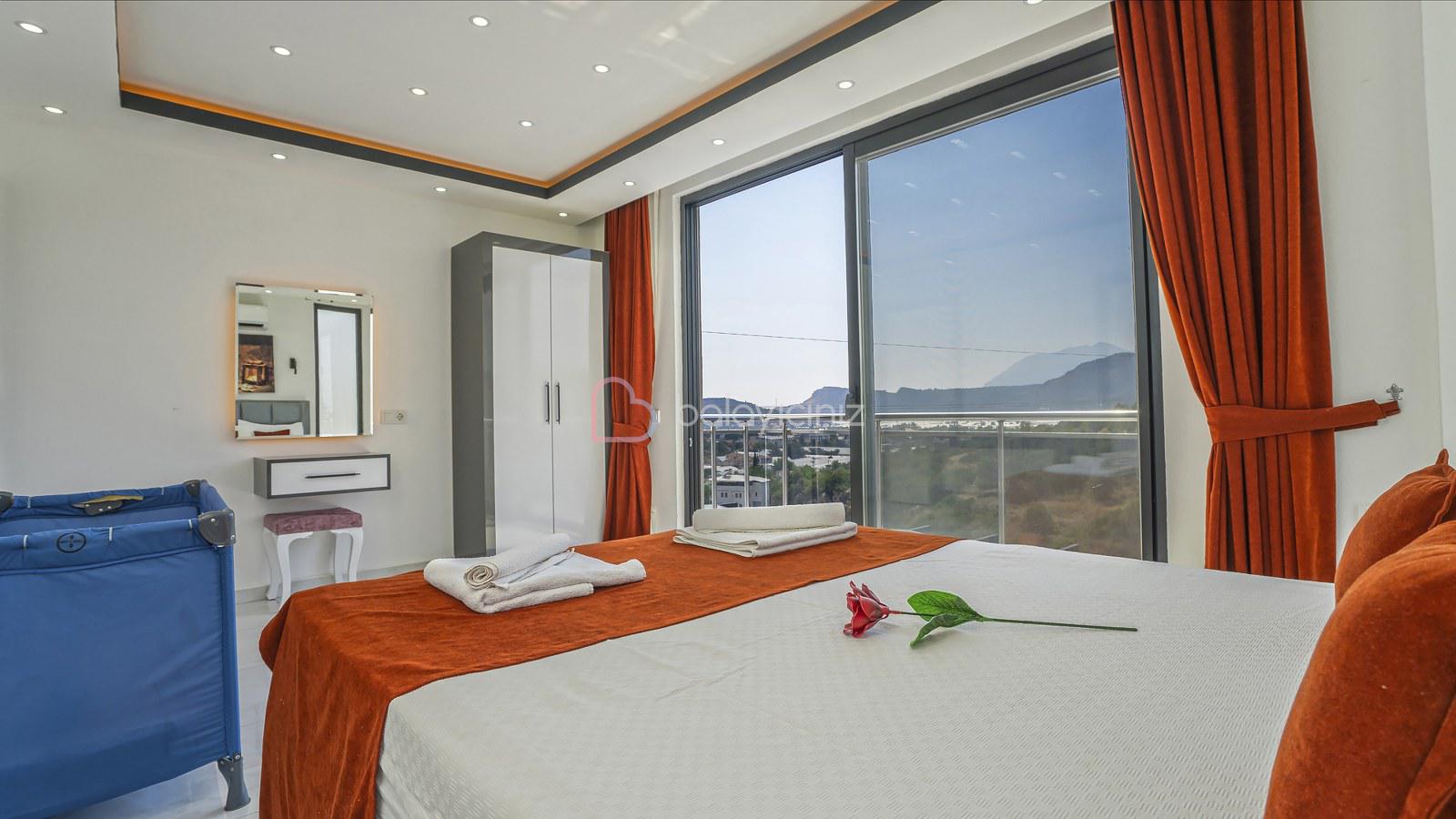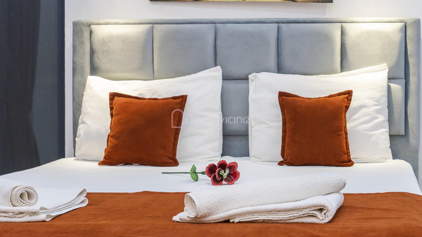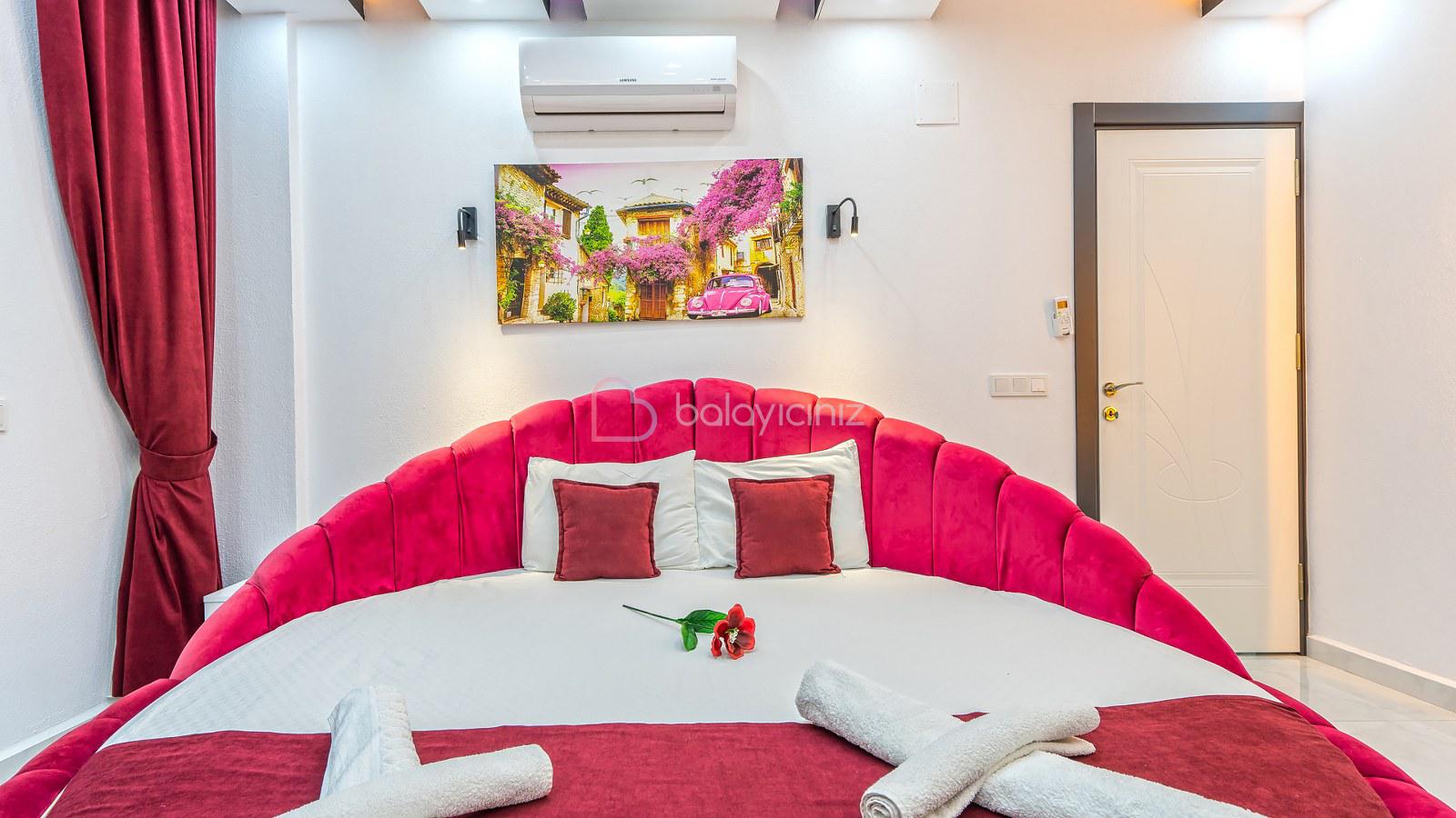 1. Yatak Odası: 1 adet çift kişilik yatak, jakuzi, klima, bebek yatağı, elbise dolabı, komodin, makyaj masası, banyo ve tuvalet bulunmaktadır.