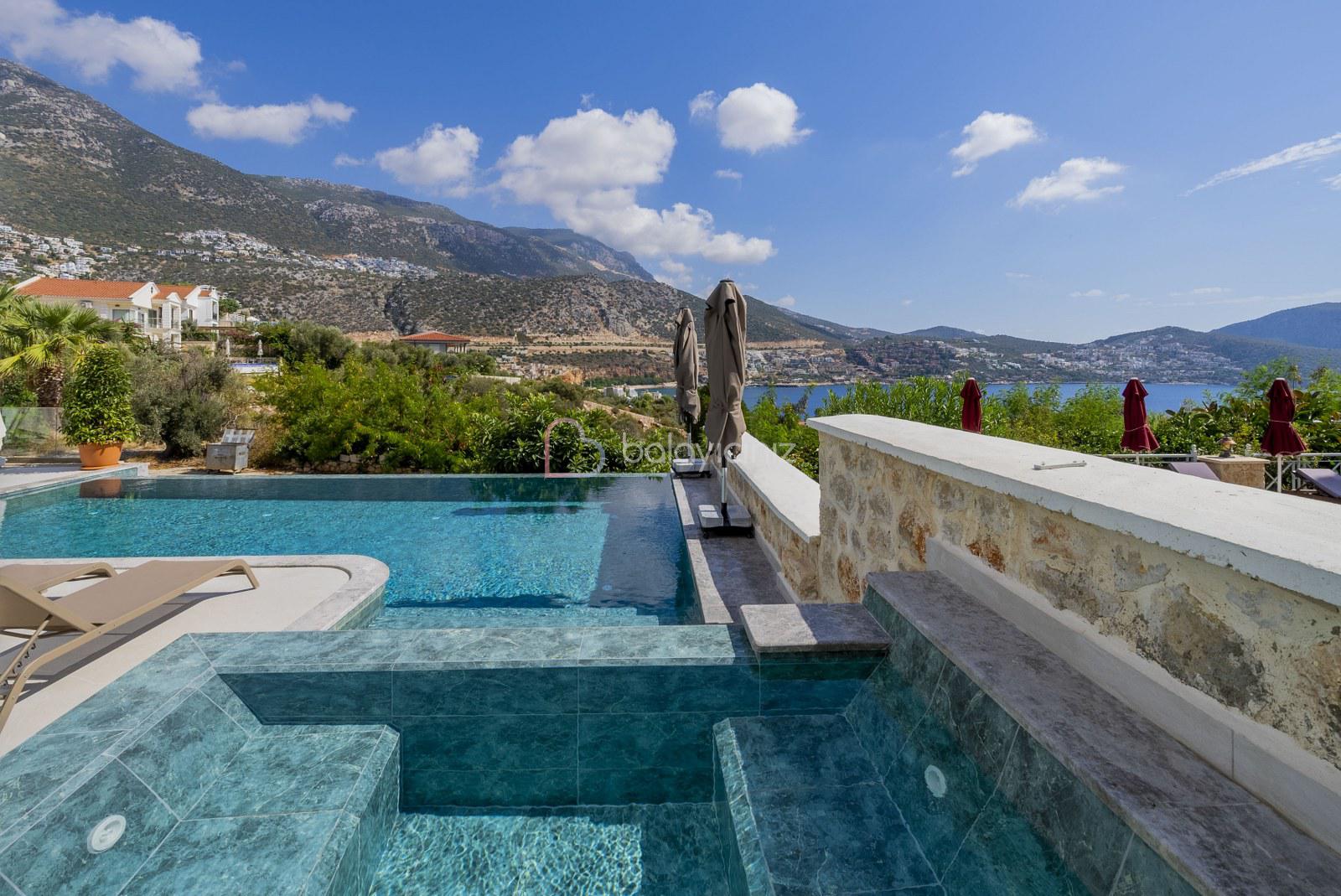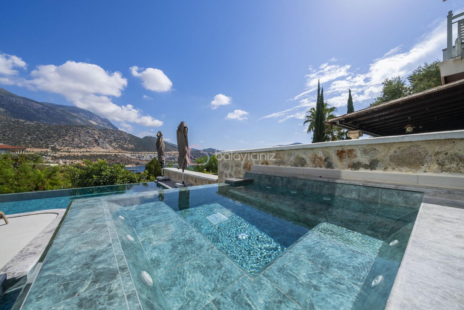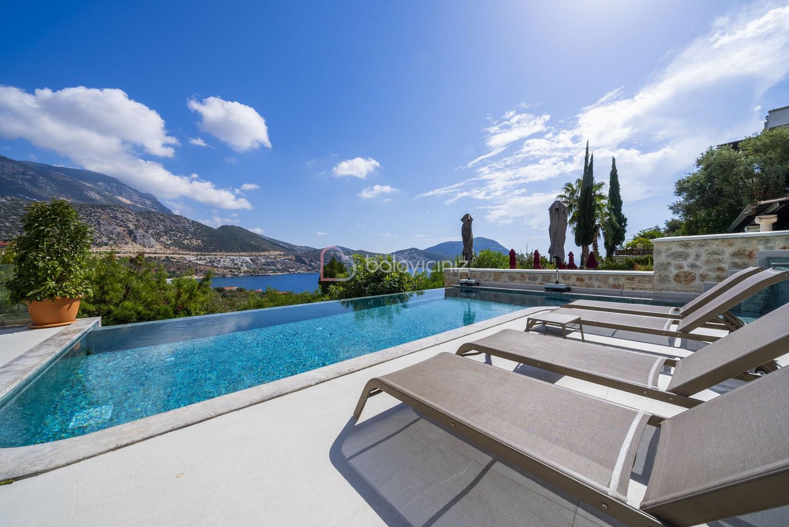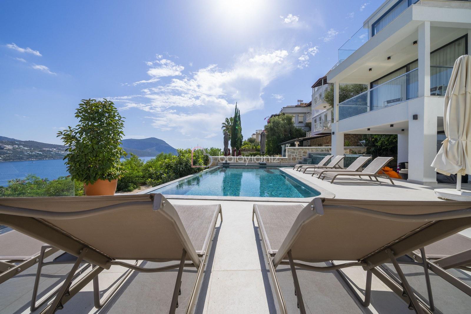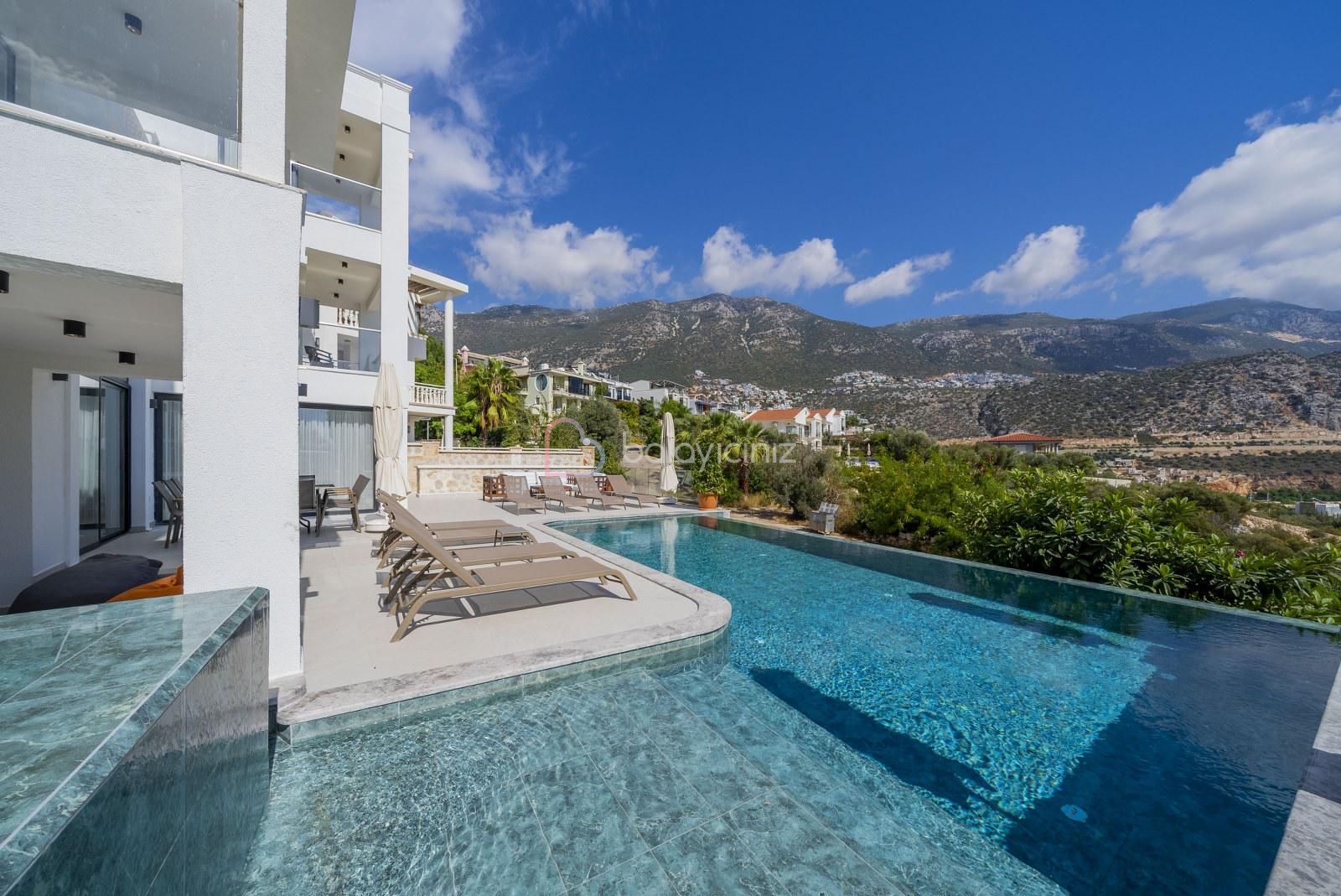Boy :9 mt. Eni: 4 mt. Derinliği 155 cm. olan deniz manzaralı havuzu bulunmaktadır. Havuz terası şezlong, şemsiye, bahçe mobilyası, salıncak, pergole, mangal, duş bulunmaktadır.