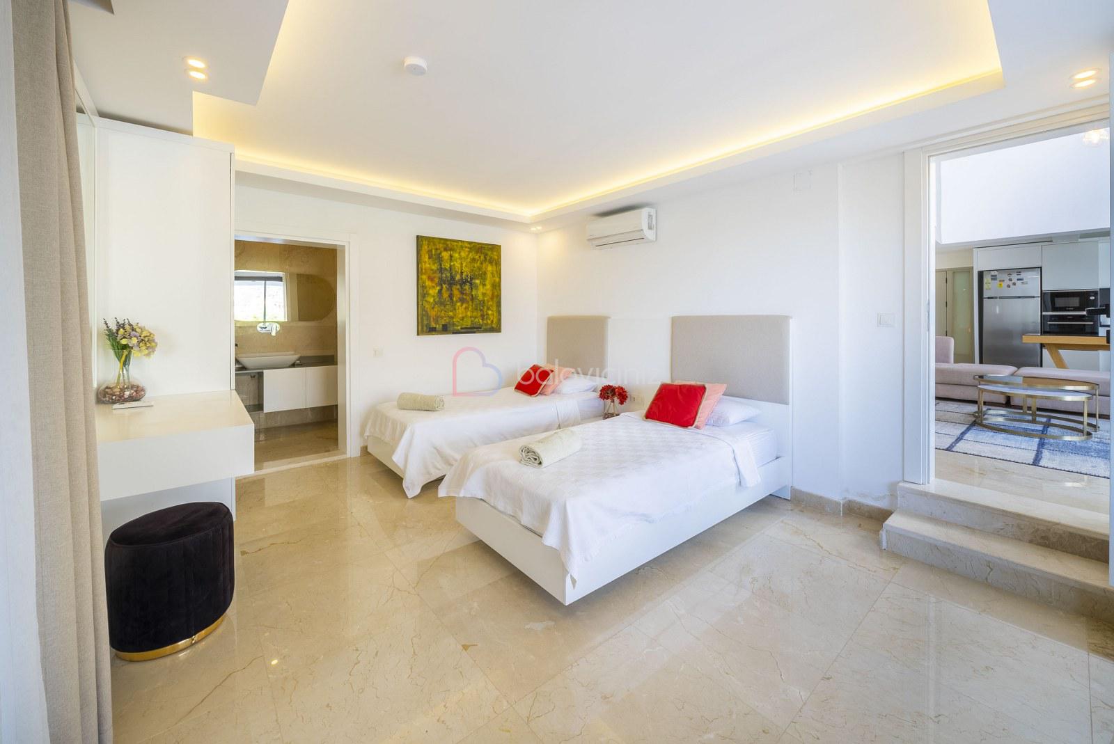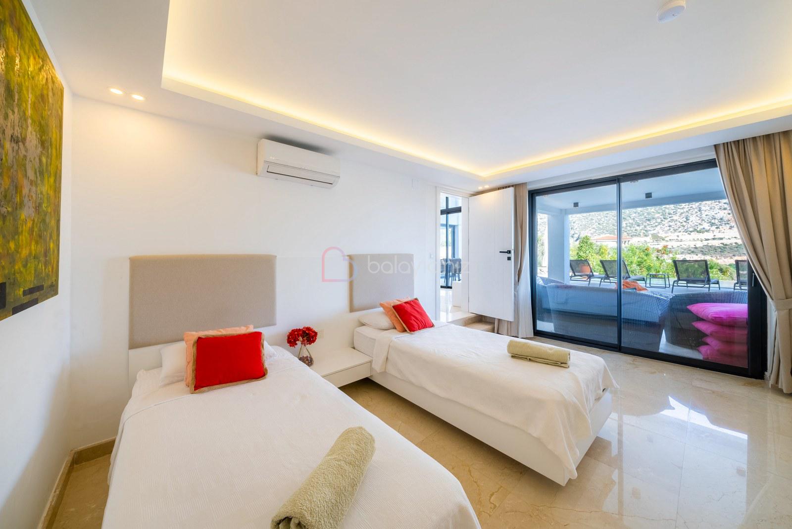 Yatak Odası 1 : 2 adet tek kişilik yatak, klima, komodin, elbise dolabı, makyaj masası,banyo ve tuvalet bulunmaktadır.