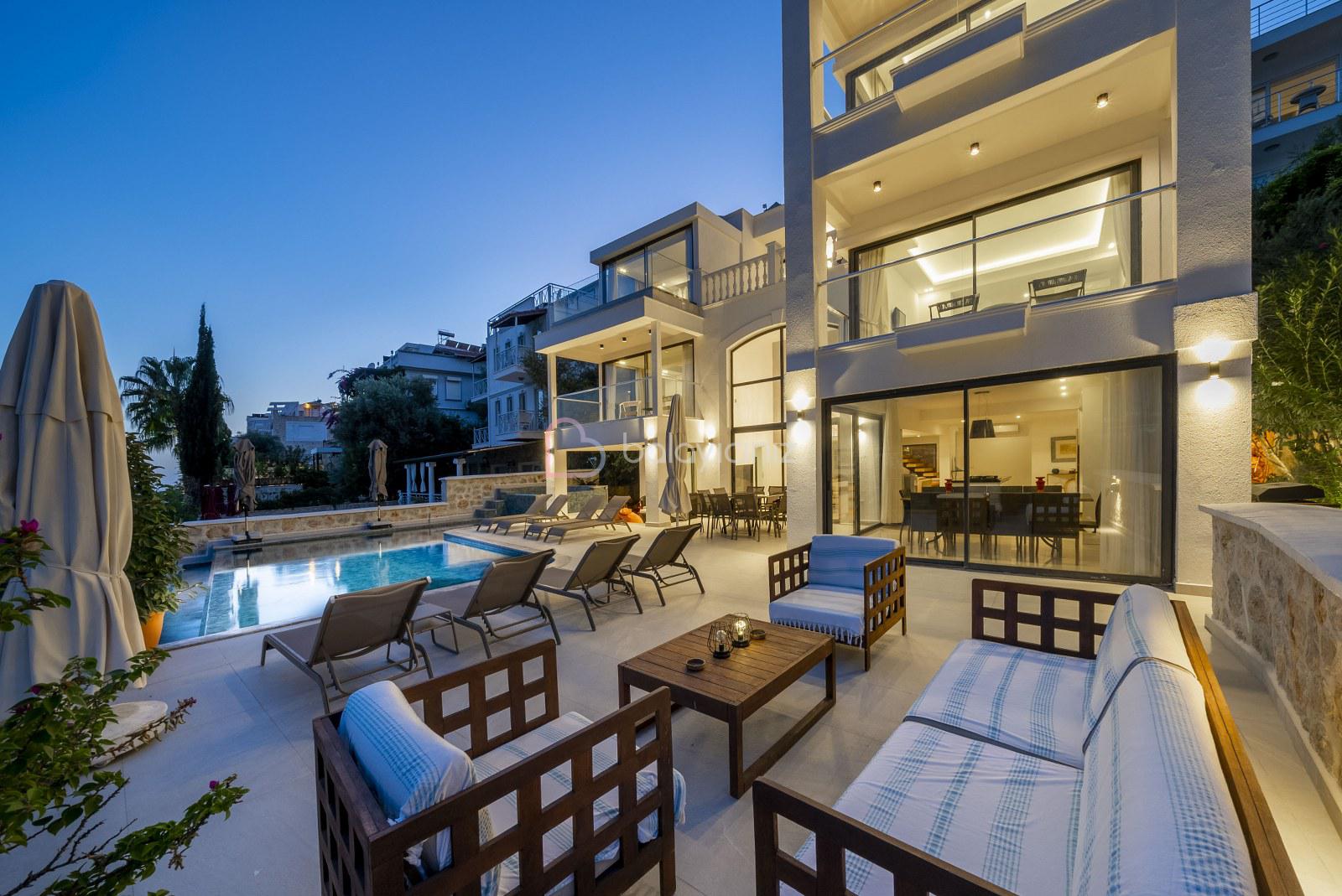 Kalkan, Ortaalan mevkinde bulunan olağanüstü deniz manzarasına sahip 5 yatak odalı lüks ve konforlu dekore edilmiş Villa Arden Ege, 10 kişiye kadar konaklama imkanı sağlamaktadır. Villa Kalkan merkezde ve denize yakın mesafesindedir.