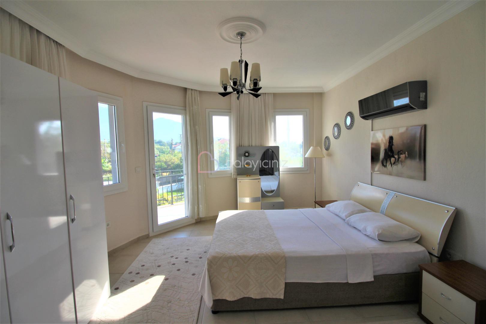 3.Yatak Odası: Çift kişilik yatak odası, klima, elbise dolabı, komidin, banyo ve tuvalet bulunmaktadır. Balkona çıkış bulunmaktadır.