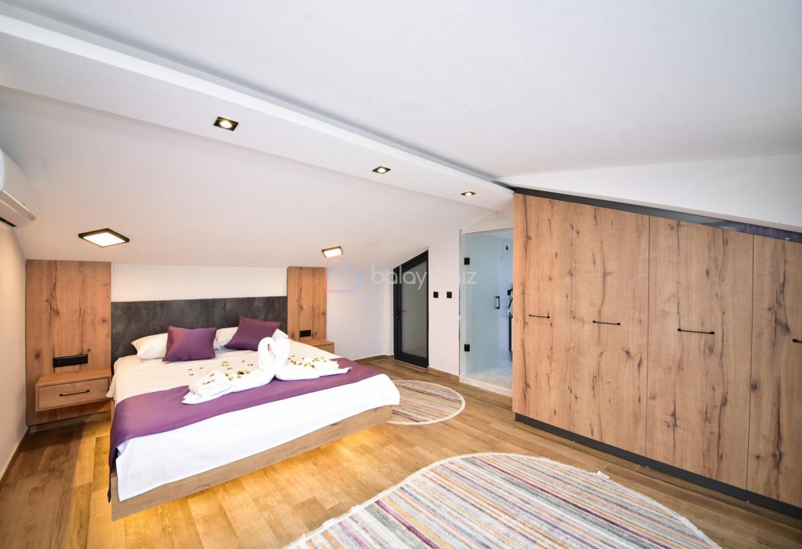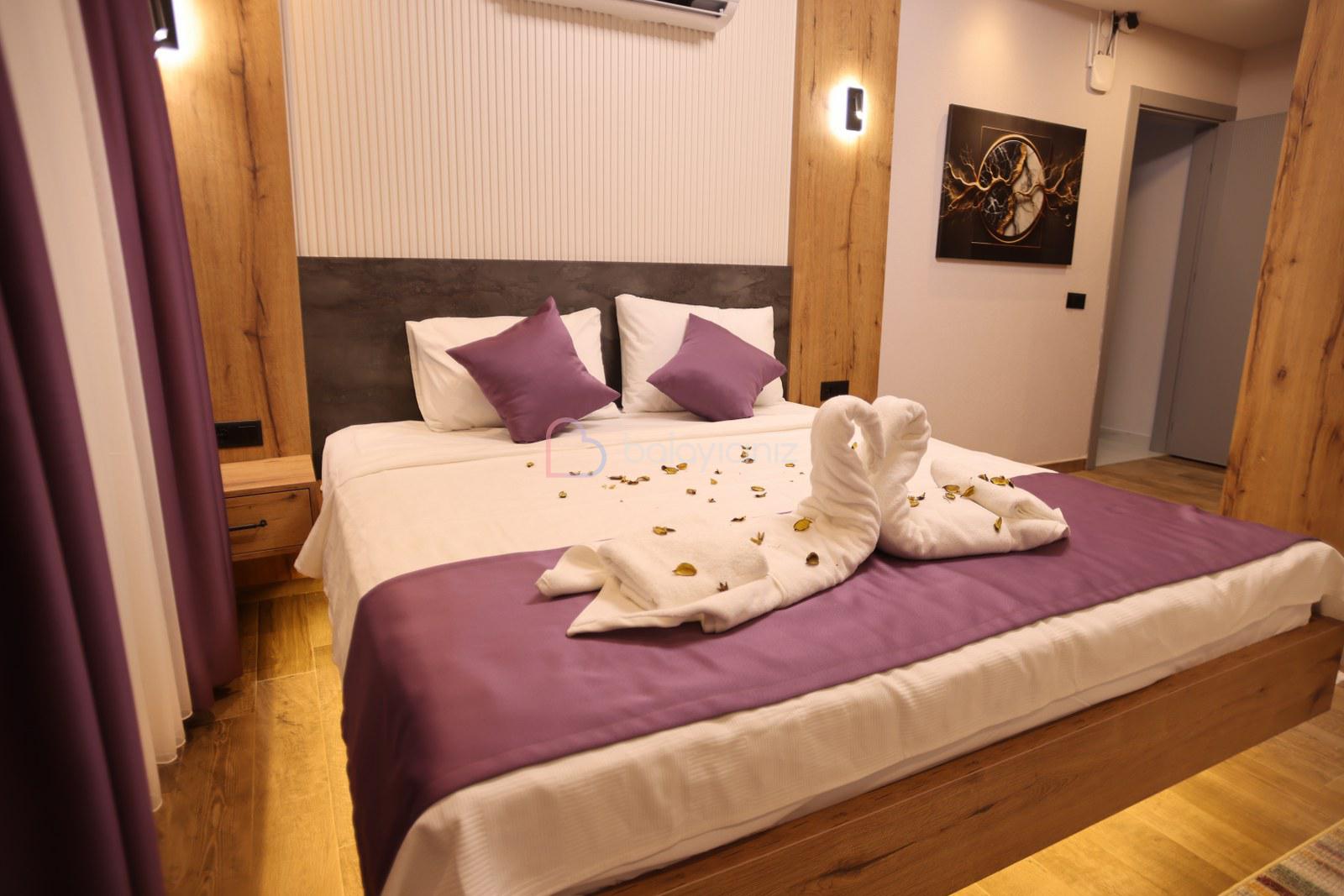 2. Yatak Odası: 1 adet çift kişilik yatak, komodin, makyaj masası, klima, tuvalet ve banyo bulunmaktadır.