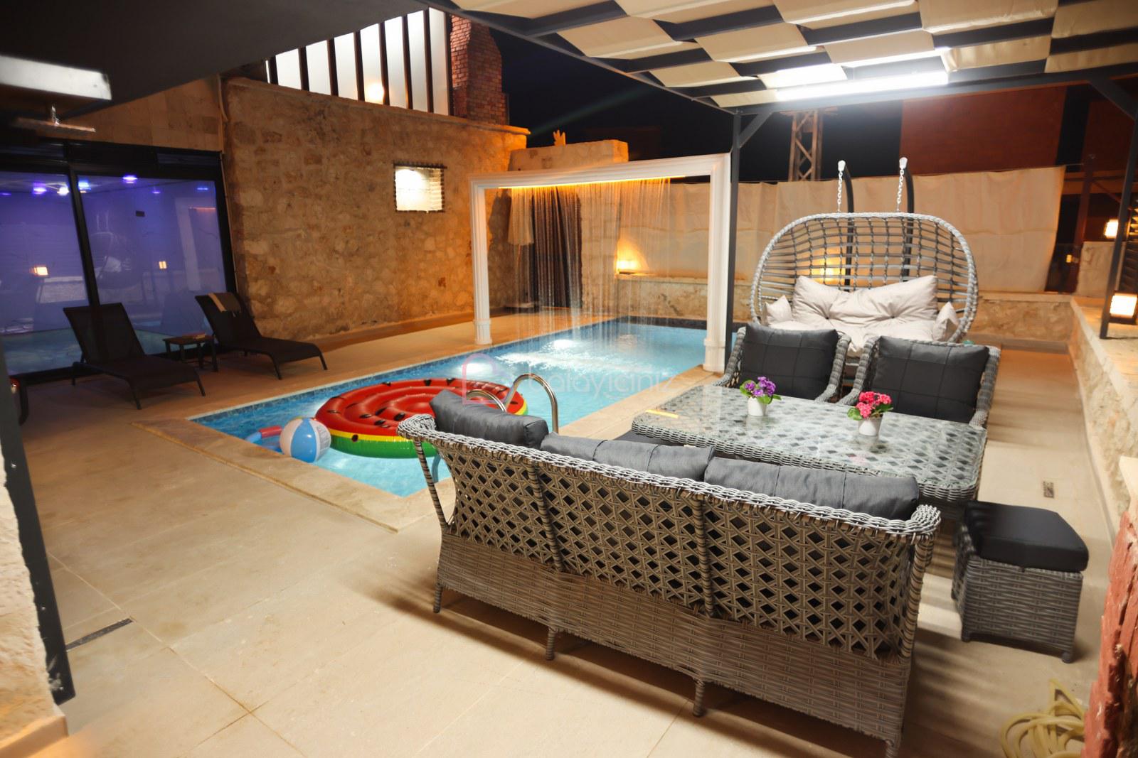 Oturma grubu, uydu alıcı, televizyon, klima, ütü ve ütü masası, elektrik süpürgesi, havuza çıkış bulunmaktadır. Kapalı Isıtmalı havuz bulunmaktadır.