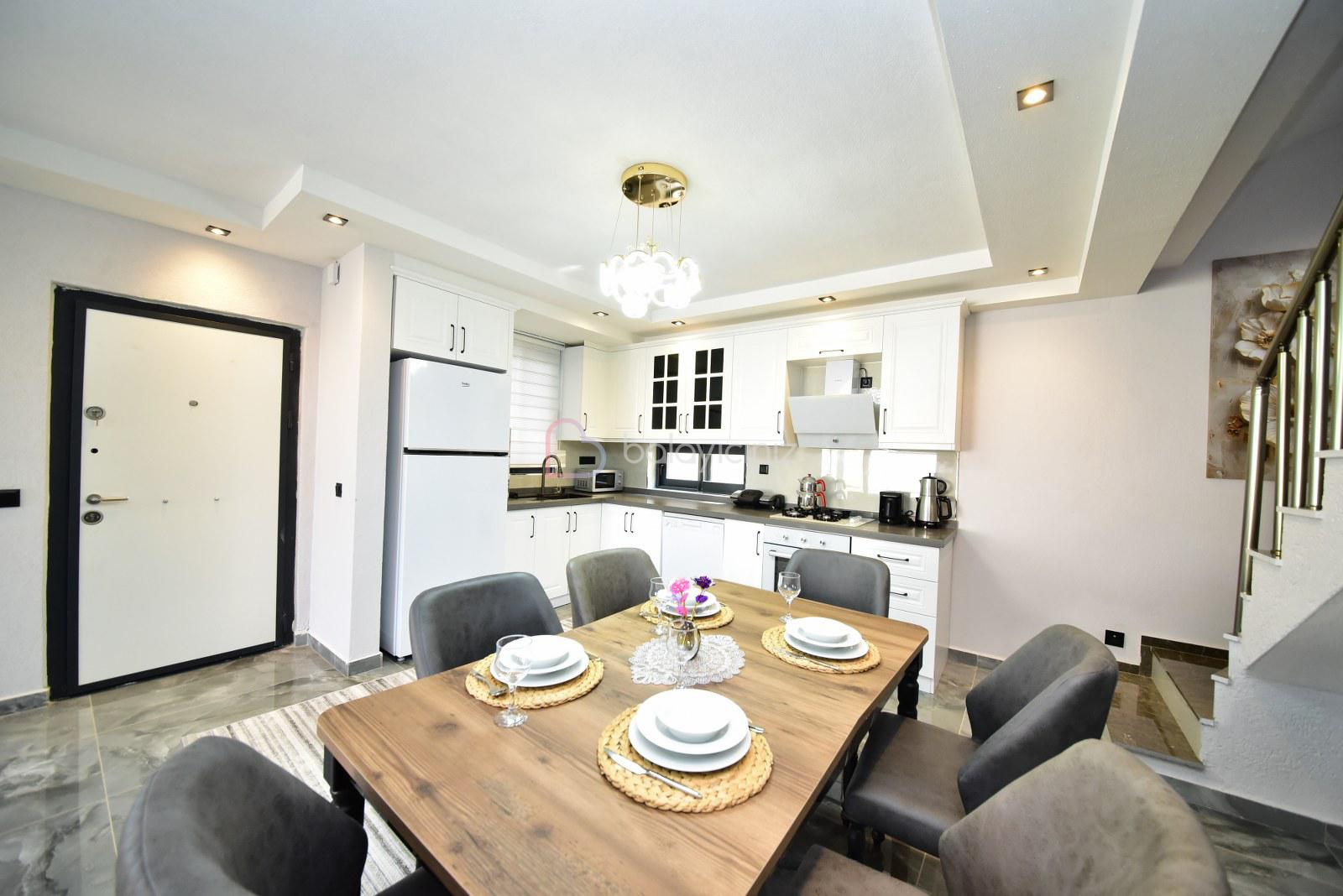 Modern Amerikan mutfak, buzdolabı, bulaşık makinesi, çamaşır makinesi, ankastre fırın, mikrodalga fırın, ankastre 4’lü ocak, elektrikli su ısıtıcısı (kettle), 4 kişilik yemek takımı, çeşitli mutfak araç gereçleri bulunmaktadır.