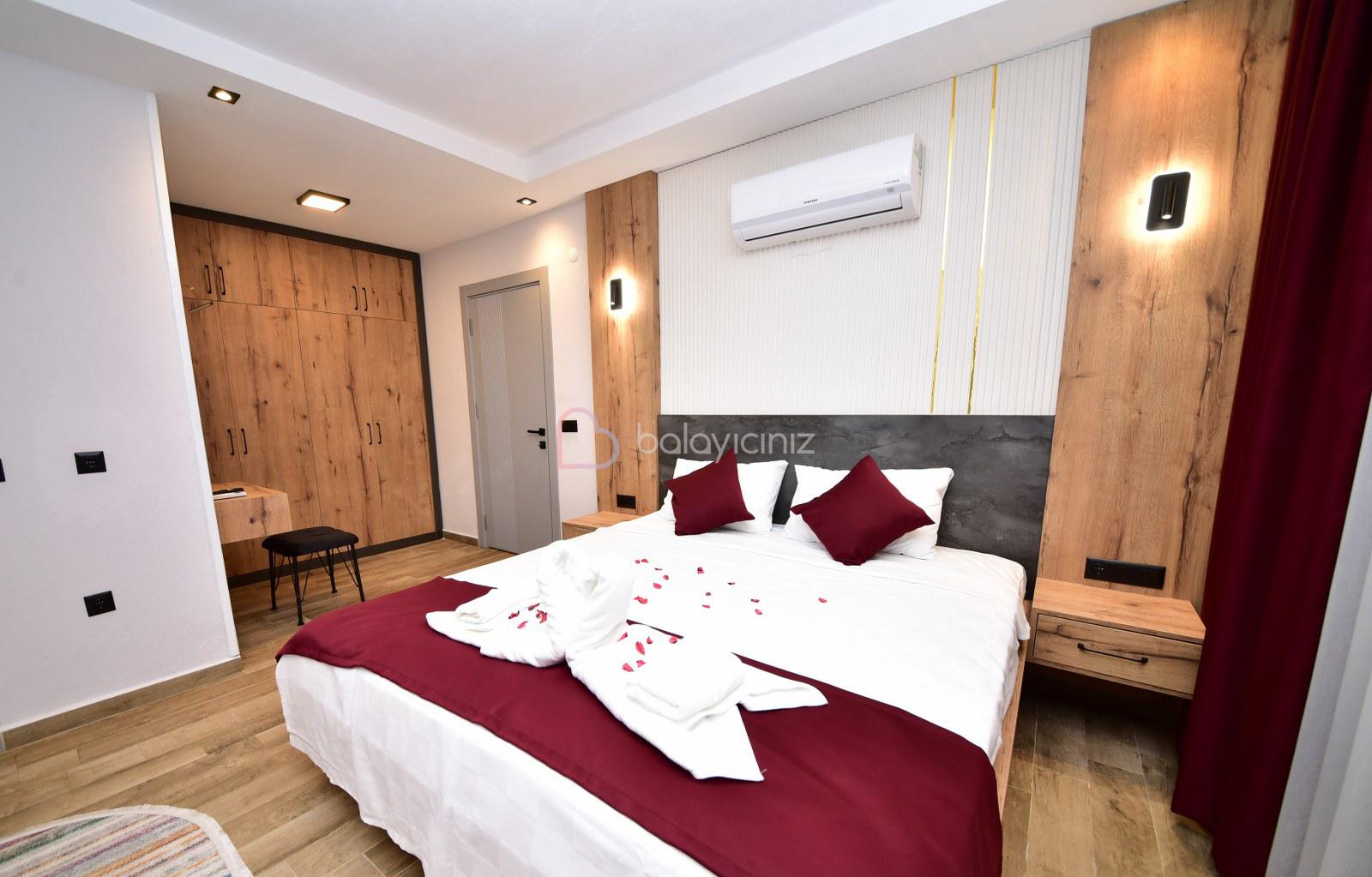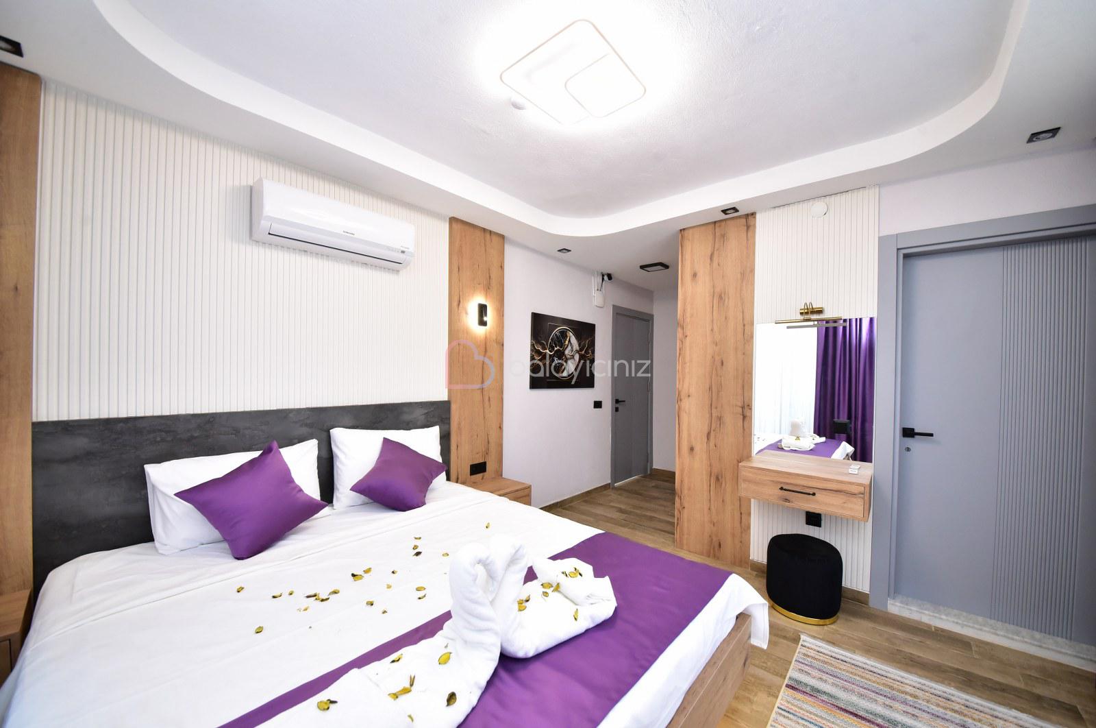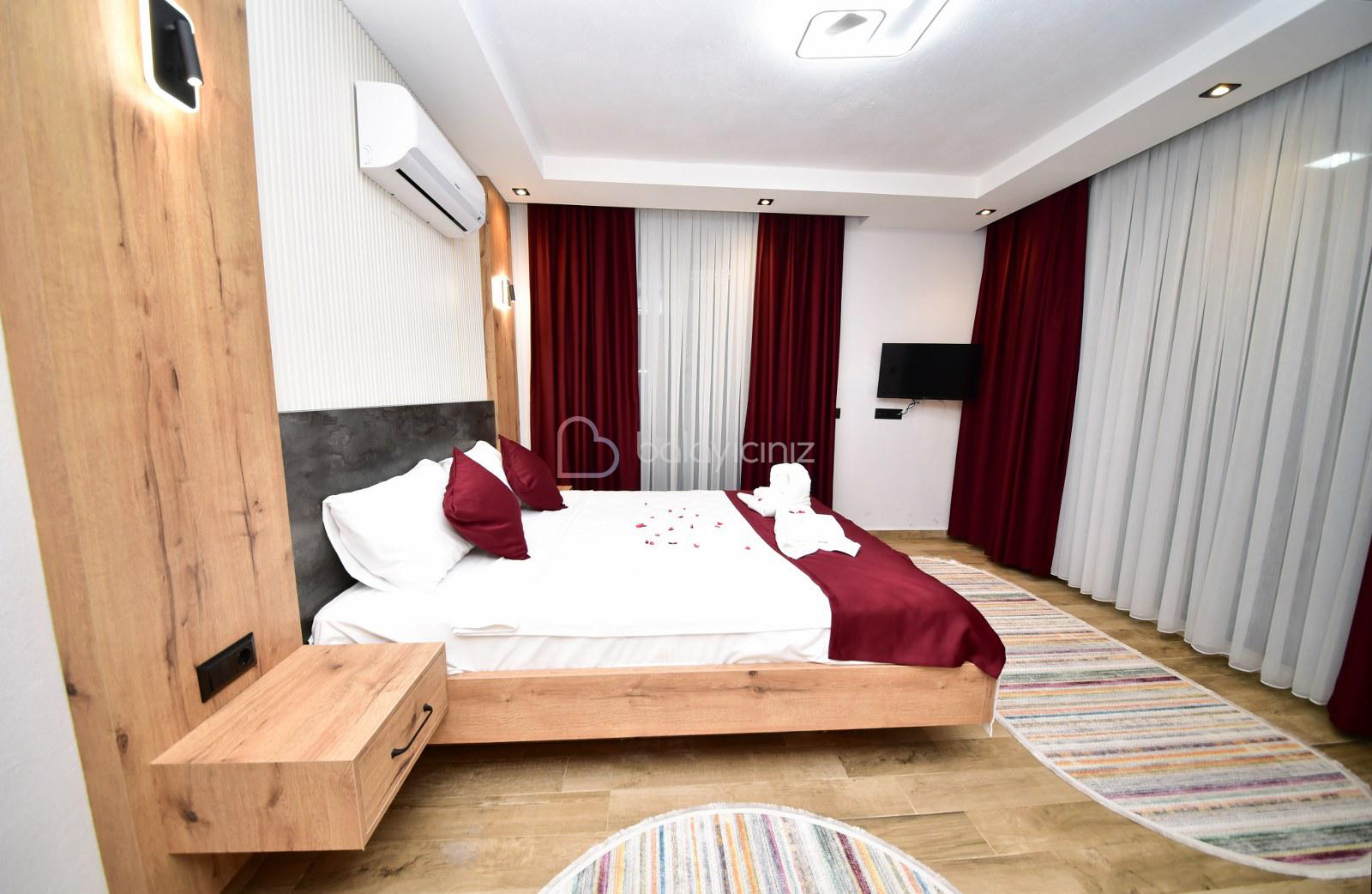 1. Yatak Odası: 1 adet çift kişilik yatak, televizyon, komodin, klima, jakuzi, makyaj masası, tuvalet ve banyo bulunmaktadır.