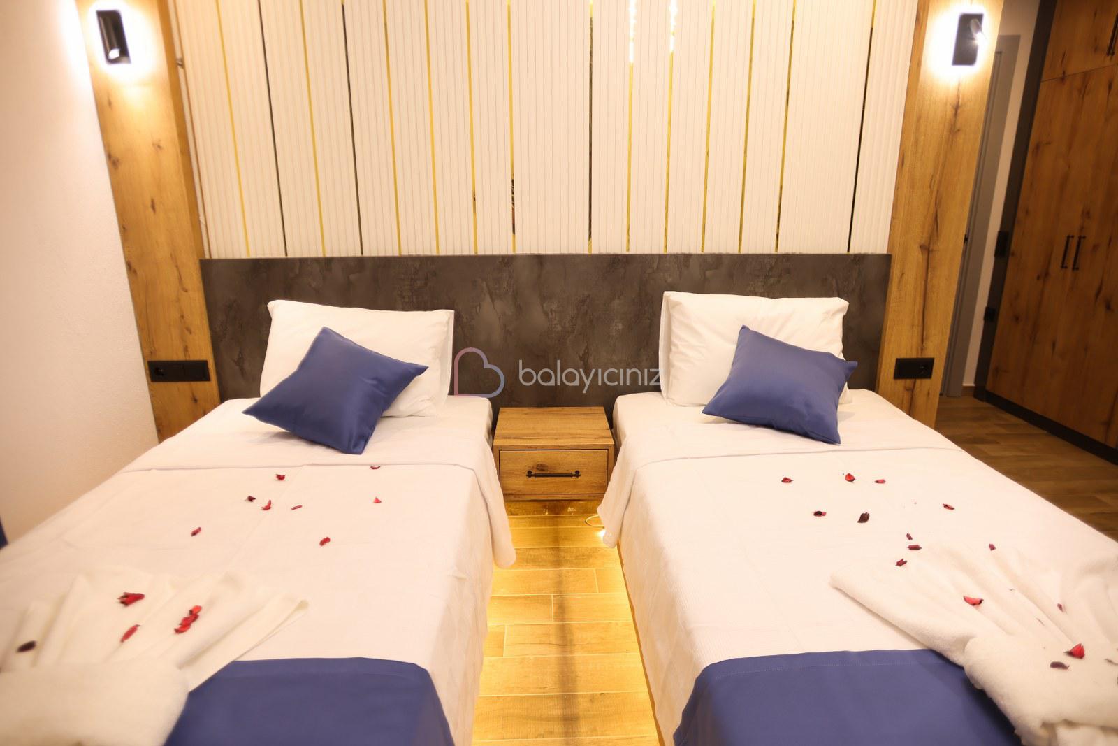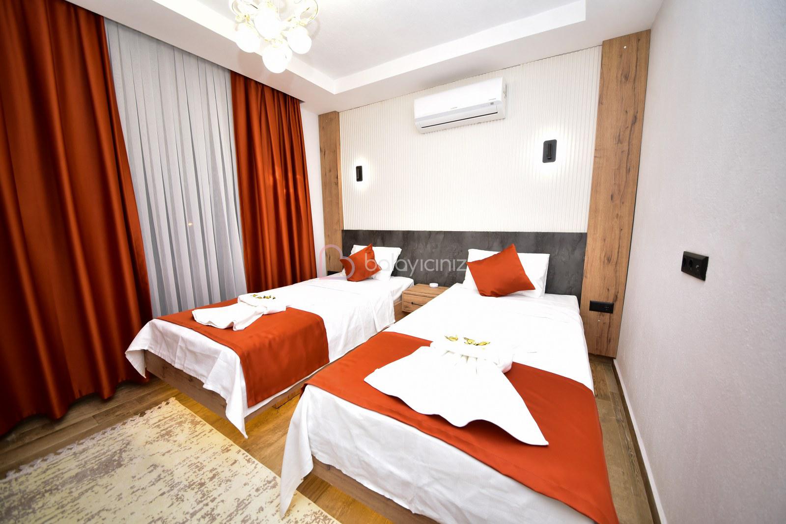 3. Yatak Odası: 2 adet tek kişilik yatak, komodin, makyaj masası, klima, tuvalet ve banyo bulunmaktadır.