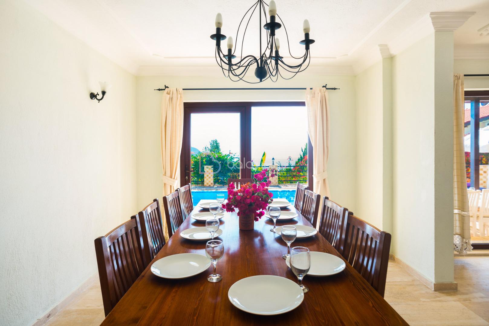Modern mutfak tarzında tasarlanmış olan geniş mutfağımızda, her türlü ihtiyatinizi karşılayacak ekipmanlarımız (tava, tencere) mevcuttur. İçerisinde bulaşık makinesi, çamaşır makinesi, buzdolabı, ankastre 4’lü ocak, fırın, ketle, ekmek kızartma makinesi, 12 kişilik yemek takımı, 10 kişilik yemek masası, çatal ve bıçak takımı, çay, kahve, su bardakları bulunmaktadır. Ayrıca havuz terasına çıkış da sağlanmaktadır.