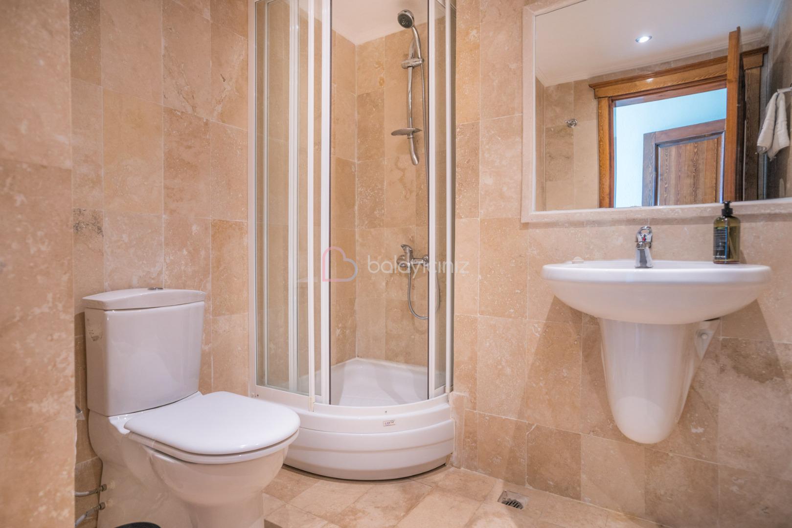 Şalomuzda oturma grubu, uydu TV, kablosuz internet, klima ve şömine, banyo/wc bulunmakta olup, havuz terasına çıkış da sağlanabilmektedir.