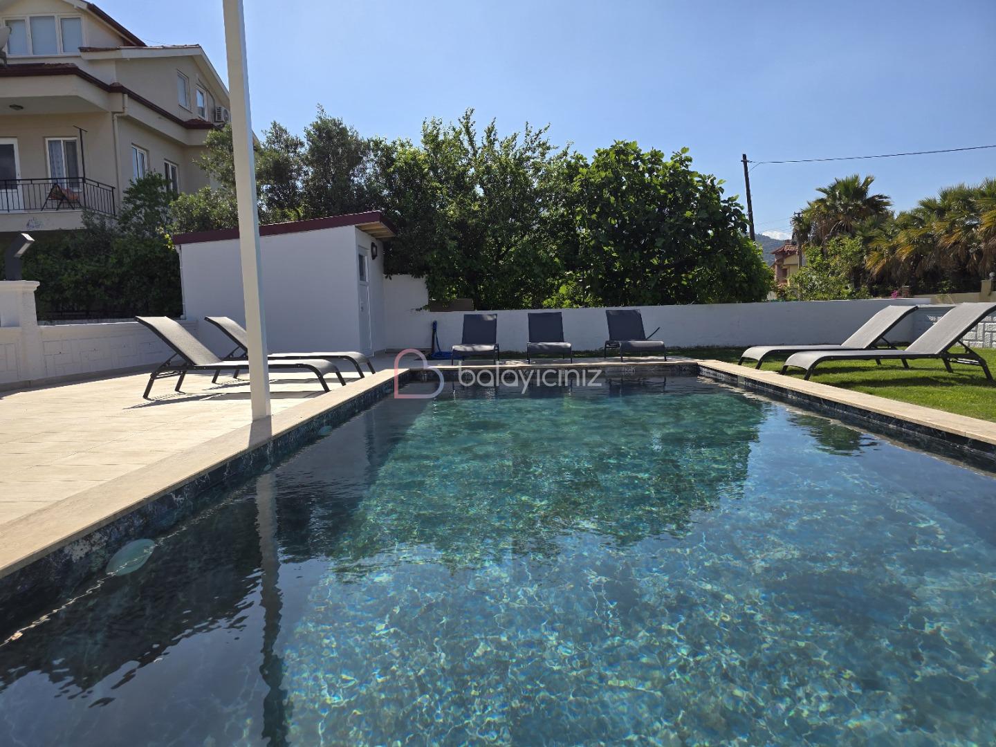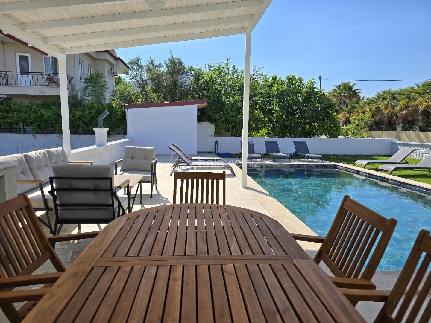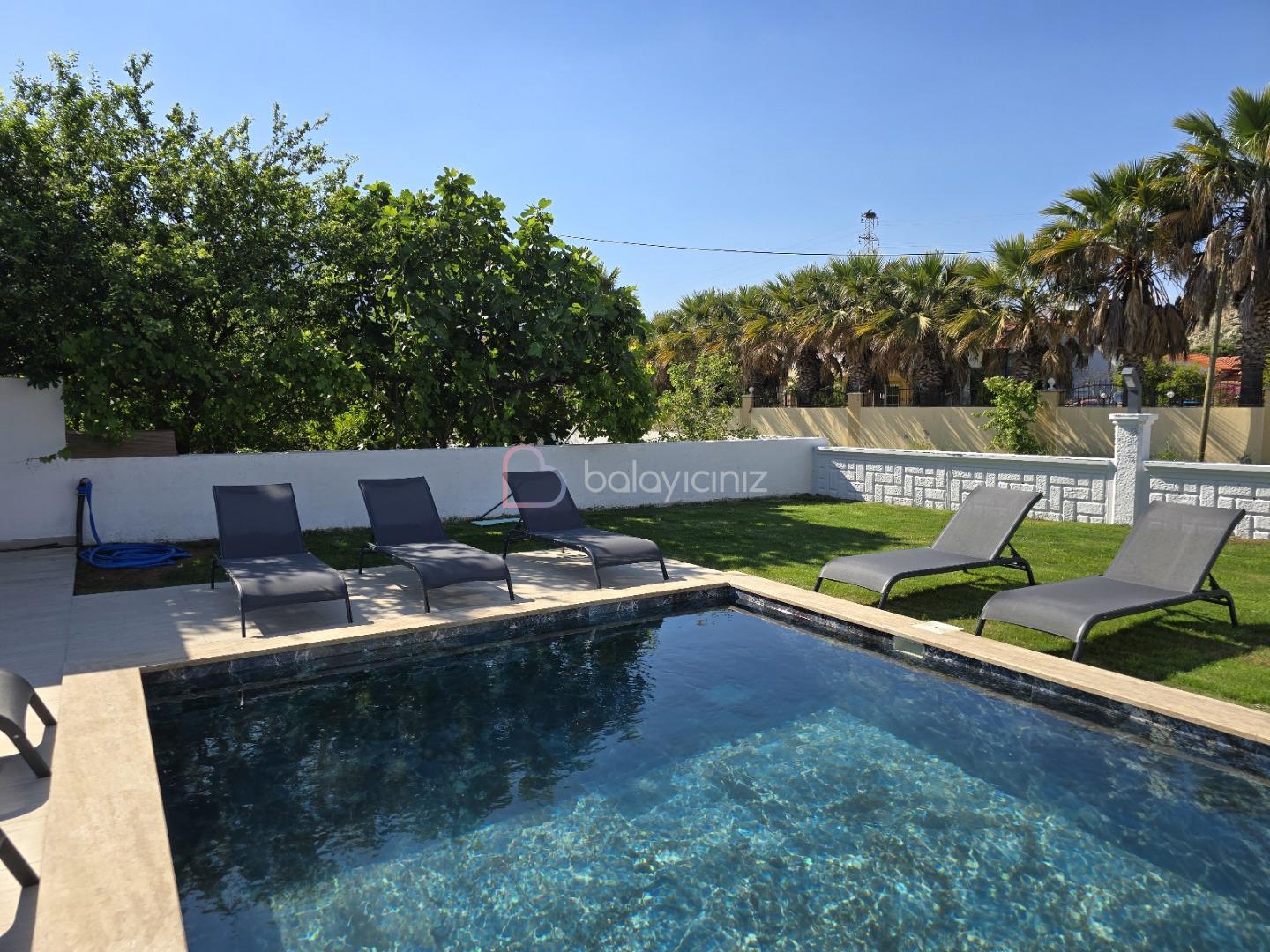 Havuz terasında özel yüzme havuzu, şezlonglar, güneş şemsiyesi, bahçe mobilyaları, mangal bulunmaktadır.