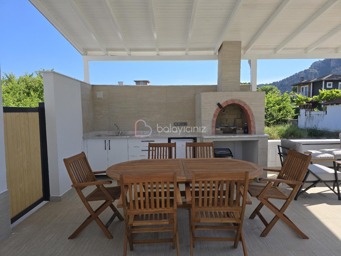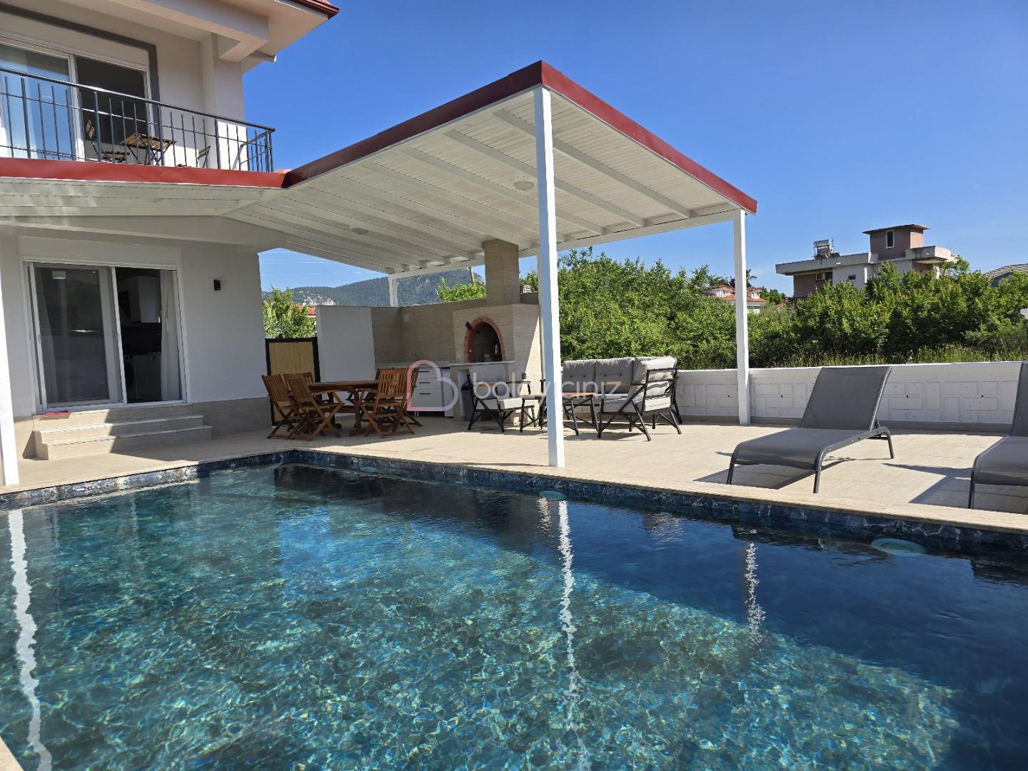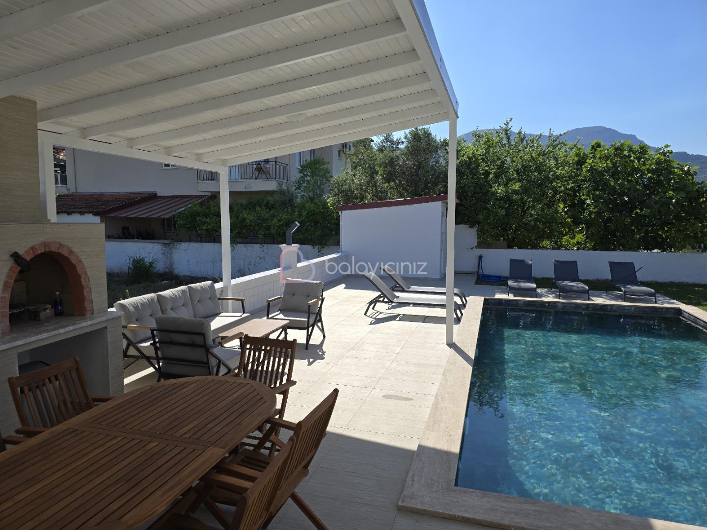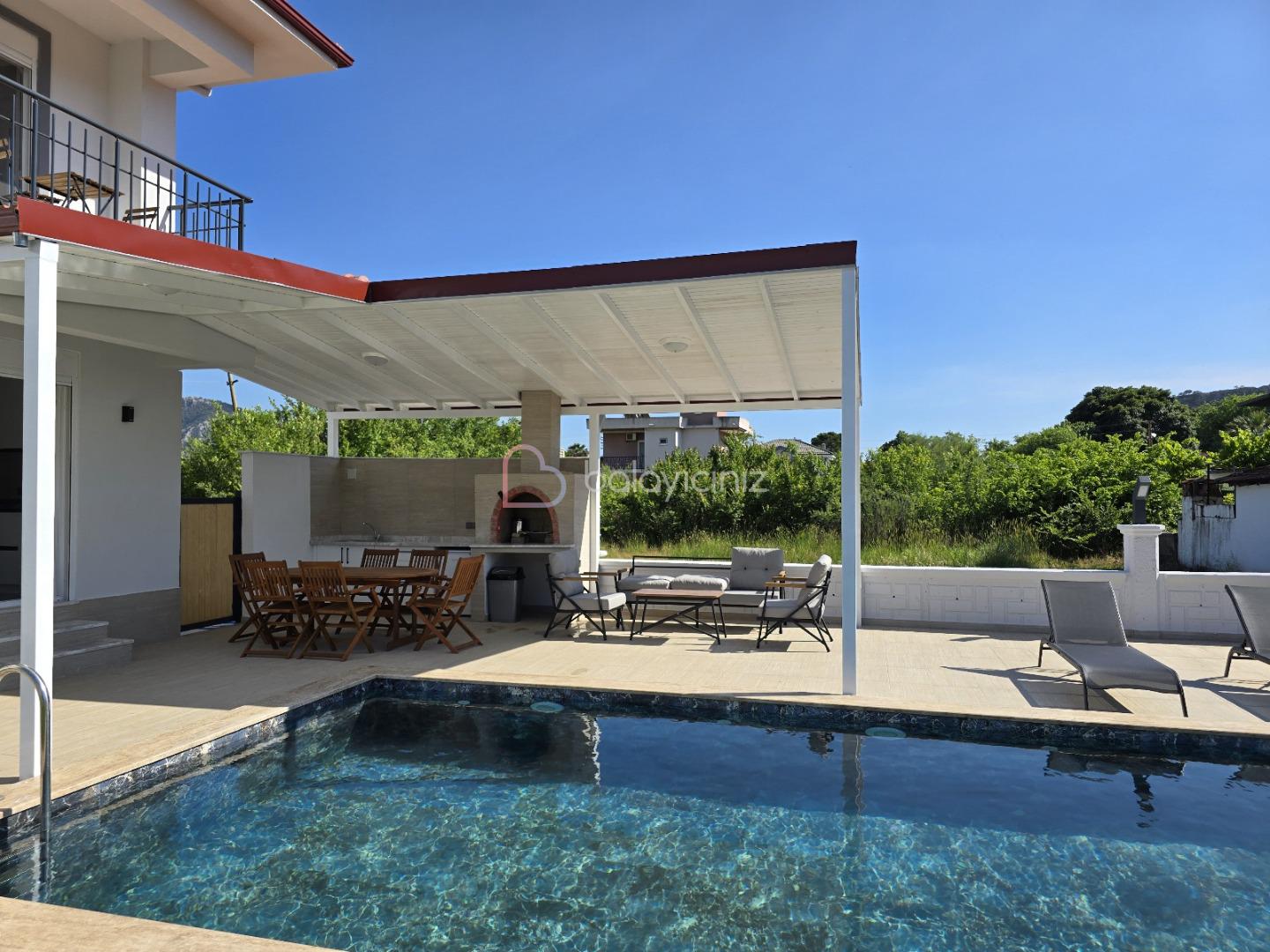 Havuz terasında özel yüzme havuzu, şezlonglar, güneş şemsiyesi, bahçe mobilyaları, mangal bulunmaktadır.