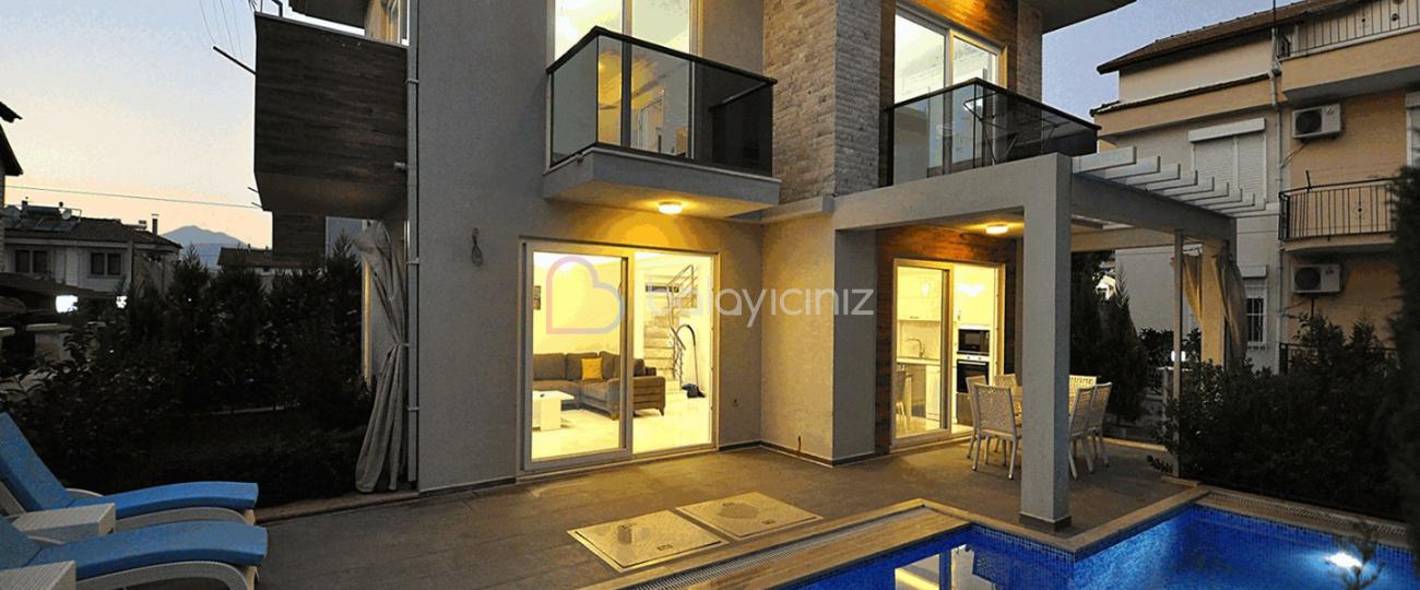 Yemek HizmetiFethiye Merkez mevkisinde konumlanan Villa Aydın, konforlu ve kaliteli bir tatil geçirmek isteyen aileler ve arkadas gruplari için oldukça ideal bir seçenektir. Doga ile iç içe konumlanan seçenegimiz, 4 yatak odali 8 kisi kapasiteli, konforlu dizayn edilen Villa Aydın' da ihtiyaciniz olan her sey mevcuttur. Eğlence ve alışverişin tadını çıkaracağız Hisarönü bölgesine araçla 5 dakika uzaklıkta, dolmuş duraklarına yürüme mesafesinde olup Ölüdeniz Plajına ise araçla 10 dakikalık sürüş meafesi uzaklığındadır. size sadece sevdiklerinizle beraber tatilin tadini çikarmak kaliyor.