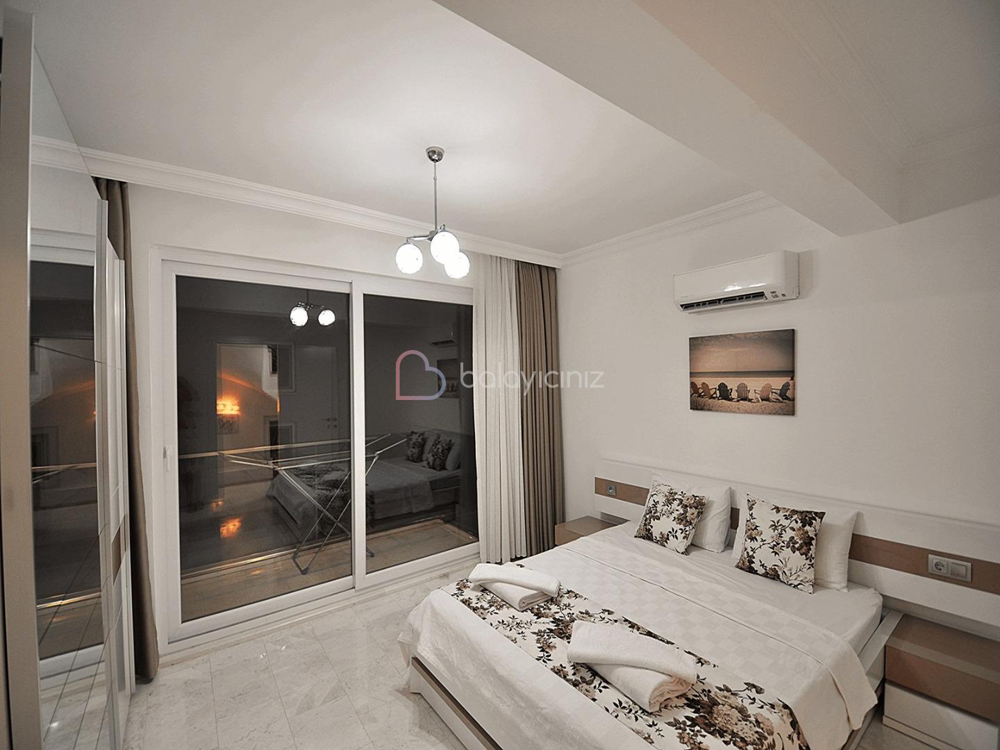 2.Yatak Odasi: 1 adet çift kisilik yatak odasi, elbise dolabi, komodin, klima, tuvalet, banyo bulunmaktadir.
