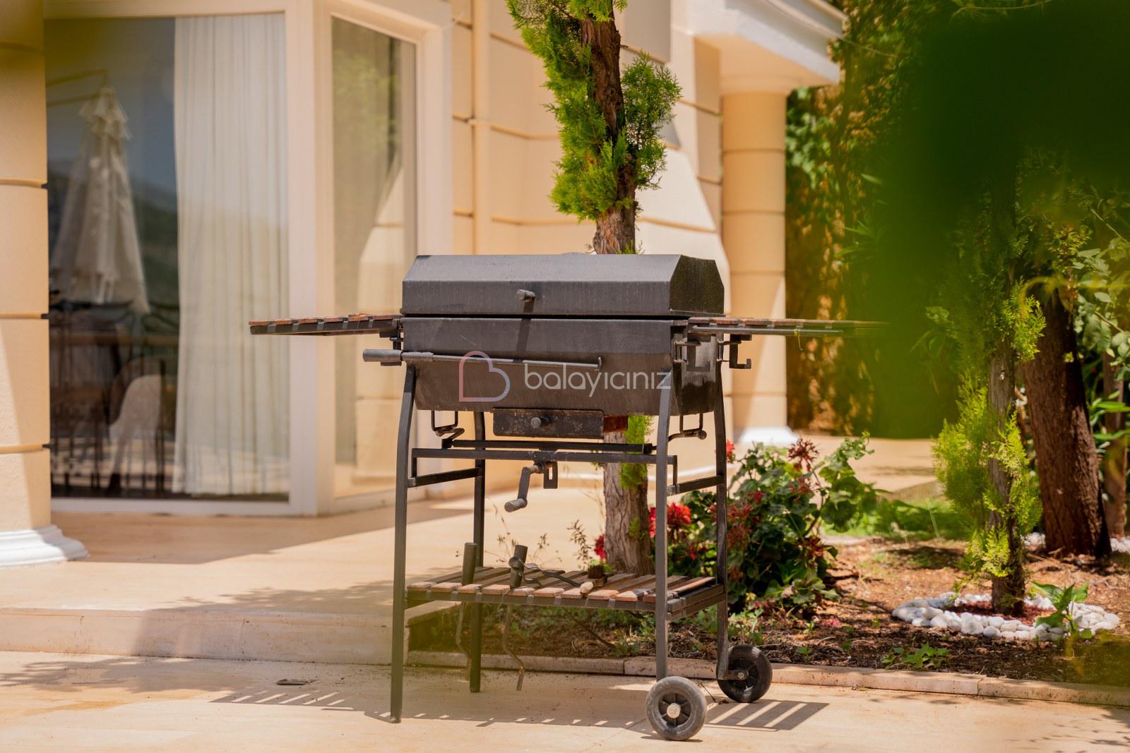 Havuz terasında özel yüzme havuzu, şezlonglar, güneş semsiyeleri,6 kişilik bahçe yemek masası, sandalyeler, bahçe salıncağı ve mangal bulunmaktadır.