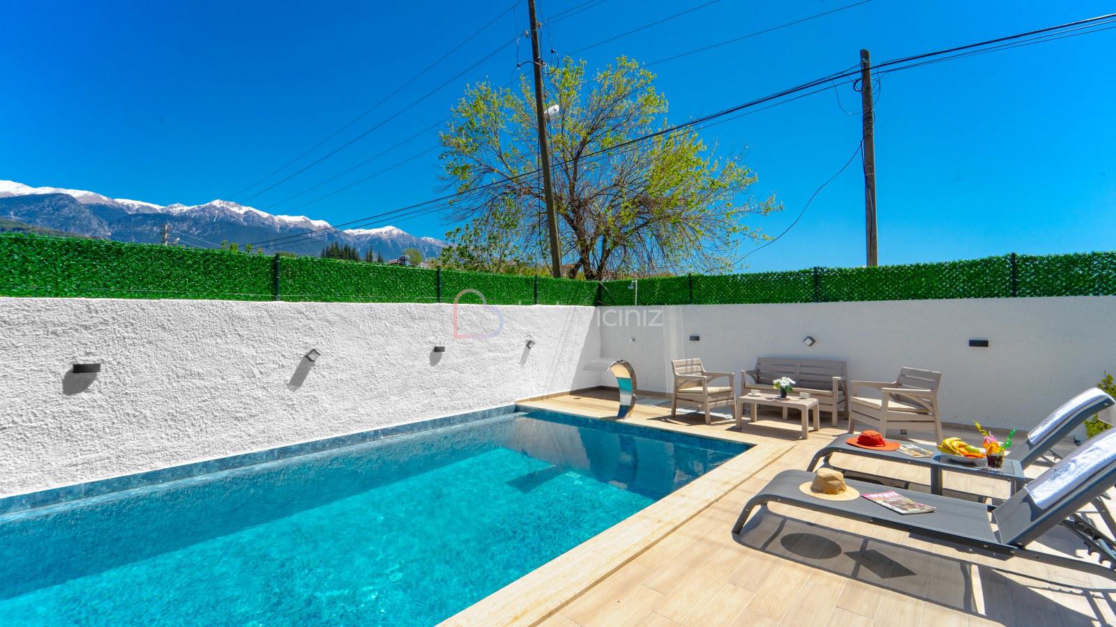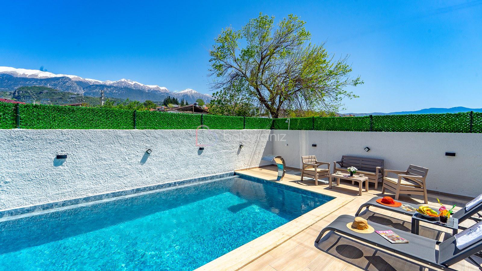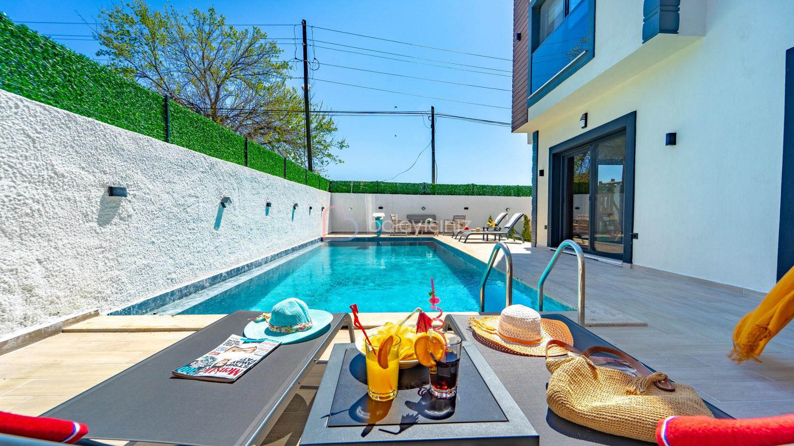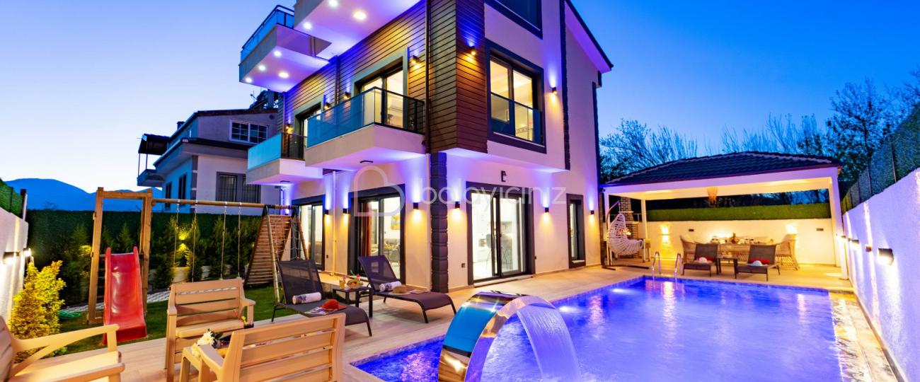 Villa Bella Döğer, Fethiye / Seydikemer bölgesinde doğa içerisinde konumlanan müstakil bahçesinde çocuk oyun alanı ve langırt bulunan muhafazakar villamızdır. Modern mimariye sahip bu villamızda 4 adet yatak odası ile 8 kişi konaklama kapasitesine sahiptir. Yemyeşil bir atmasforde geniş bahçe ve havuz alanına sahip olan Villa Bella Döğer, rahatlık ve konfor ön planda tutularak dizayn edilmiştir. Ferah salonlu ile tam donanımlı mutfağı ile ihtiyacınız olan her şey düşünülmüştür. Geniş aileler, kalabalık arkadaş grupları için ideal bir seçenek olup sizlere sadece unutulmaz bir tatilin tadını çıkarmak kalıyor.