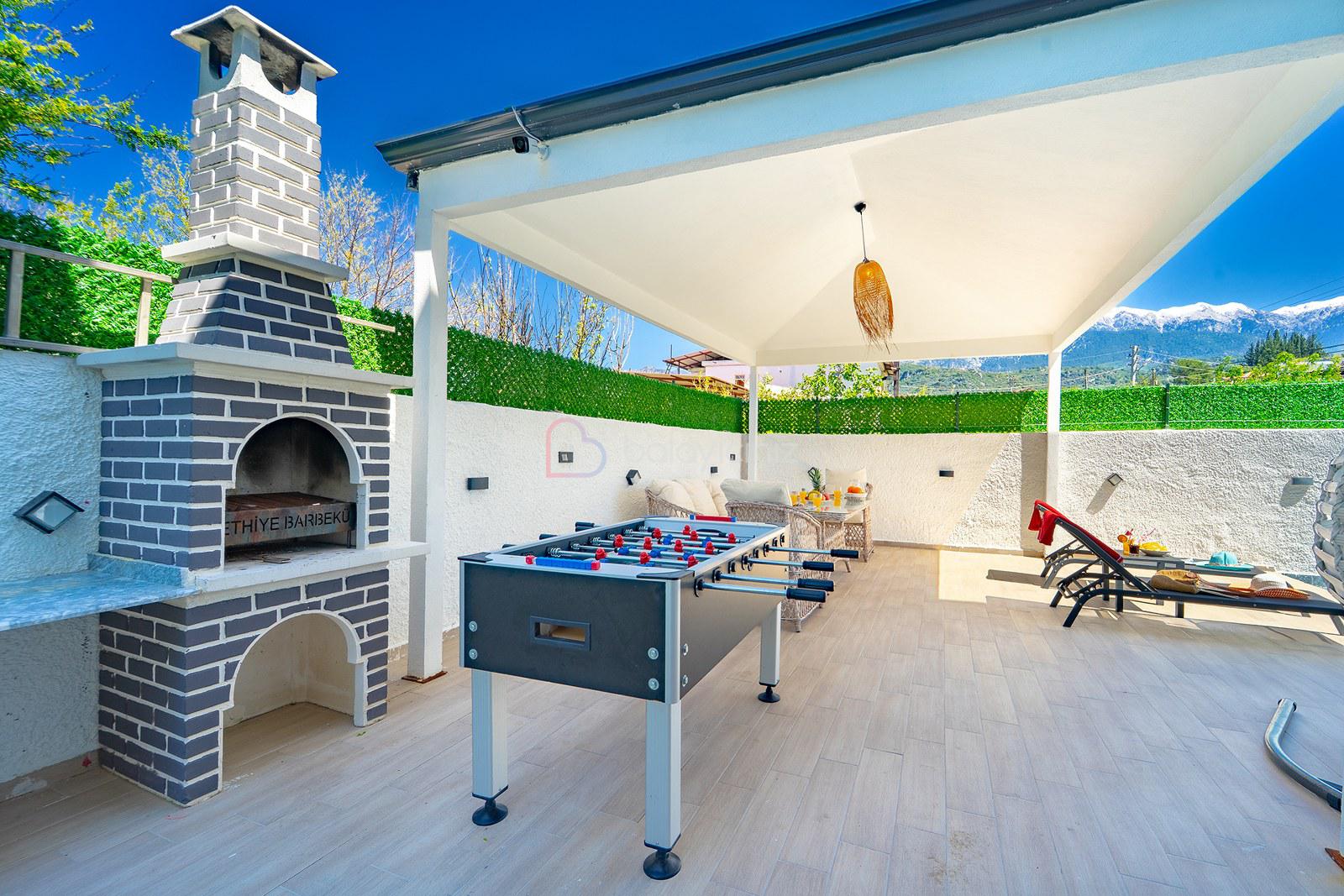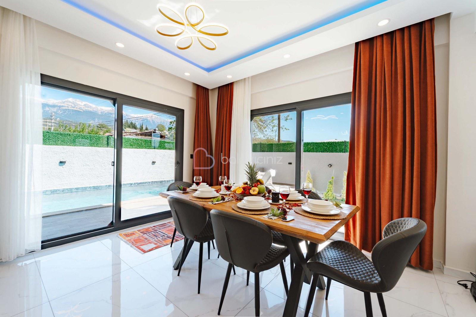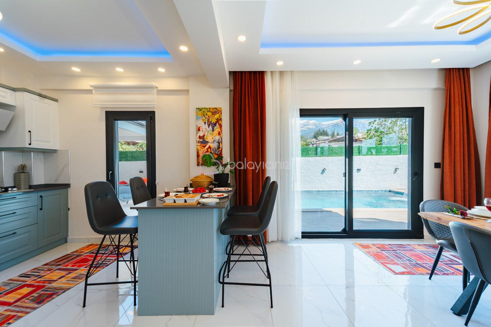 Villa Bella Döğer, Fethiye / Seydikemer bölgesinde doğa içerisinde konumlanan müstakil bahçesinde çocuk oyun alanı ve langırt bulunan muhafazakar villamızdır. Modern mimariye sahip bu villamızda 4 adet yatak odası ile 8 kişi konaklama kapasitesine sahiptir. Yemyeşil bir atmasforde geniş bahçe ve havuz alanına sahip olan Villa Bella Döğer, rahatlık ve konfor ön planda tutularak dizayn edilmiştir. Ferah salonlu ile tam donanımlı mutfağı ile ihtiyacınız olan her şey düşünülmüştür. Geniş aileler, kalabalık arkadaş grupları için ideal bir seçenek olup sizlere sadece unutulmaz bir tatilin tadını çıkarmak kalıyor.