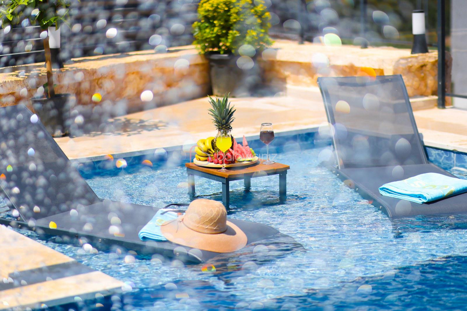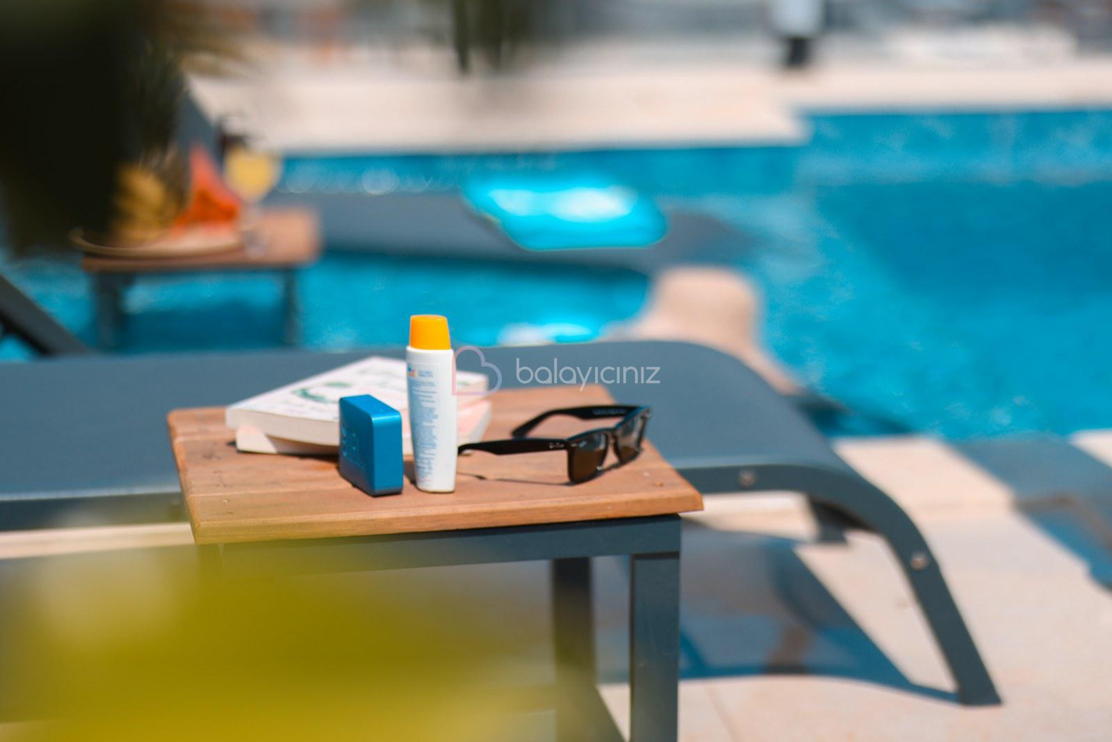 Oturma grubu, uydu alıcı, televizyon, klima, ütü ve ütü masası, elektrik süpürgesi, havuza çıkış bulunmaktadır.
