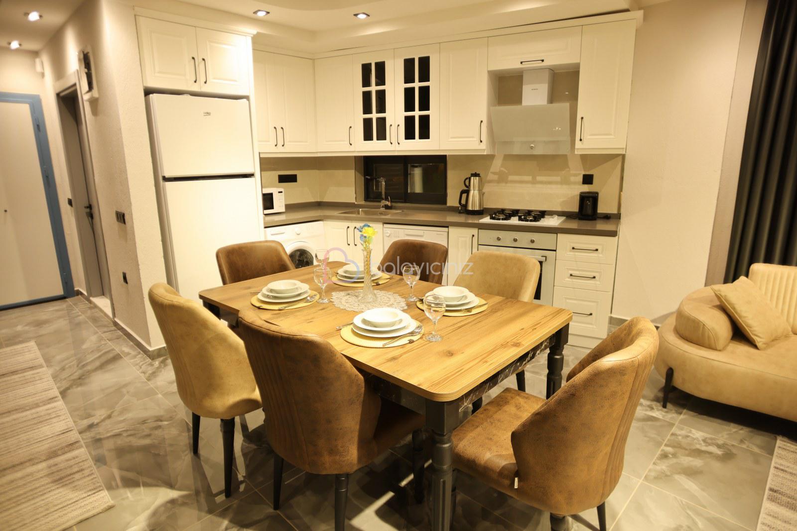 Modern Amerikan mutfak, buzdolabı, bulaşık makinesi, çamaşır makinesi, ankastre fırın, mikrodalga fırın, ankastre 4’lü ocak, elektrikli su ısıtıcısı (kettle), 4 kişilik yemek takımı, çeşitli mutfak araç gereçleri bulunmaktadır.
