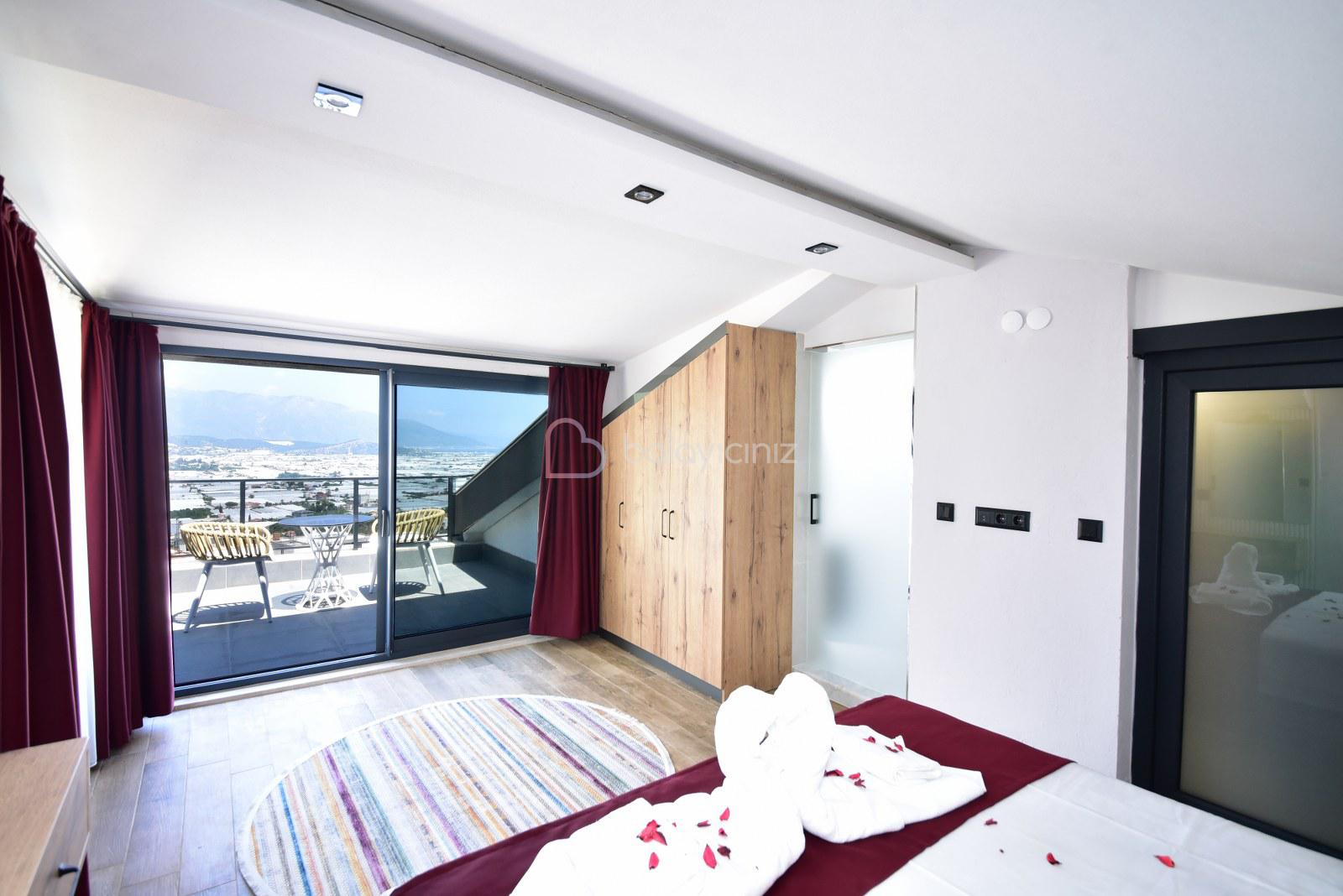 2. Yatak Odası: 1 adet çift kişilik yatak, komodin, makyaj masası, klima, tuvalet ve banyo bulunmaktadır.