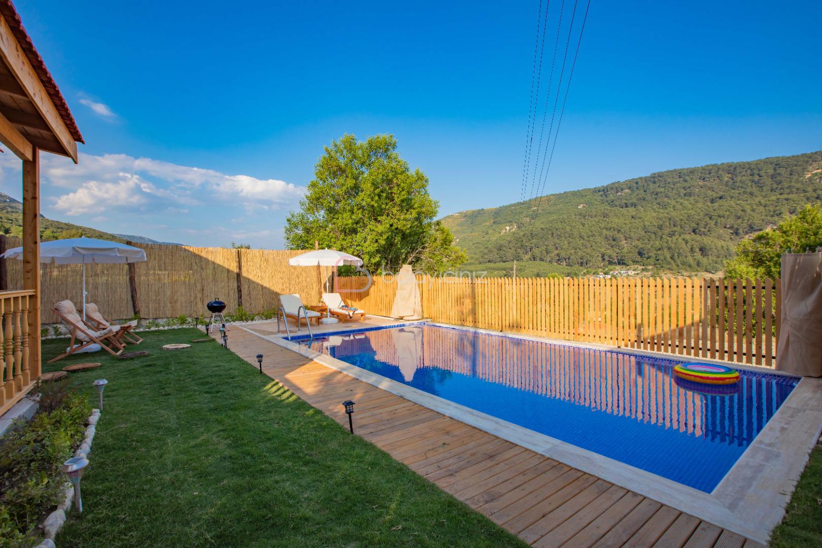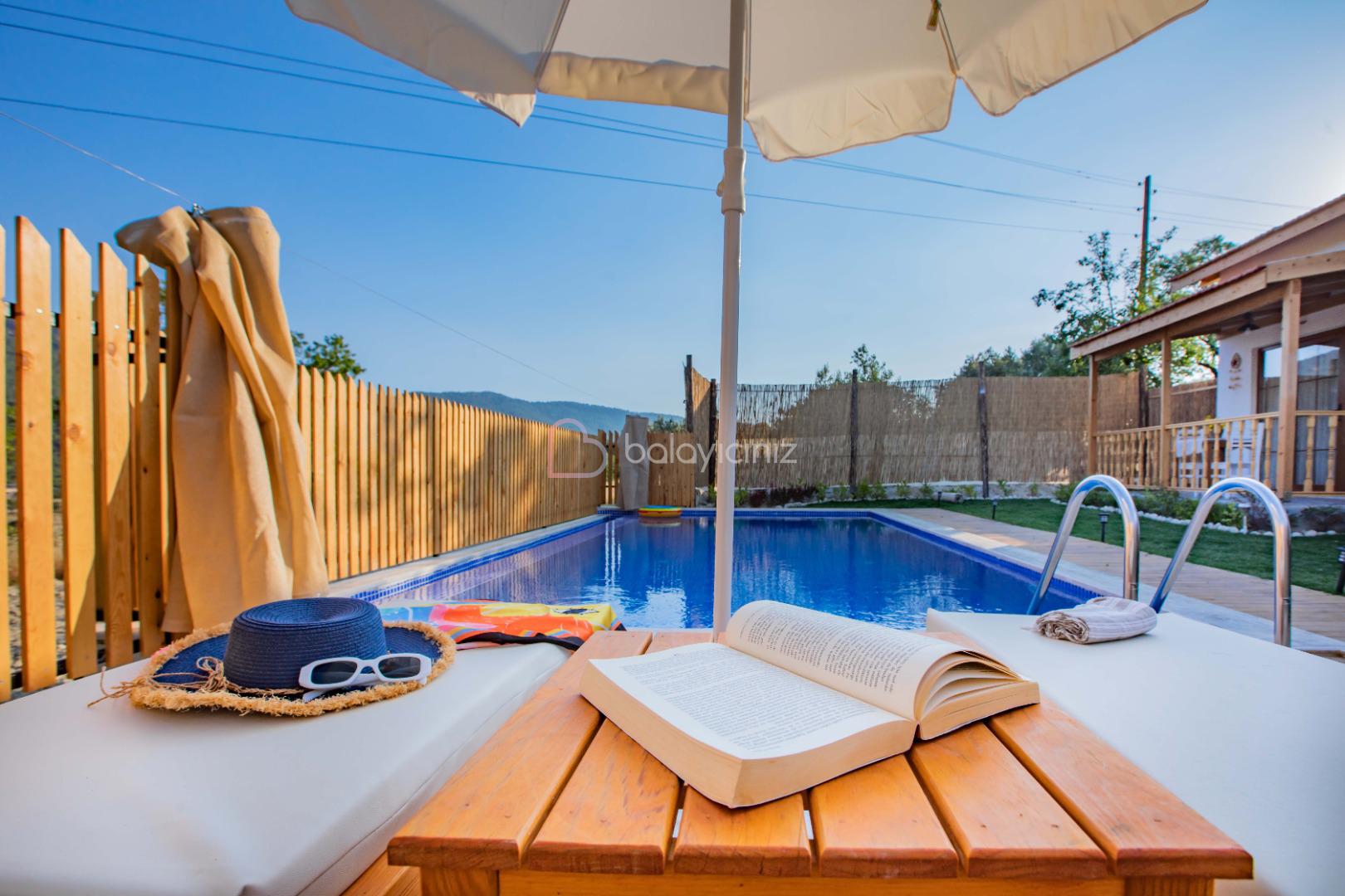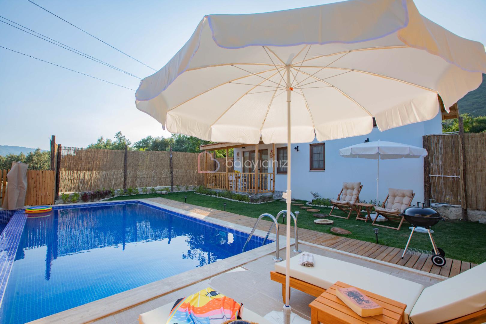 Terasında özel yüzme havuzu, şezlonglar, güneş şemsiyeleri, masa ve sandalyeler, mangal bulunmaktadır.