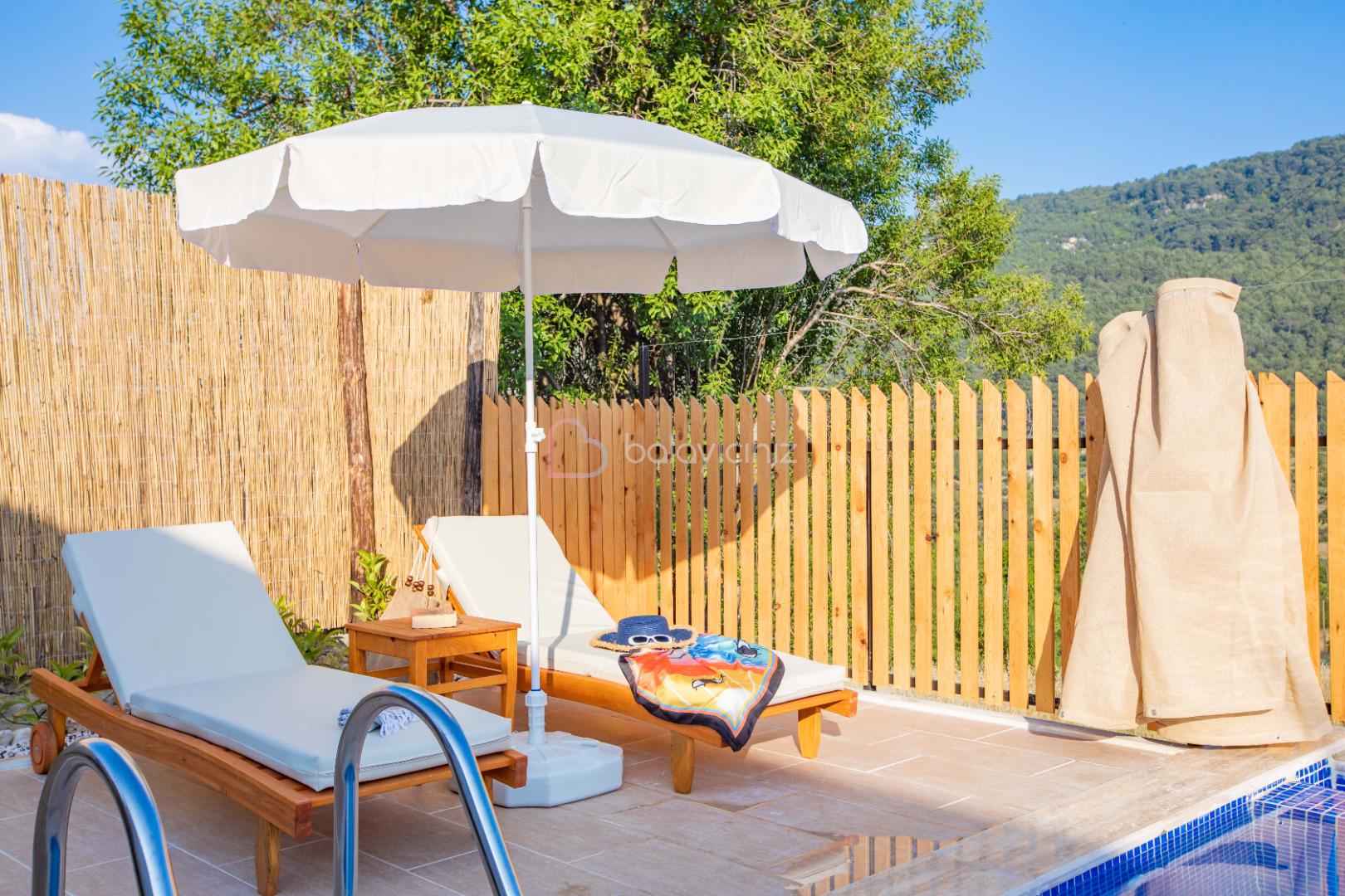 Kalkan, Sarıbelen bölgesinde konumda bulunan jakuzili, özel yüzme alanına sahip villamızın havuz ve havuz alanı korunaklıdır. Villa Bertuğ, muhafazakar aileler ve balayı çiftleri için özenle dekore edilmiştir. Villamızda tek yatak odası ve jakuzi bulunup 2 kişilik konaklamaya müsaittir. Sessiz sakin ve korunaklı yapısıyla siz değerli misafirlerimize gözlerden uzak doğa içerisinde tatil imkanı sunmaktadır.bohem iç ve dış tasarımı ile oldukça dikkat çeken villalarımızdandır.