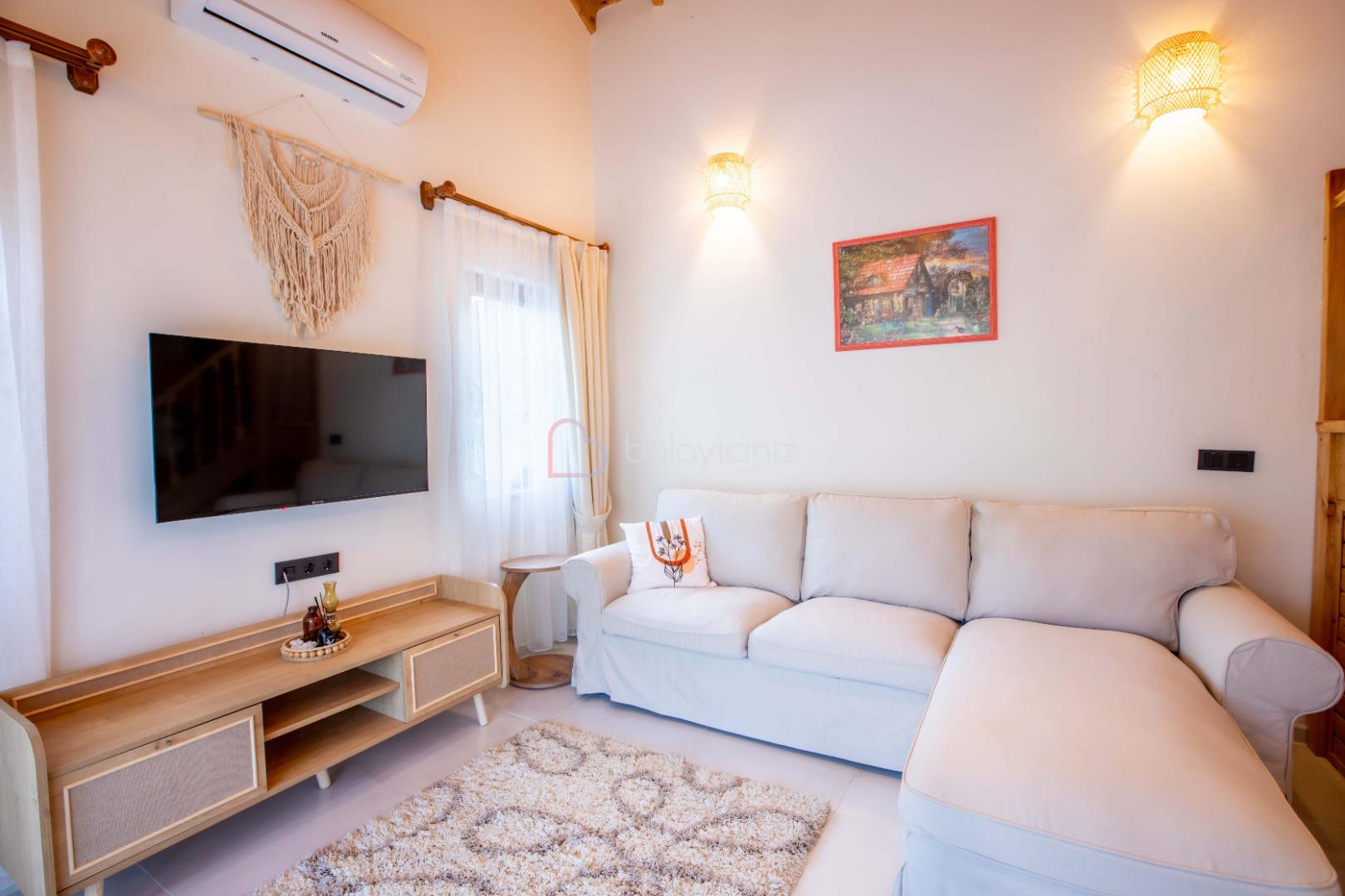 Oturma grubu, klima, televizyon, orta sehpa, uydu alıcı, internet bulunmaktadır. Havuz terasına çıkış yapılabilmektedir.