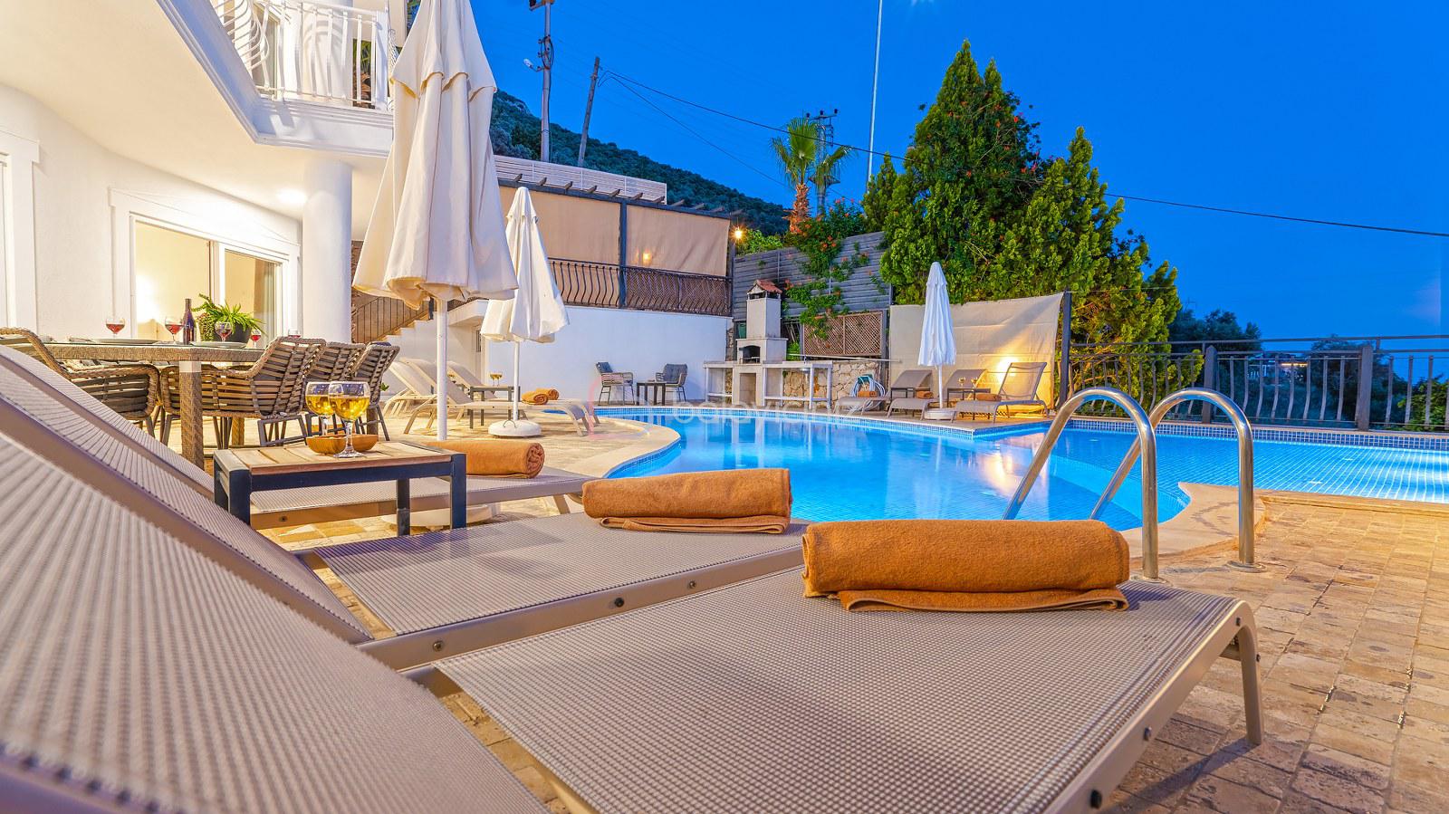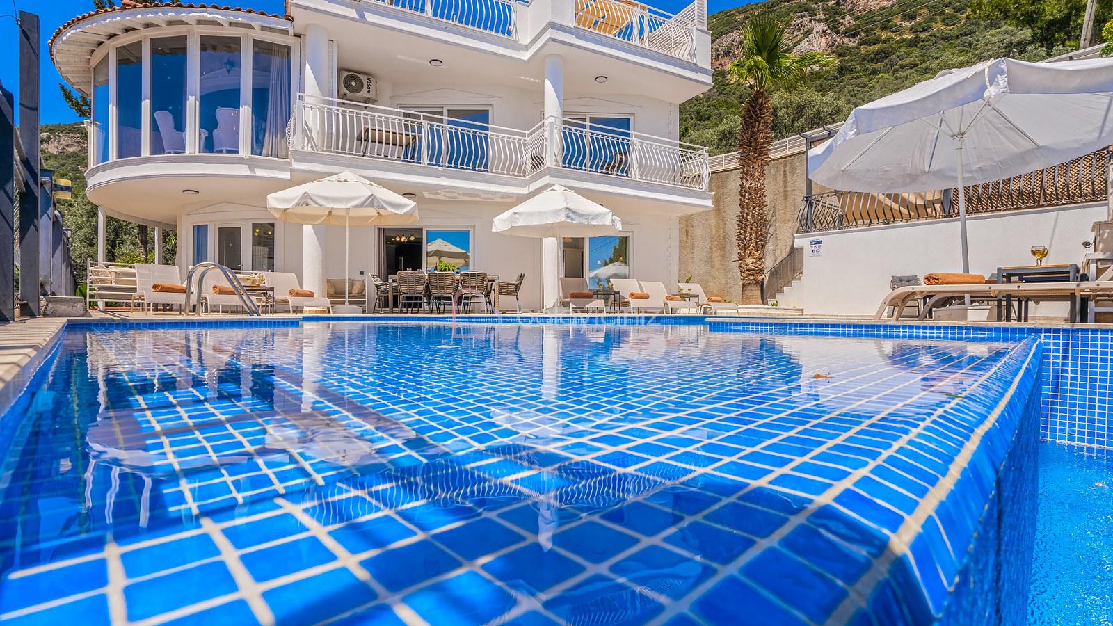 Beyaz Evi, dünyaca ünlü tatil beldesi olan Antalya’nın Kalkan beldesinin Kızıltaş mevkiin de bulunmaktadır. Villa içerisinde özel bahçe ve korunaklı özel havuz yer almaktadır ve muhteşem deniz manzarasına sahiptir. Şehrin gürültü ve karmaşasından uzakta doğa içerisinde sakin bir tatil imkân sunmaktadır. Villa Beyaz içerisinde tüm ev dekorasyon eşyaları yer almaktadır. Master süit odamızda yuvarlak yatak, ısıtmalı kapalı havuz, jakuzi mevcuttur. Villa Beyaz Kalkanın en güzel deniz ve Kalkan manzarası olan bir bölge olup muhteşem deniz manzarasına sahiptir.