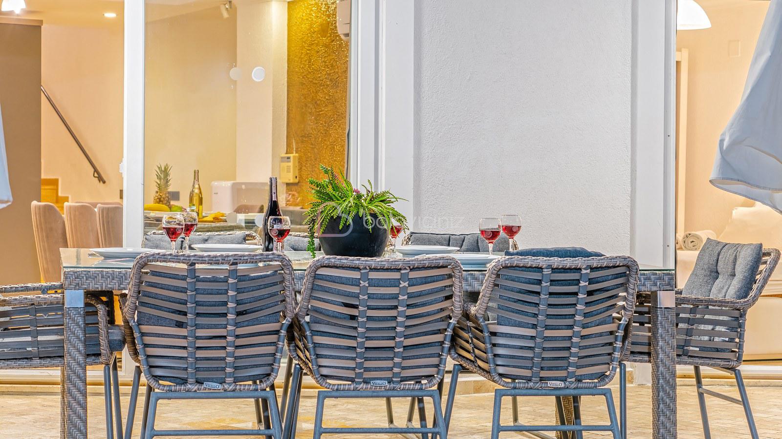 Teras içerisinde özel yüzme havuzu, şezlonglar, güneş şemsiyesi, bahçe mobilyaları, barbekü bulunmaktadır.