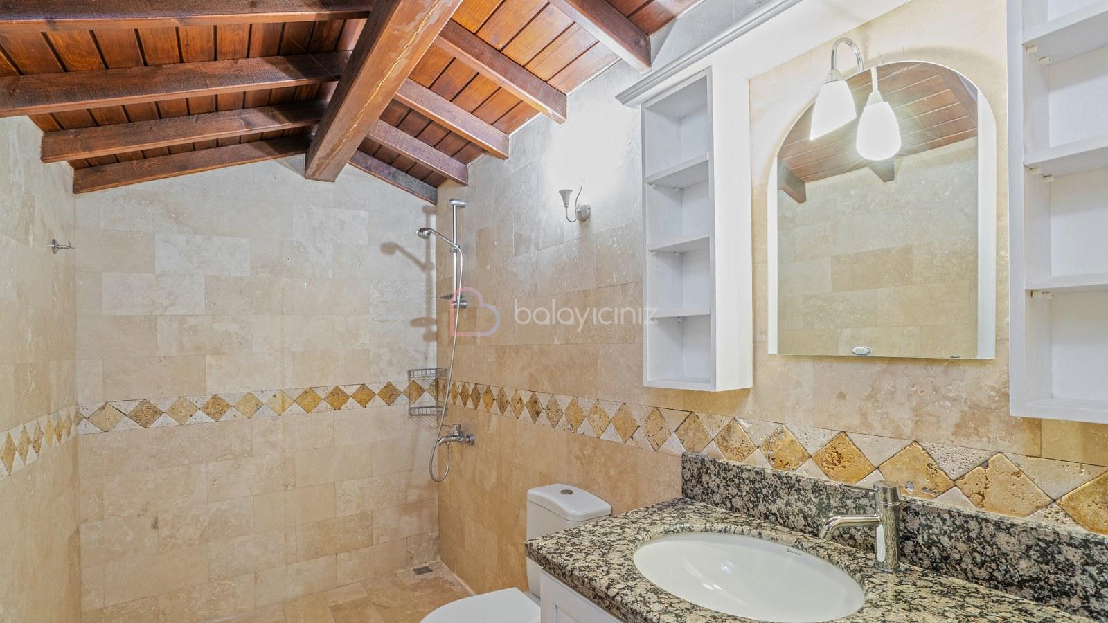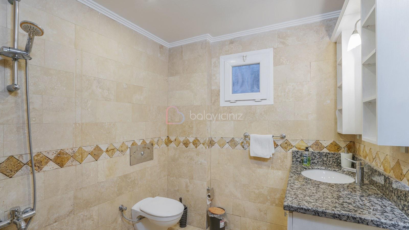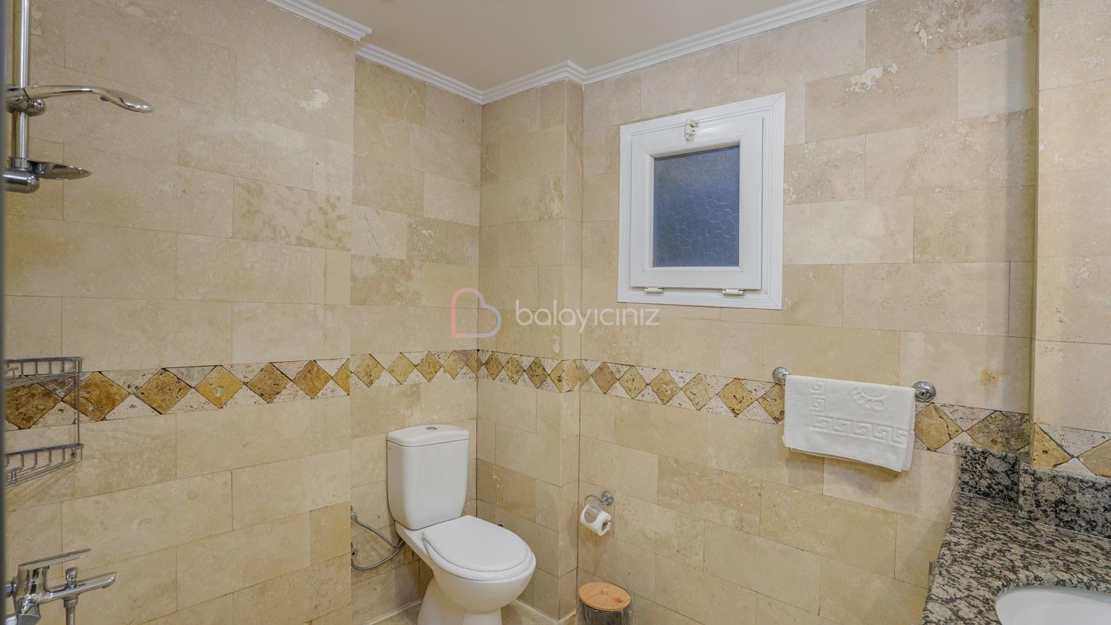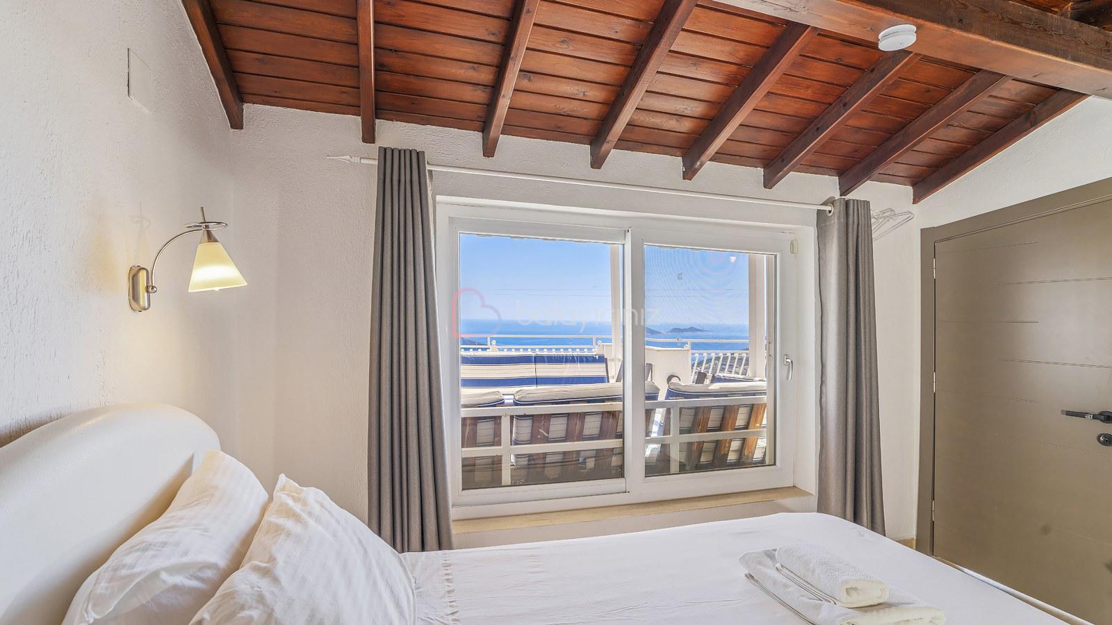3. Yatak Odası (1.Kat) : Süit oda, 2 adet tek kişilik yatak, elbise dolabı, komodin, makyaj masası, klima, banyo, saç kurutma makinesi ve deniz manzarasına sahip balkon bulunmaktadır.