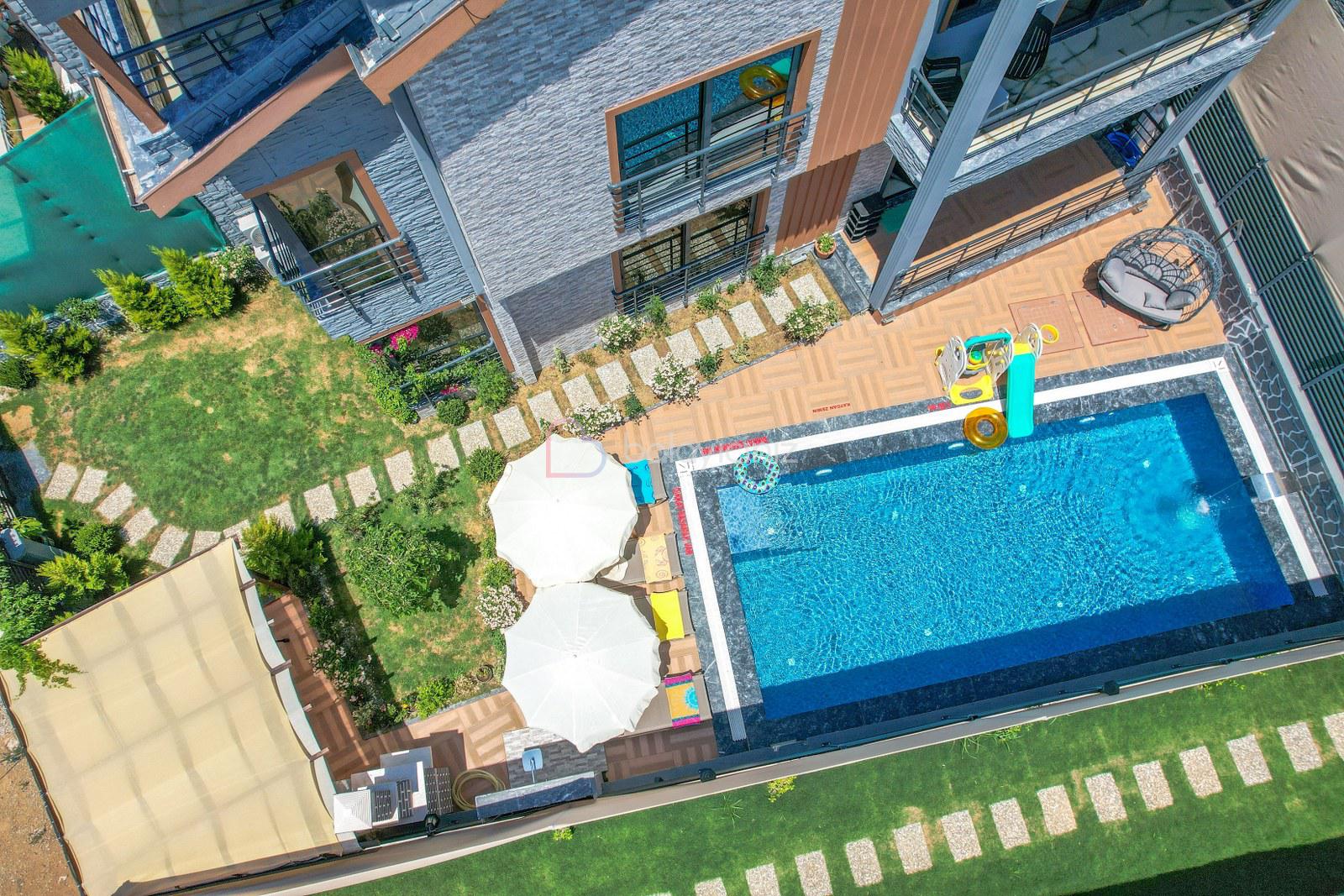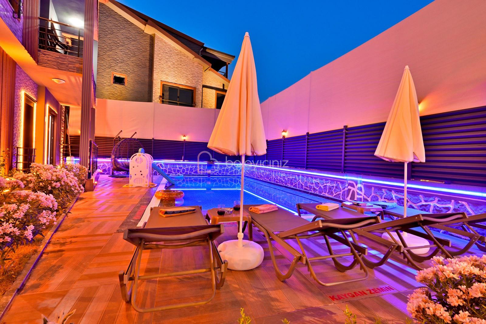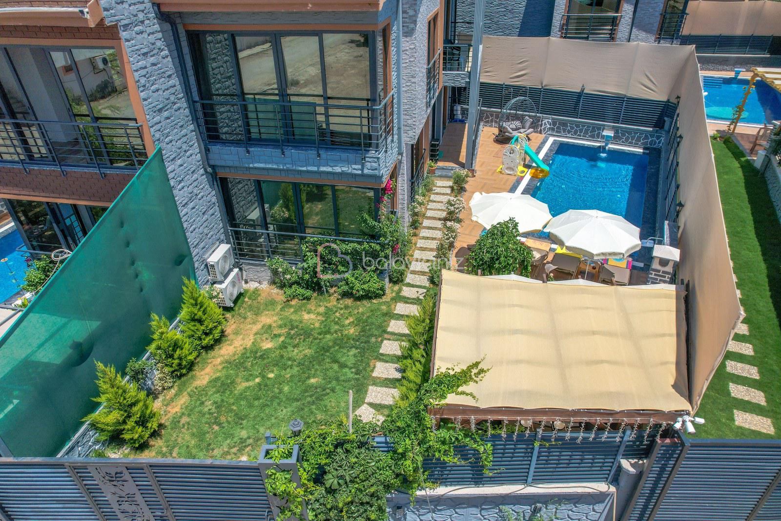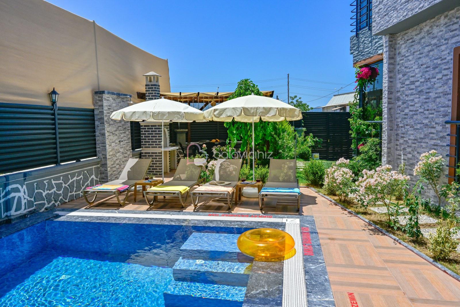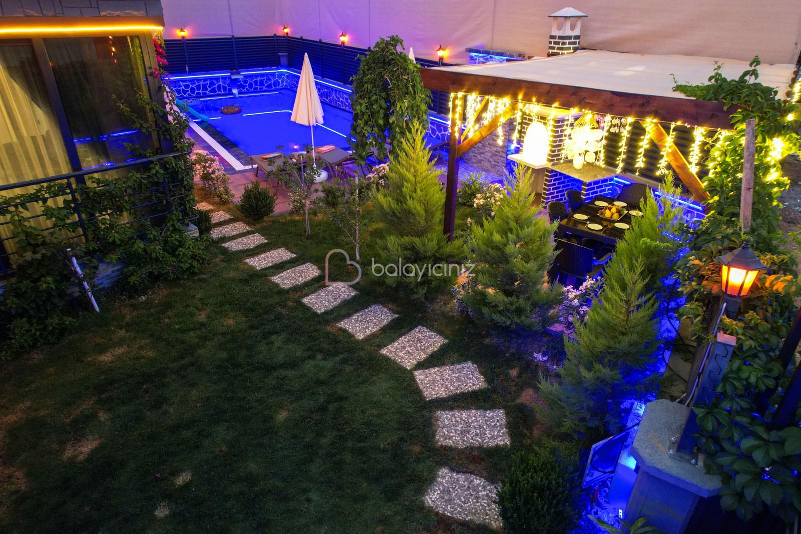 Havuz terasında özel yüzme havuzu, şezlonglar, güneş şemsiyesi, bahçe oturma grubu, salıncak bulunmaktadır.