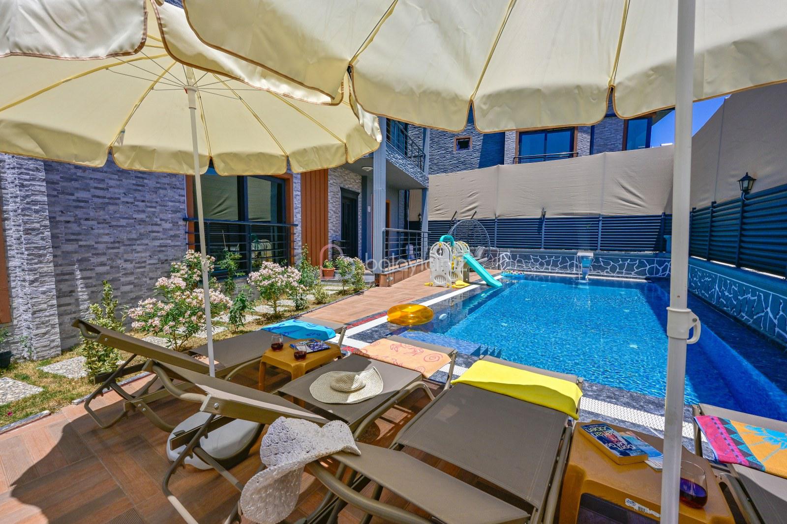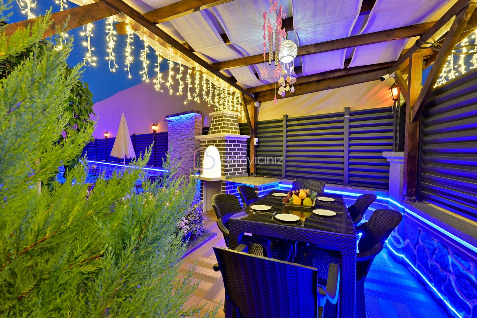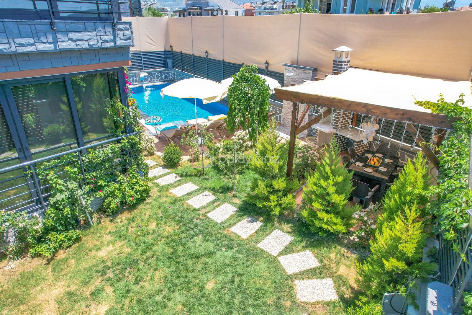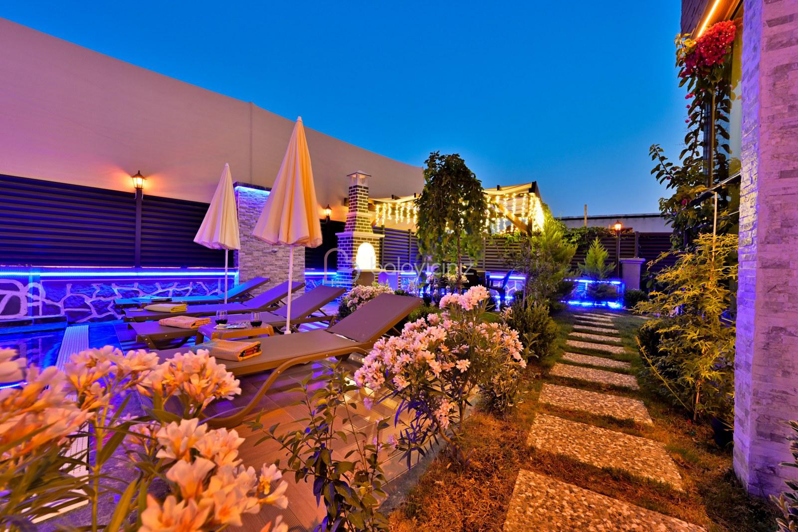 Havuz terasında özel yüzme havuzu, şezlonglar, güneş şemsiyesi, bahçe oturma grubu, salıncak bulunmaktadır.