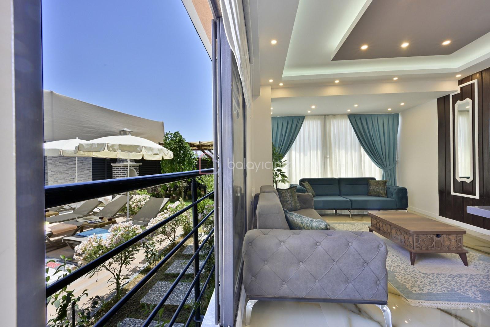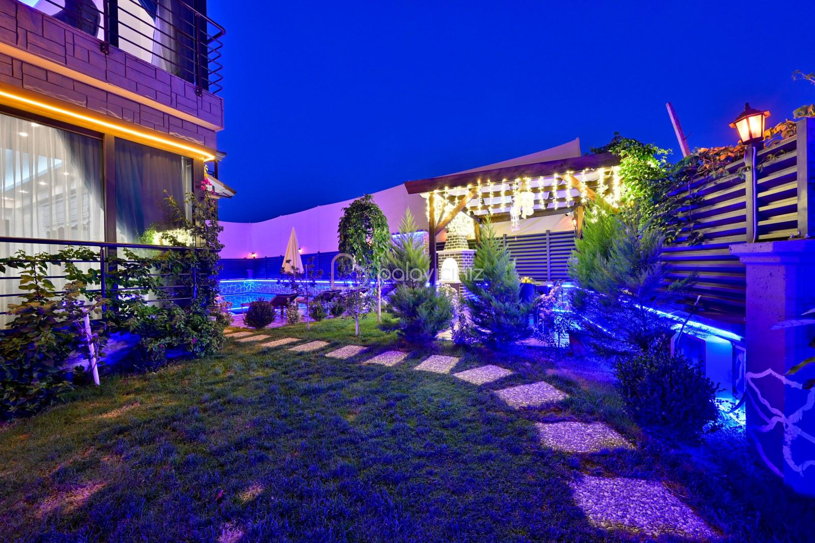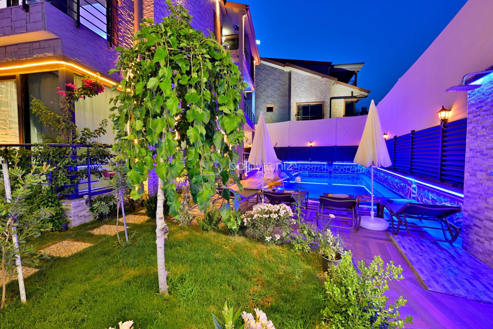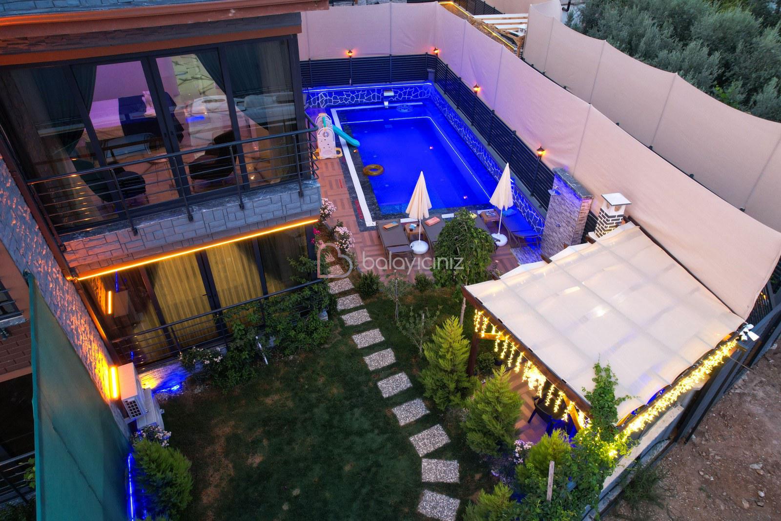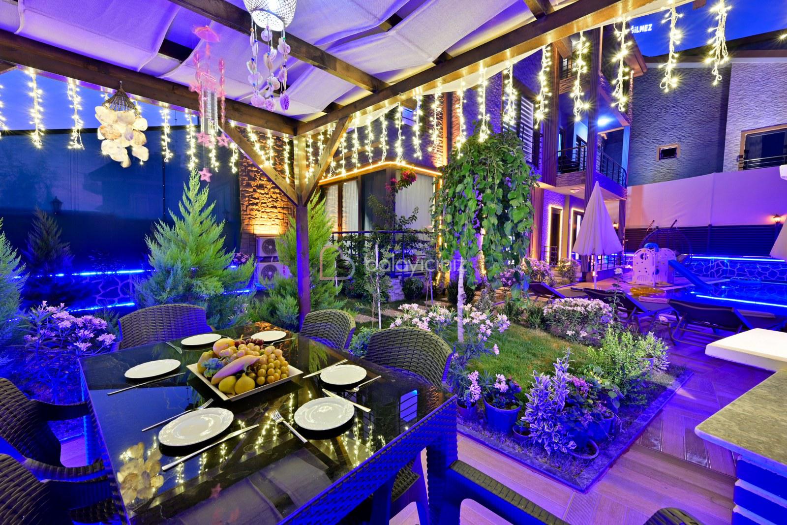 Havuz terasında özel yüzme havuzu, şezlonglar, güneş şemsiyesi, bahçe oturma grubu, salıncak bulunmaktadır.