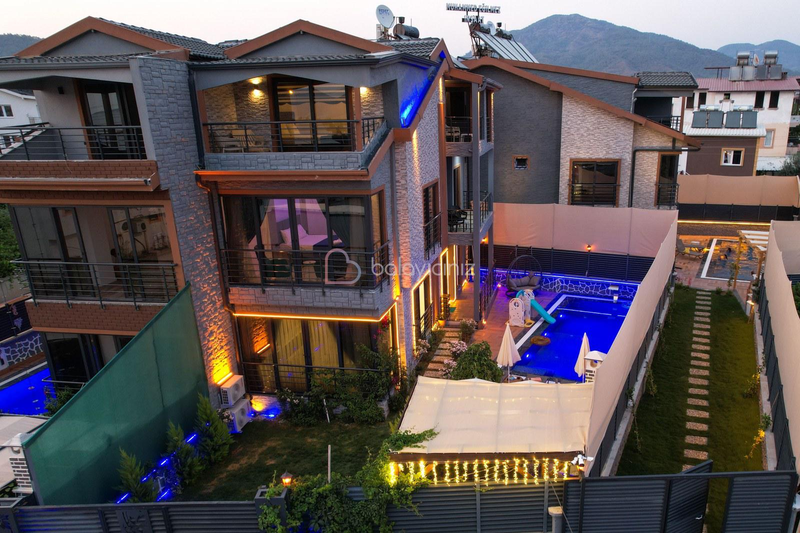 Yemek HizmetiFethiye, Çamköy bölgesinde bulunan Villa Çaylıağaoğlu, 10 kişi kapasiteli 5 yatak odalıdır. Geniş bahçe alanında yüzme havuzu, yemek masası, oturma alanı bulunmaktadır. Ayrıca villamızın 1 ebeveyn yatak odasında jakuzisi bulunmaktadır. Çekirdek aile ve geniş ailelerimizin rahatlıkla konaklama sağlayabileceği villamızda yılın yorgunluğunu atabilir, sevdikleriniz ile unutulmaz anılar biriktirebilirsiniz.