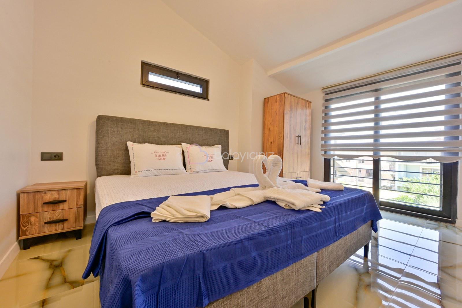3.Yatak Odası: 1 adet çift kişilik yatak, klima, elbise dolabı, banyo ve tuvalet bulunmaktadır.