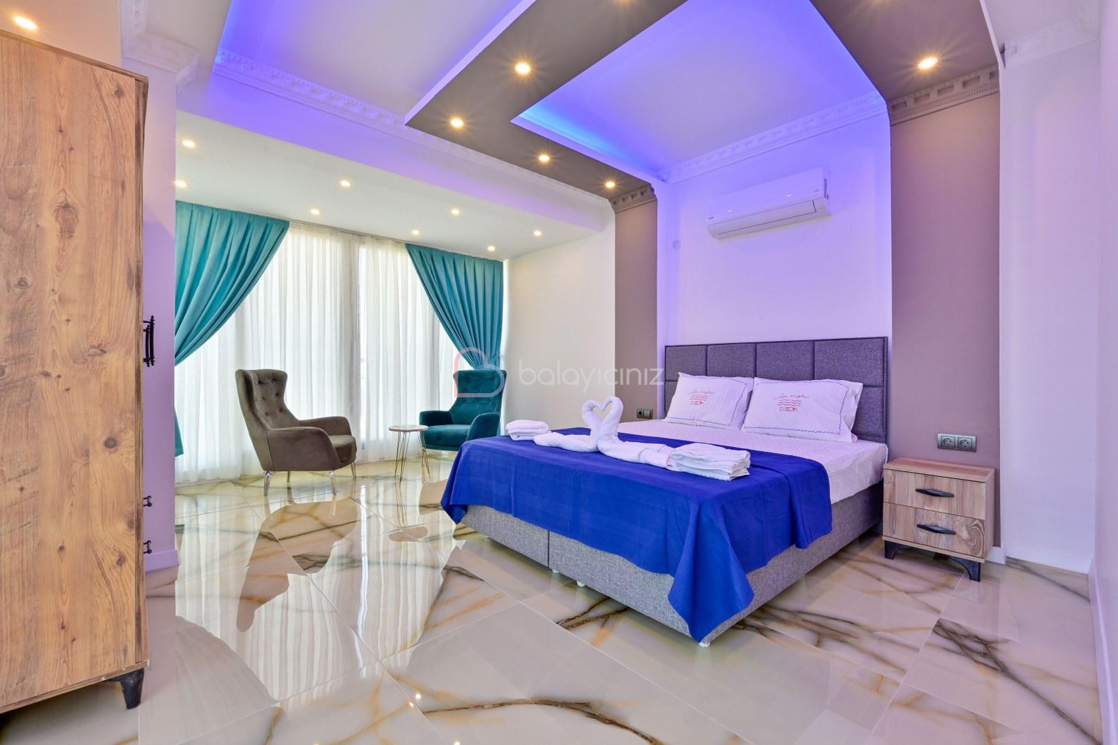 2.Yatak Odası:1 adet çift kişilik yatak,klima, makyaj masası,elbise dolabı,banyo ve tuvalet bulunmaktadır.