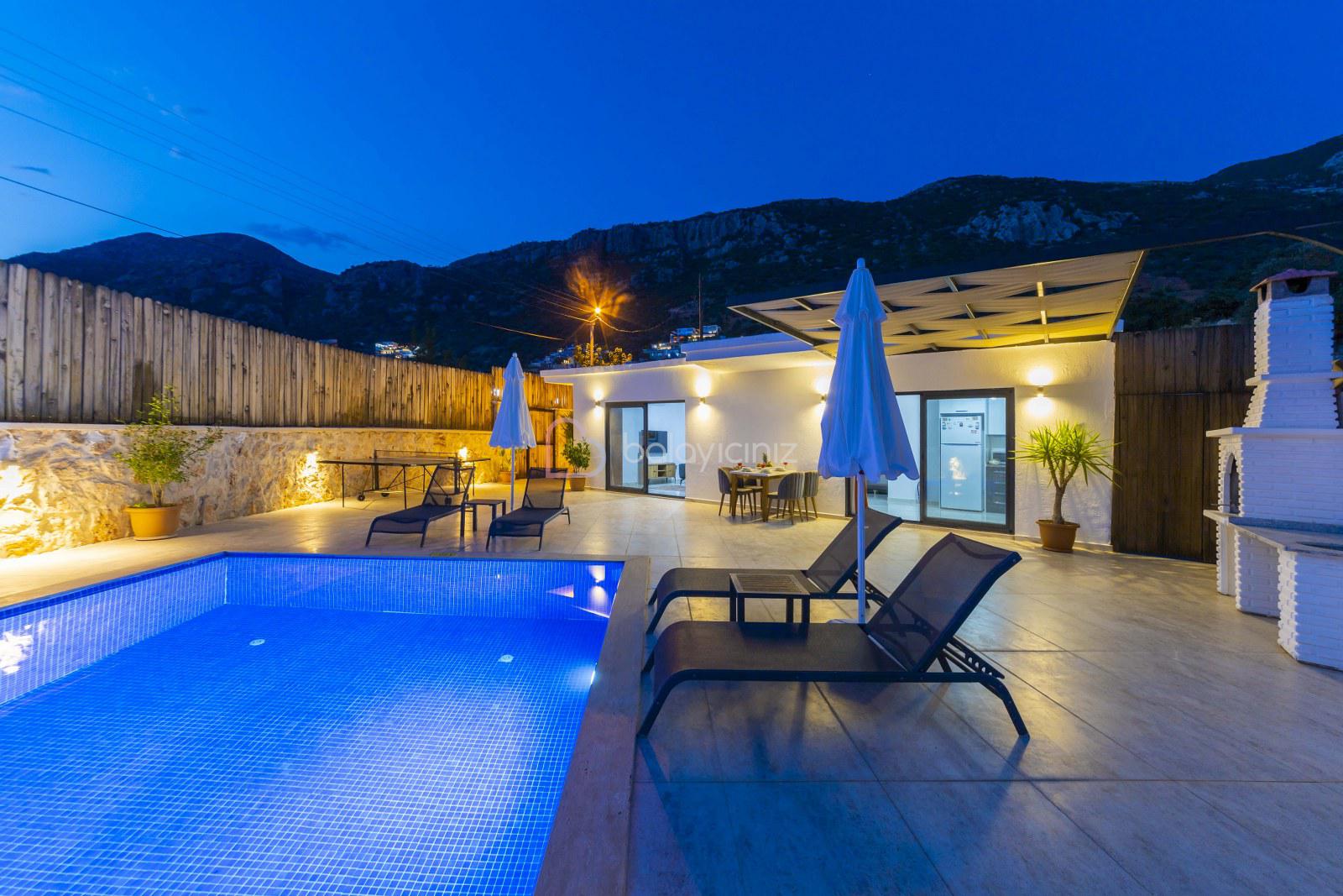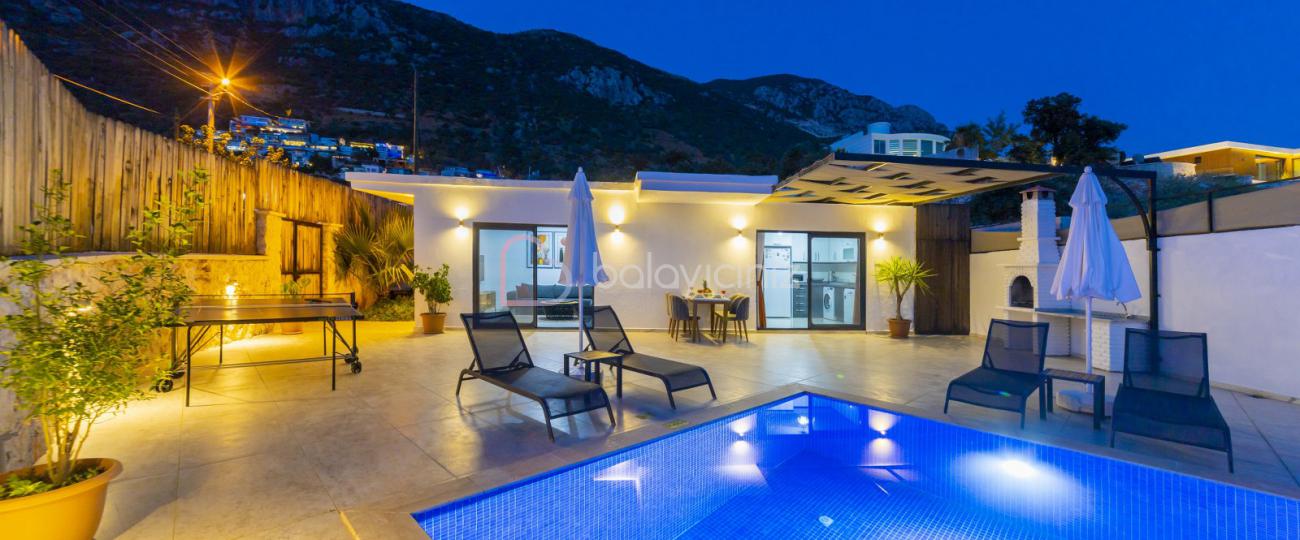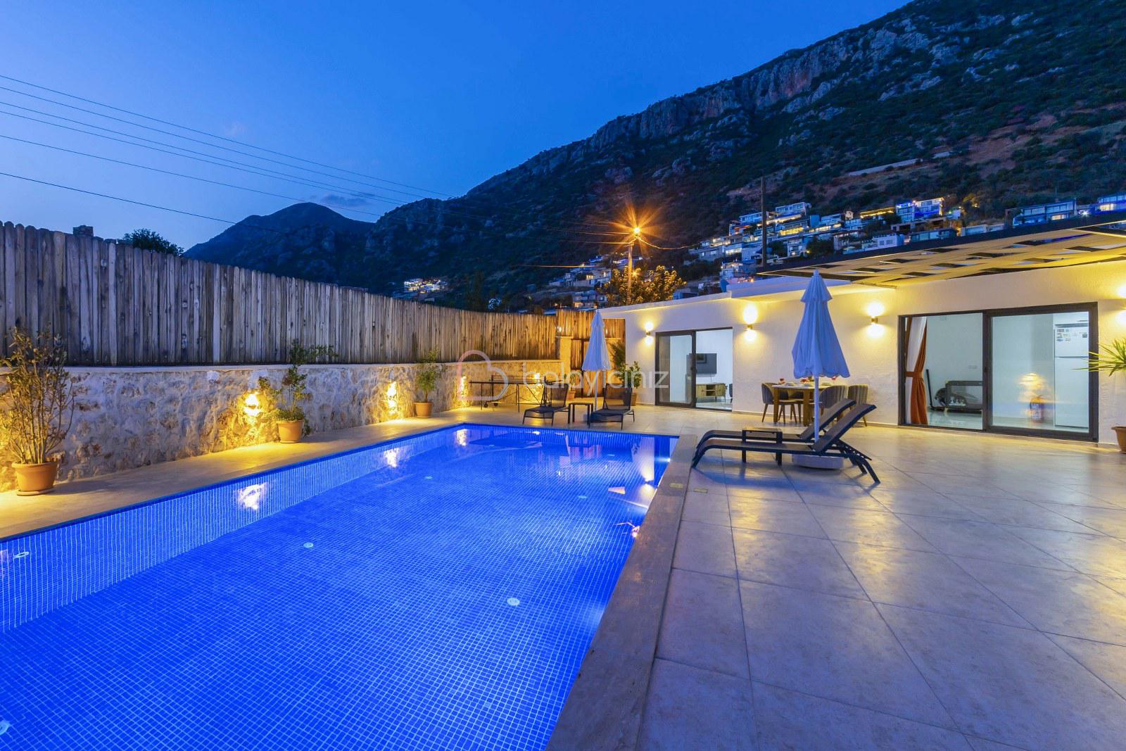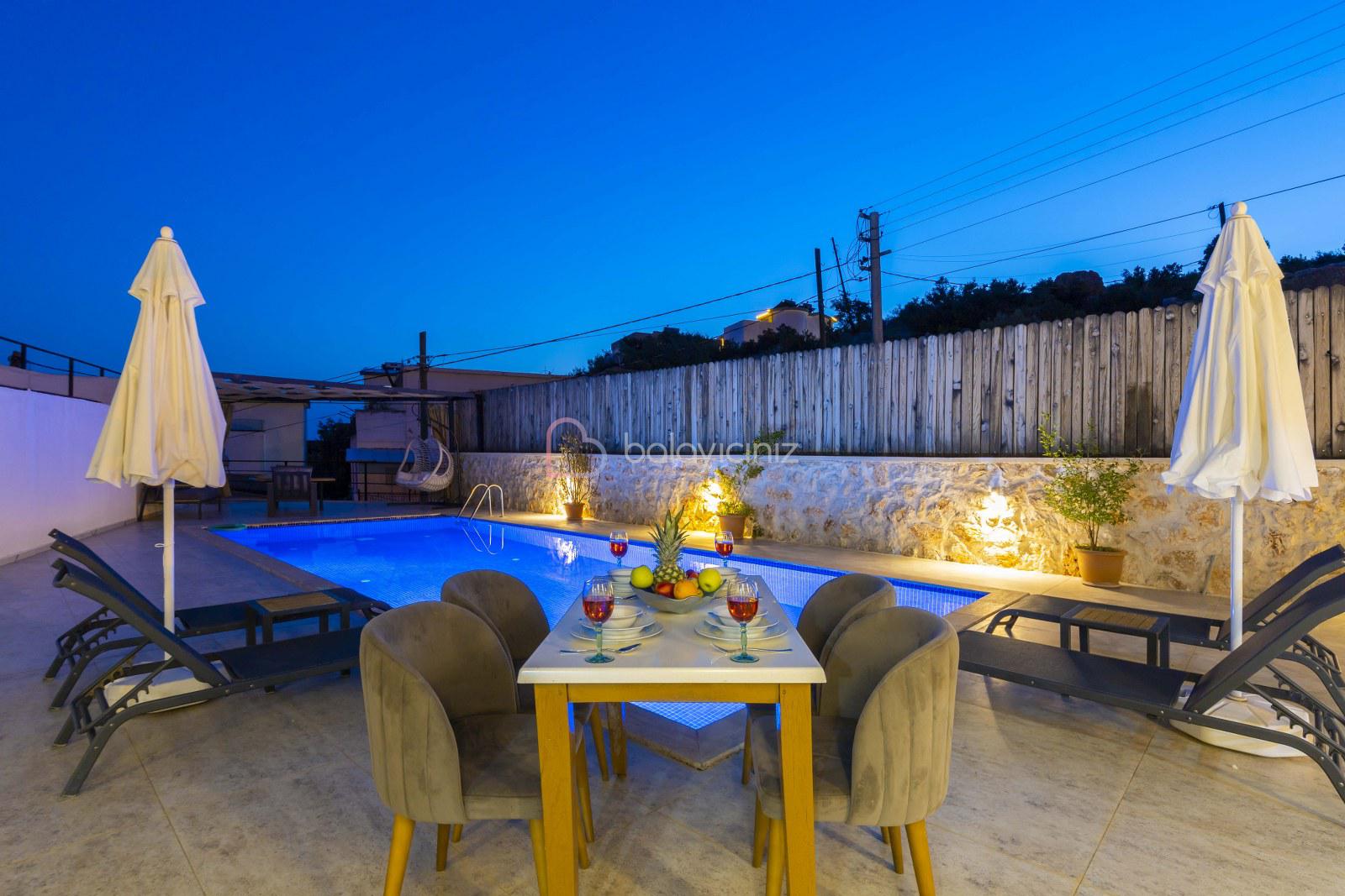 Yemek HizmetiVilla Cengizhan Duo, Kalkan Kördere Mevkiinde 2 yatak odalı 4 kişilik özel yüzme havuzlu, jakuzili muhafazakar kiralık tatil villamızdır. Villamız Kalkan merkeze 5 km uzaklıkta olup merkeze yakuın bir lokasyondadır. Korunaklı havuz terası ile muhafazakar aileler, balayı çiftleri için uygun bir tercih olacaktır. Villa Cengizhan Duo'da ihtiyacınız olan her şey mevcuttur sizlere sadece sevdiklerinizle tatilin tadını çıkarmak kalıyor.
