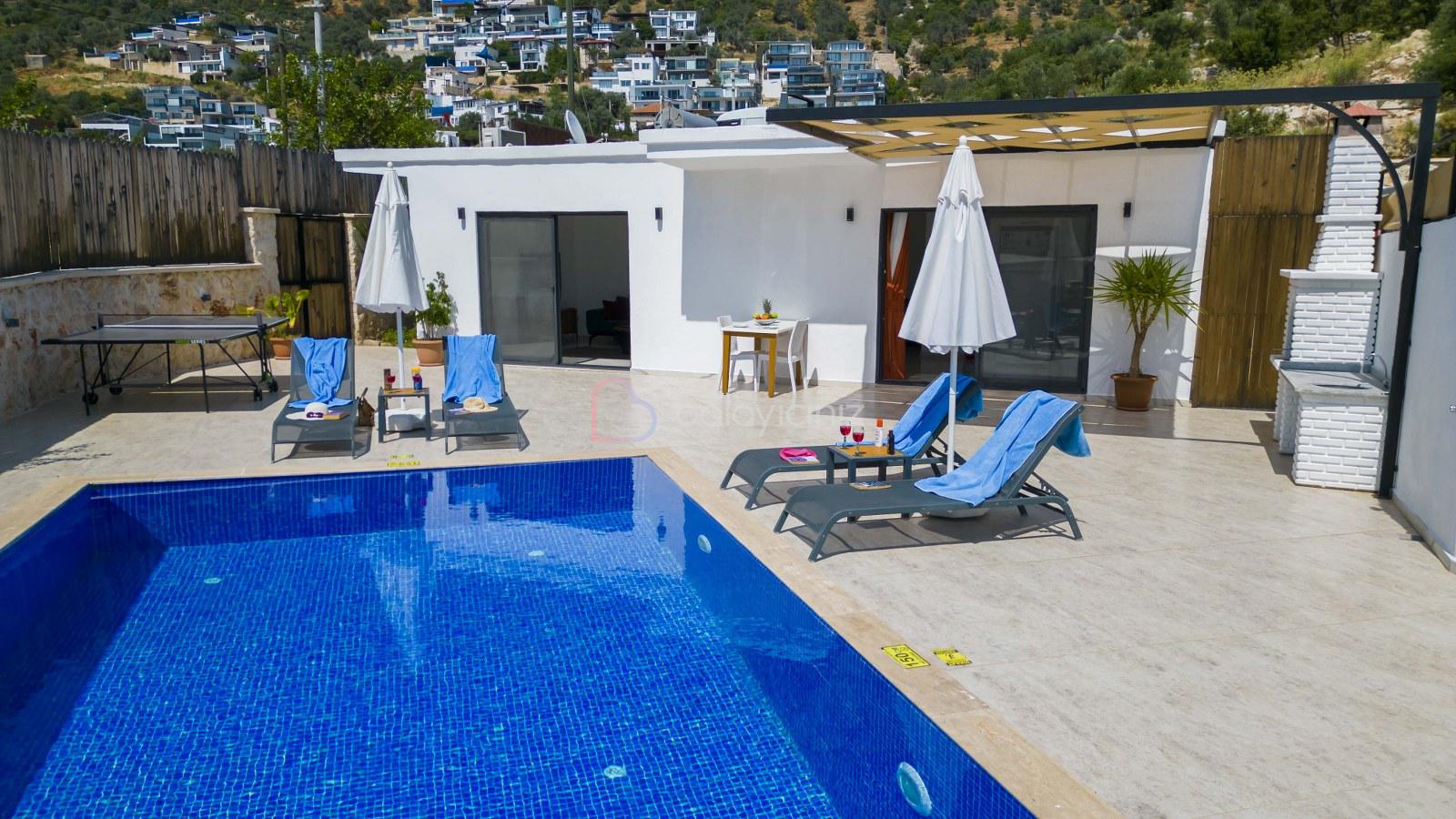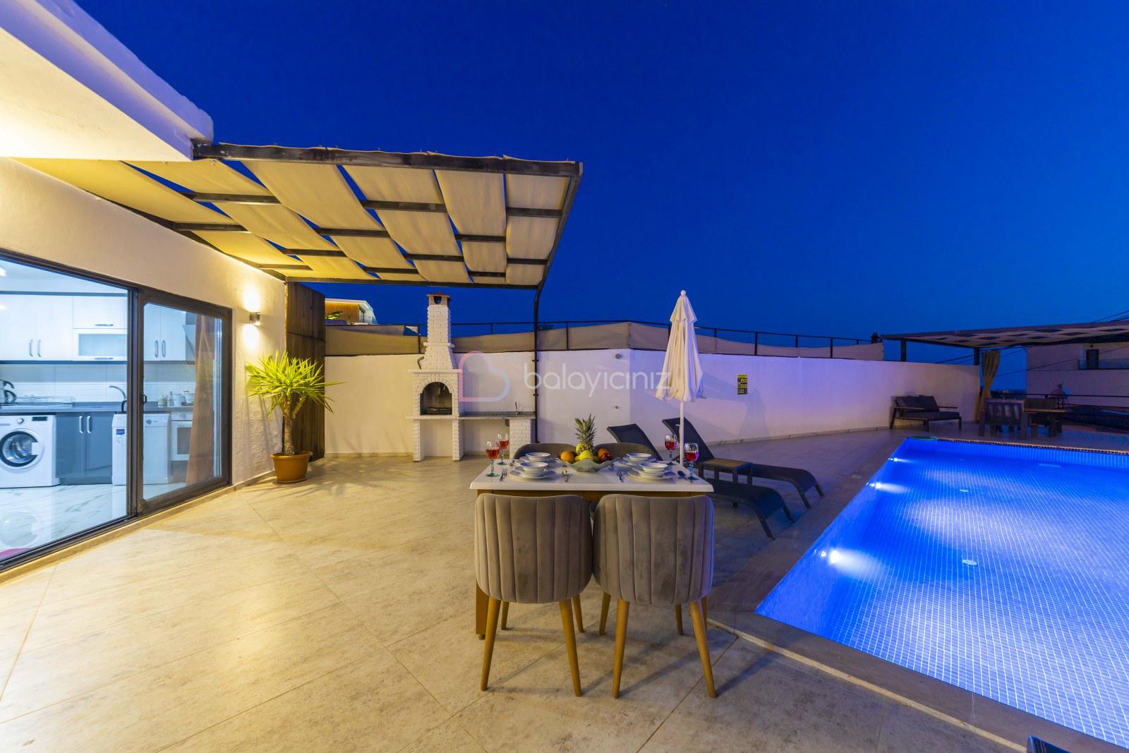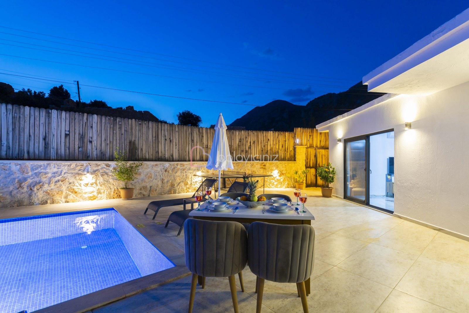 Yemek HizmetiVilla Cengizhan Duo, Kalkan Kördere Mevkiinde 2 yatak odalı 4 kişilik özel yüzme havuzlu, jakuzili muhafazakar kiralık tatil villamızdır. Villamız Kalkan merkeze 5 km uzaklıkta olup merkeze yakuın bir lokasyondadır. Korunaklı havuz terası ile muhafazakar aileler, balayı çiftleri için uygun bir tercih olacaktır. Villa Cengizhan Duo'da ihtiyacınız olan her şey mevcuttur sizlere sadece sevdiklerinizle tatilin tadını çıkarmak kalıyor.