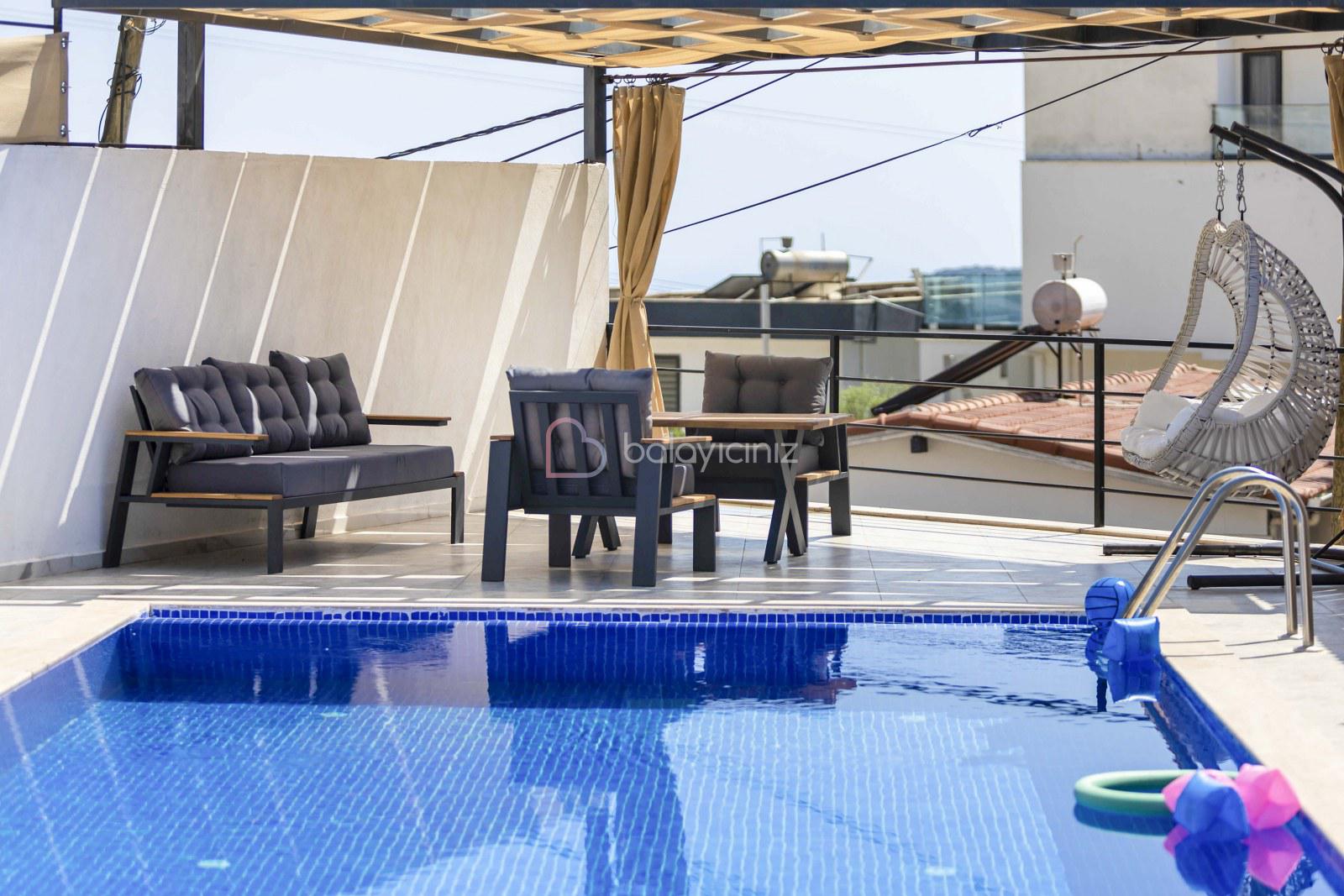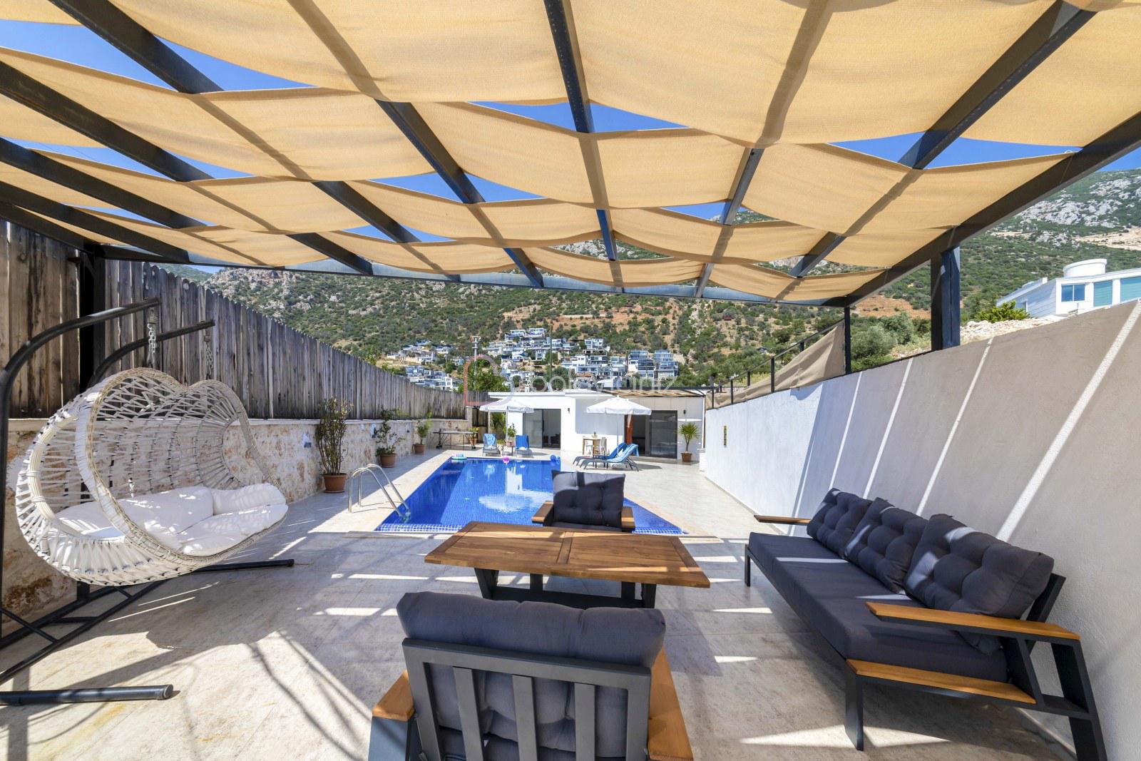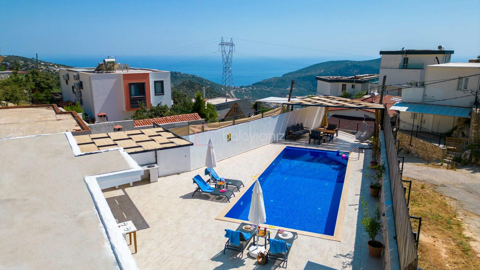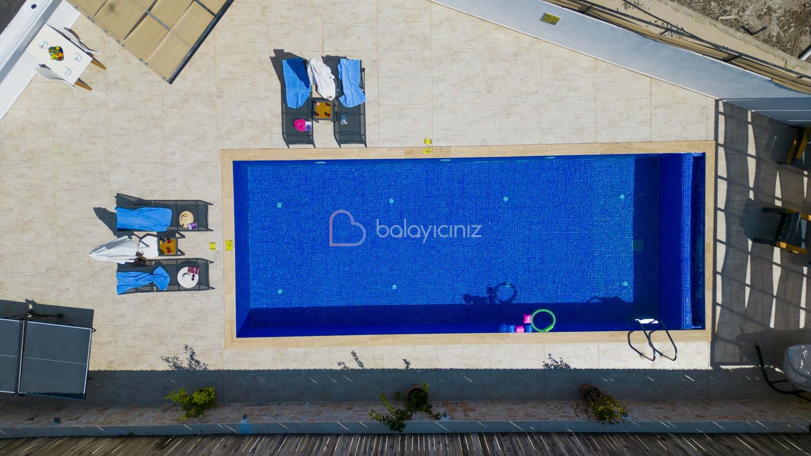 Not: Villanın güneşlenme terası ve havuzunun dış taraftan görünmemesi için gerekli önlemler alınmıştır, fakat villanın diğer bölümlerinin görünürlüğü kesin olarak garanti edilememektedir.