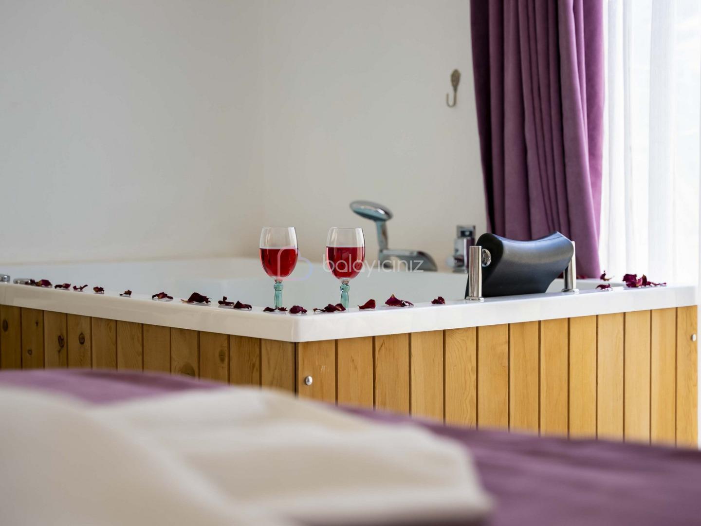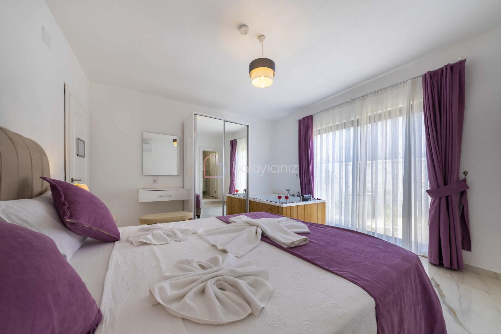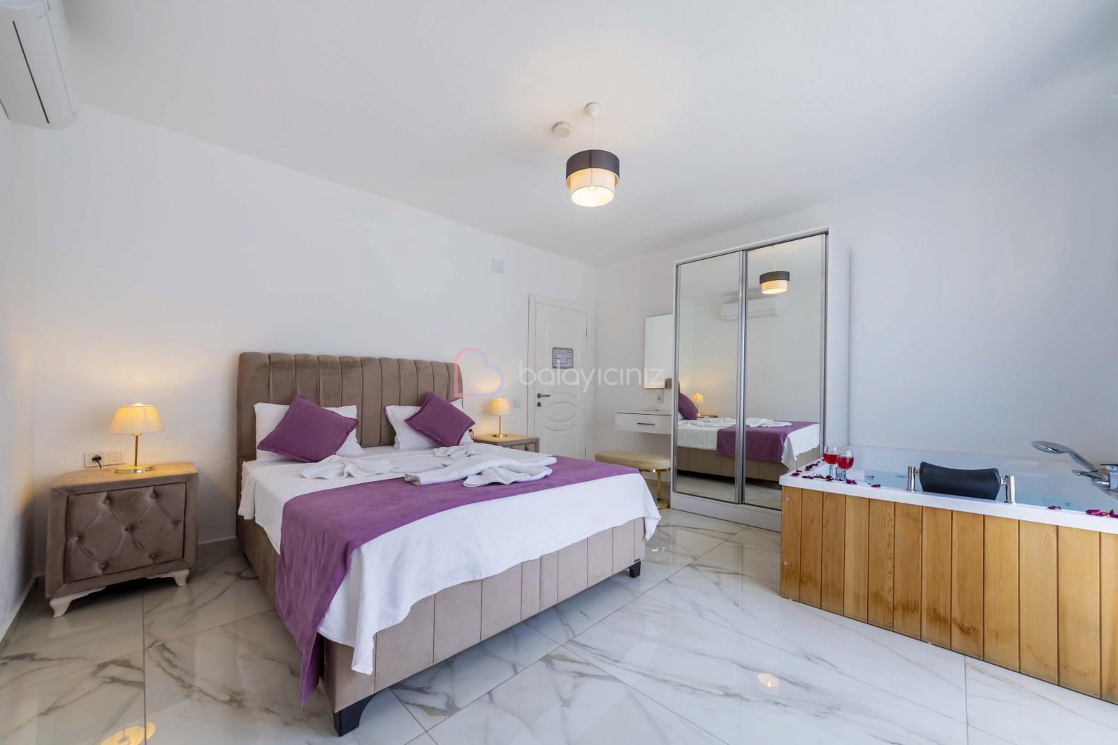 Yatak odası: 1 adet çift kişilik yatak, elbise dolabı, makyaj masası, komodin, klima, jakuzi, banyo ve tuvalet bulunmaktadır.