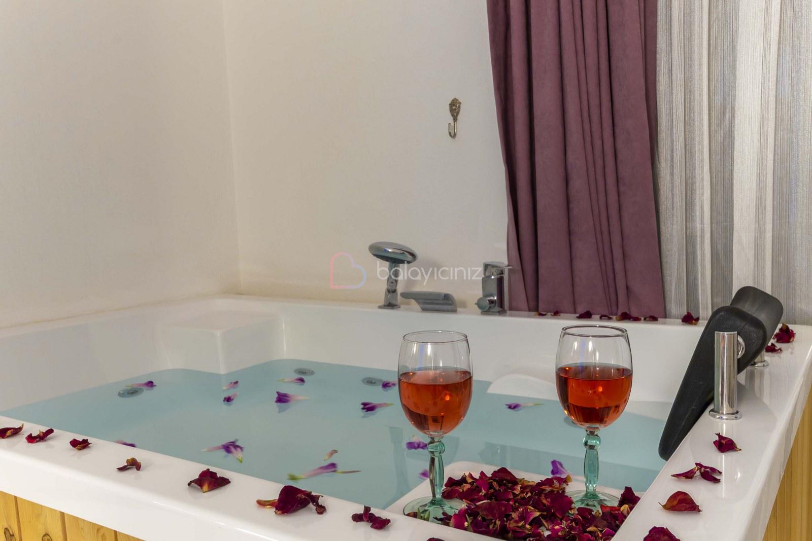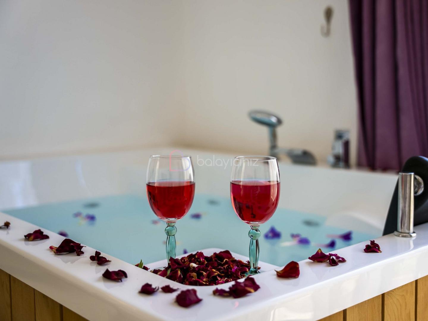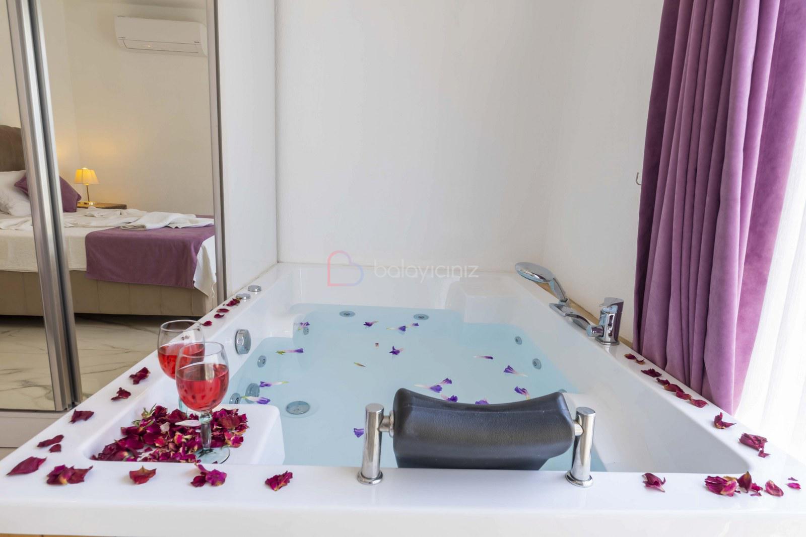 Yatak odası: 1 adet çift kişilik yatak, elbise dolabı, makyaj masası, komodin, klima, jakuzi, banyo ve tuvalet bulunmaktadır.