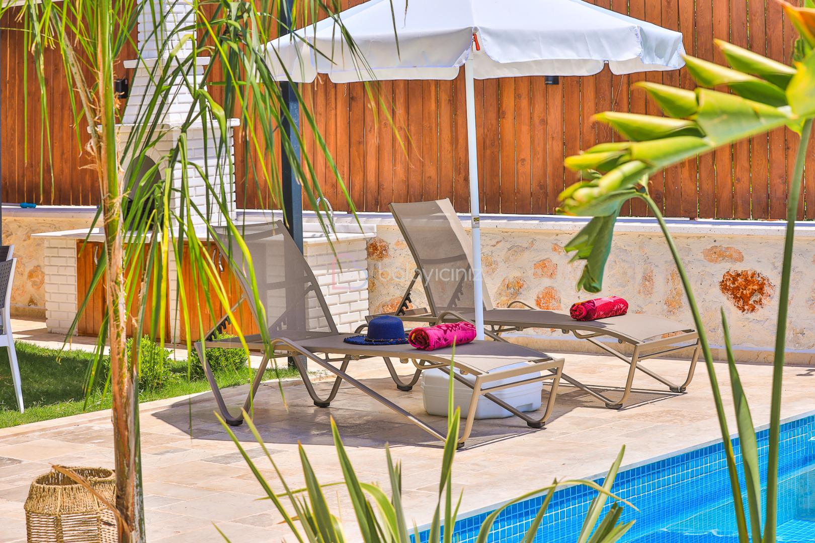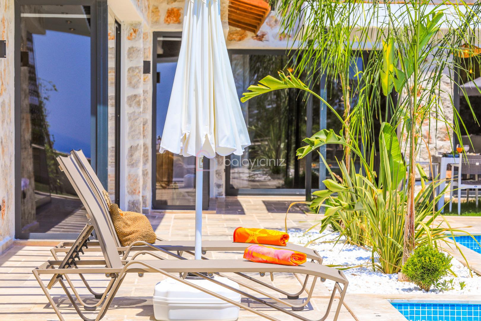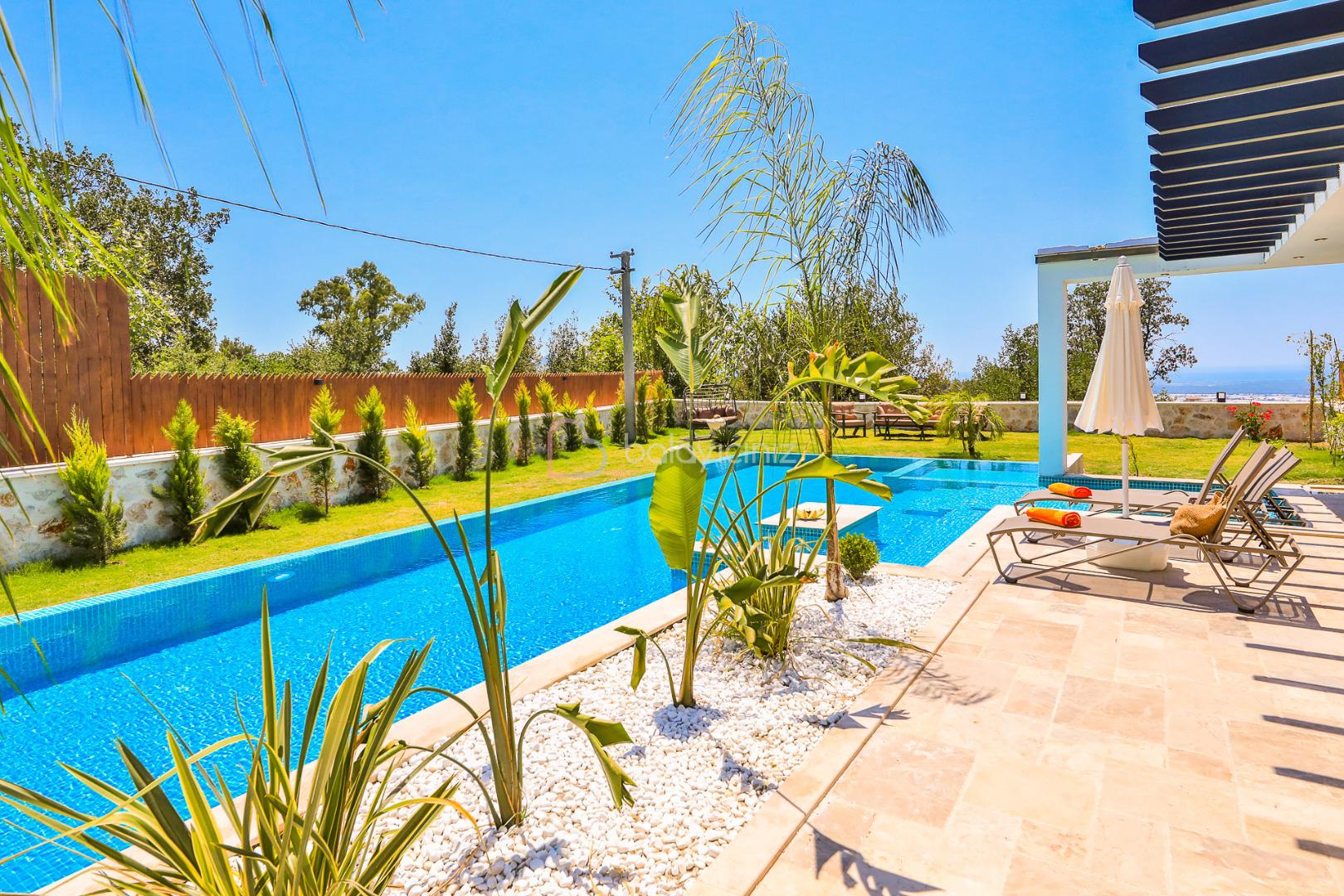 Not: Villanın güneşlenme terası ve havuzunun dış taraftan görünmemesi için gerekli önlemler alınmıştır fakat villanın diğer bölümlerinin görünürlüğü kesin olarak garanti edilememektedir.